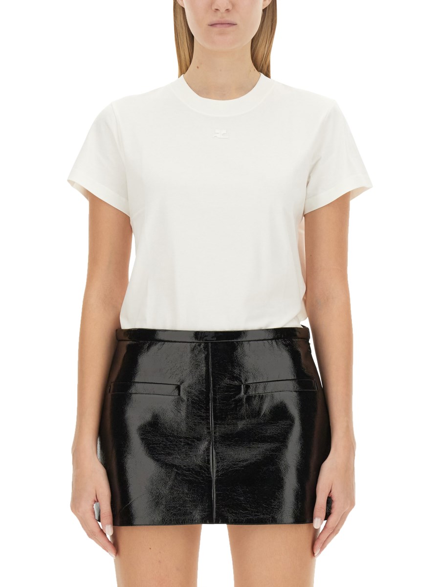 Elevate il vostro look quotidiano con la T-shirt "AC" in jersey di cotone di Courreges! Realizzata in morbido jersey di cotone, questa t-shirt offre il massimo comfort per tutto il giorno. Lo scollo a giro e le maniche corte le conferiscono un tocco classico, rendendola un'aggiunta versatile al vostro guardaroba. L'orlo dritto aggiunge una finitura pulita e raffinata al design complessivo.