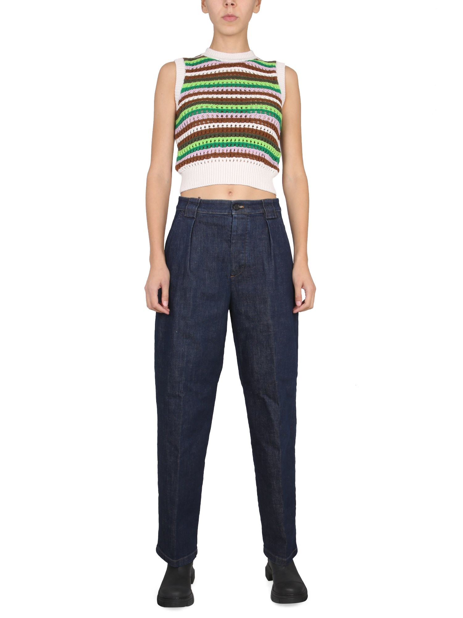 Questo paio di jeans classici in cotone denim di Department Five è il top della nostra gamma. Con un denim elasticizzato resistente e confortevole, questi jeans diventeranno il vostro capo d'abbigliamento preferito. La chiusura a bottoni e il design a cinque tasche conferiscono a questi jeans un'aria tagliente, mentre la vita alta, con una vestibilità slim, valorizzerà la vostra figura.
