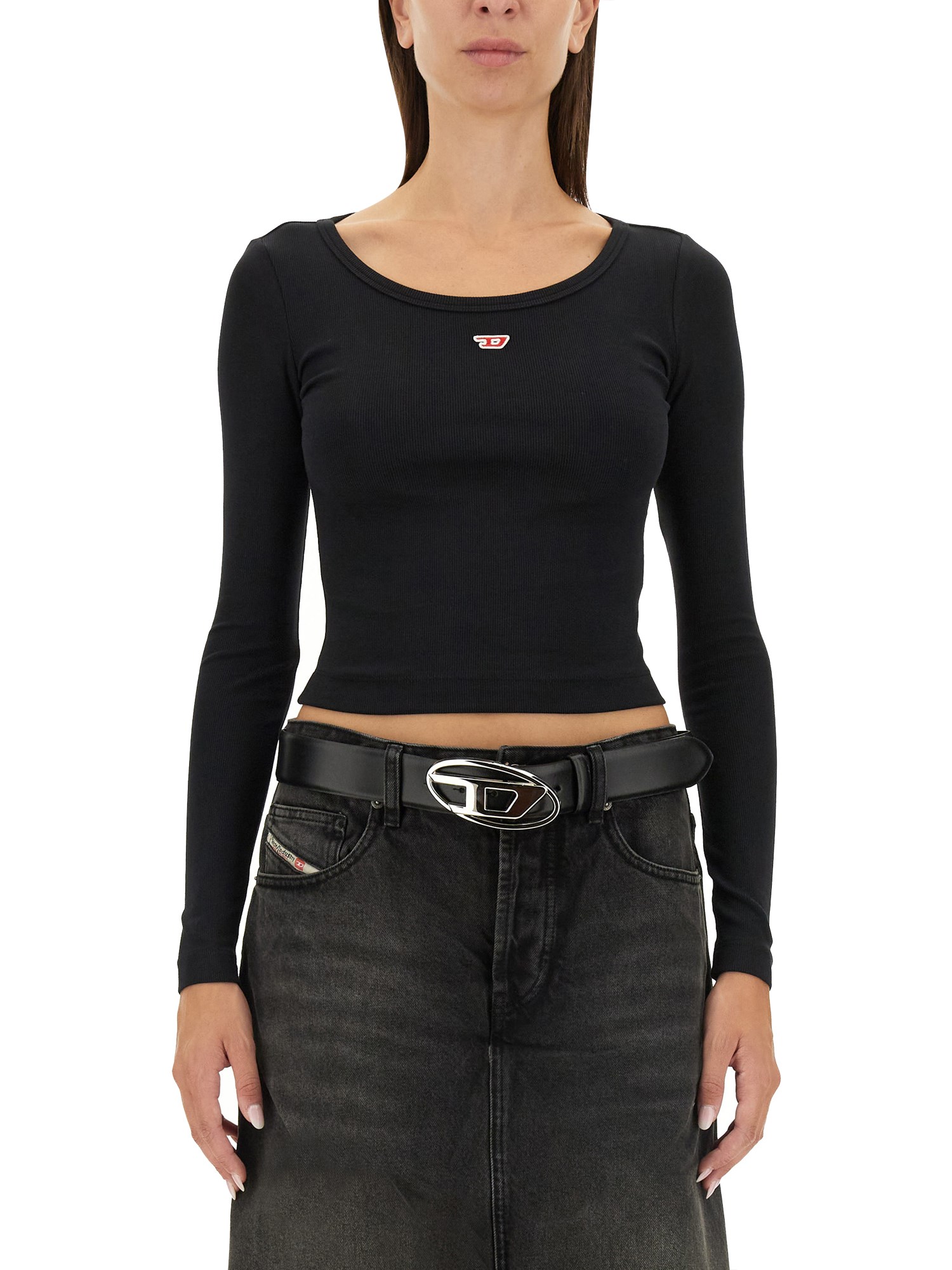 - SCOLLO ROTONDO - LOGO FRONTALE- SLIM FIT - 94% COTONE, 6% ELASTANE- LA MODELLA È ALTA 180 CM E INDOSSA LA TAGLIA S
