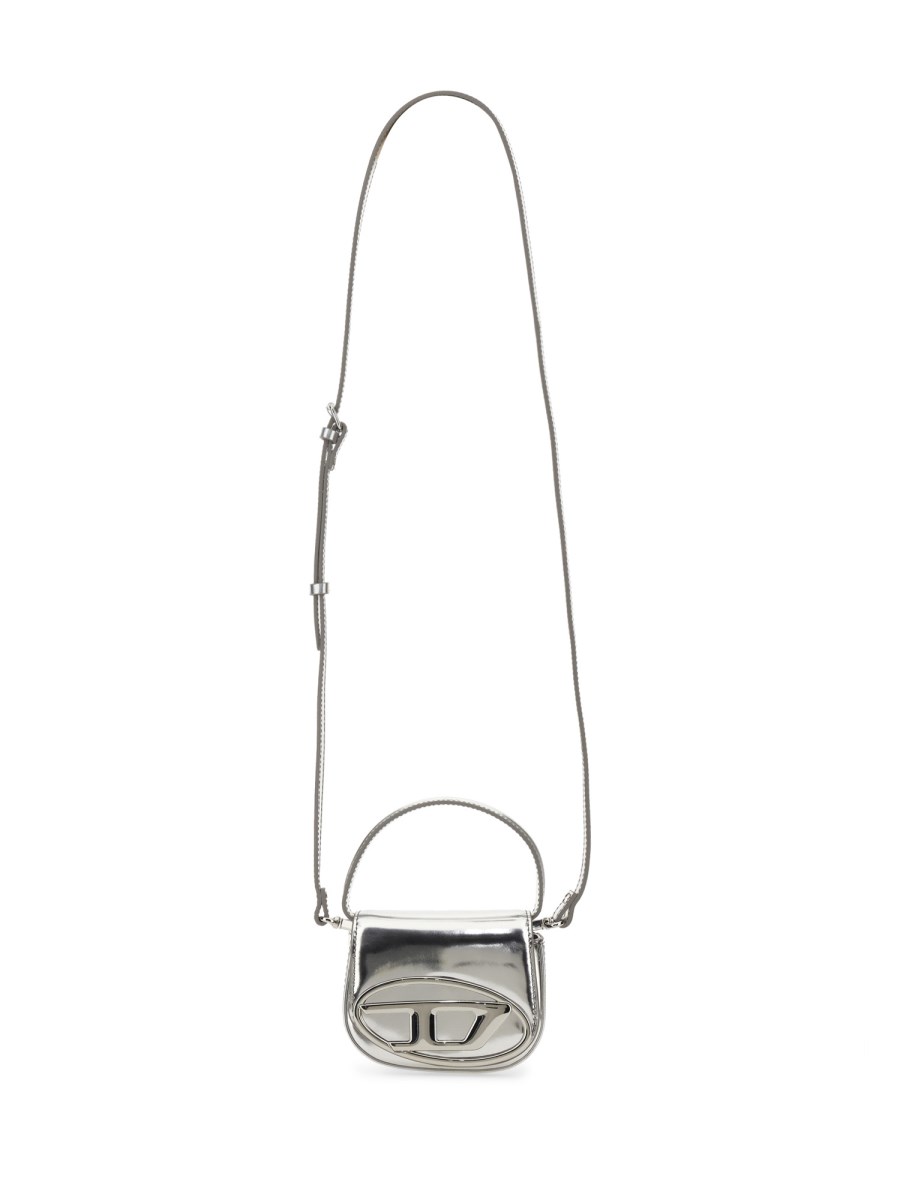 Questa mini borsa da donna è una versione ridotta della it-bag di Diesel. Progettata con una forma strutturata a mezzaluna, è realizzata in pelle lucida a specchio e presenta una patta decorata con minuteria ovale a D in tinta, l'elemento di design caratteristico della 1DR.