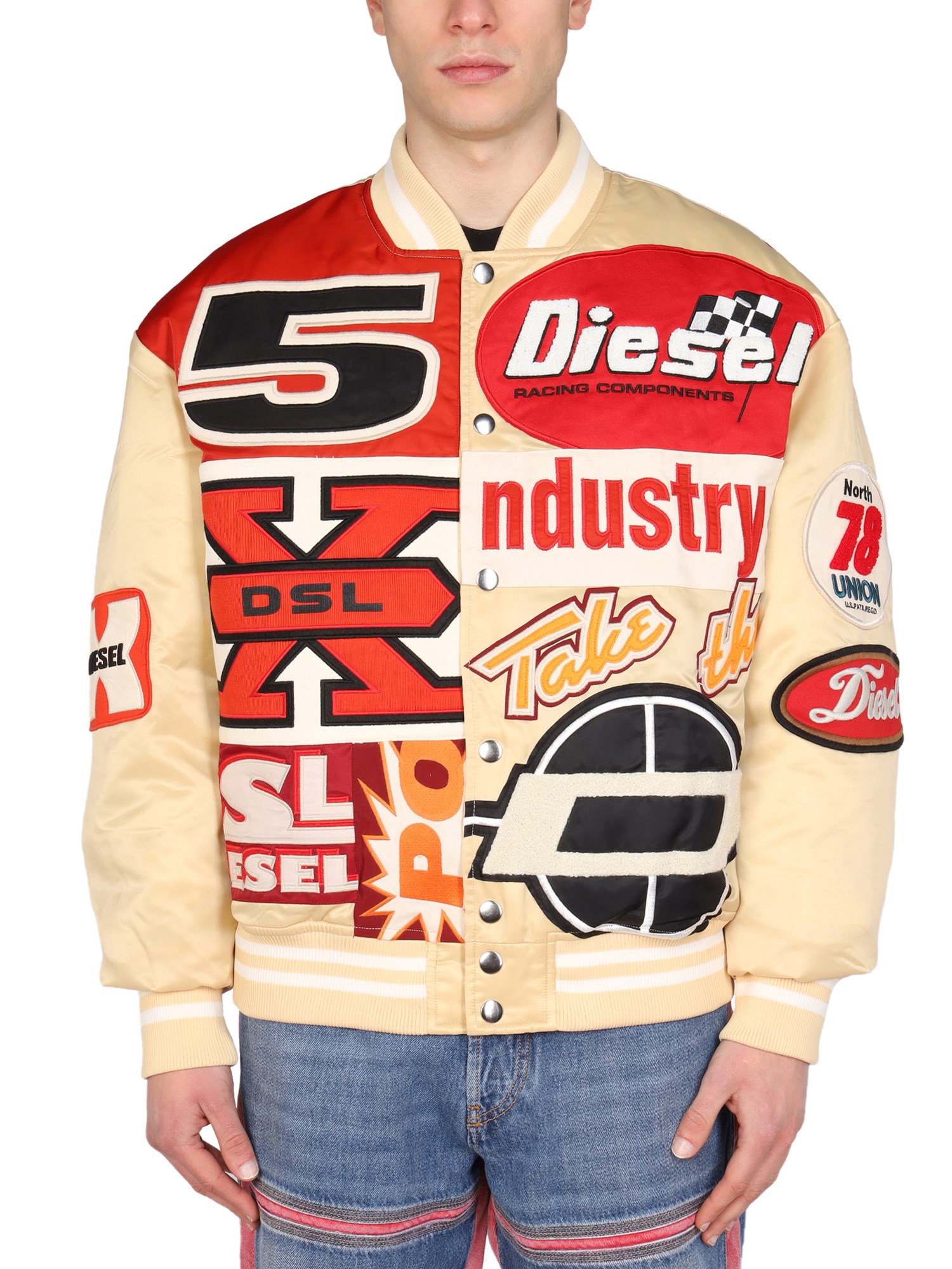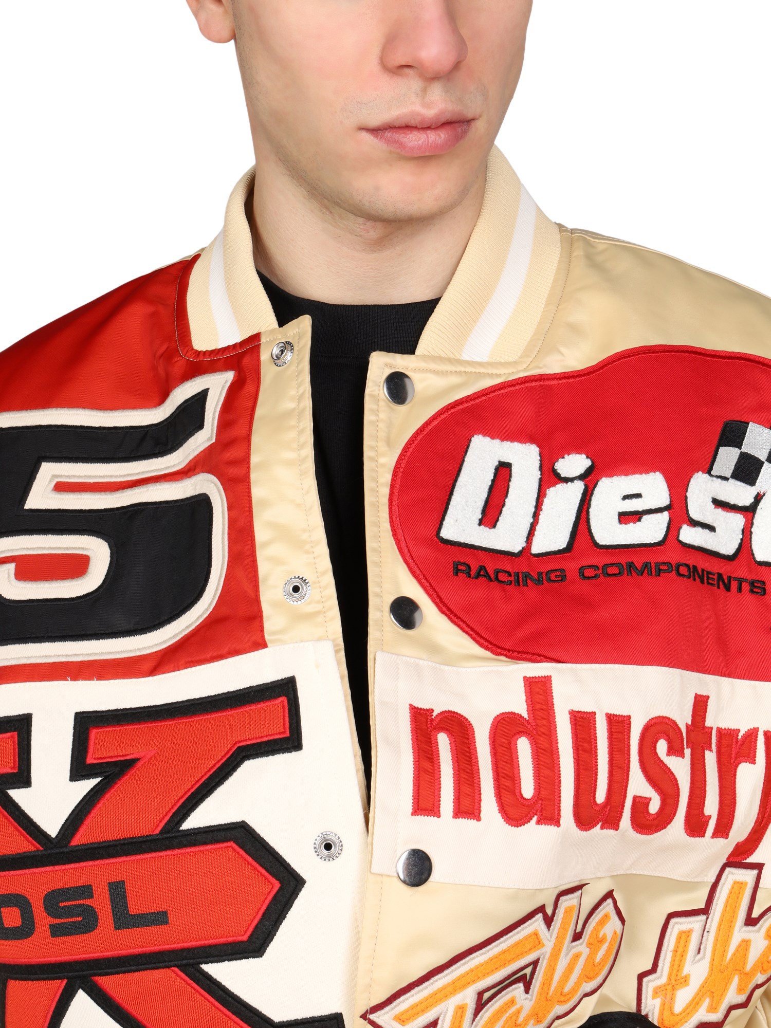 - GIROCOLLO- CHIUSURA FRONTALE CON BOTTONI- PATCH ALL OVER- 100% POLIAMMIDE- IL MODELLO È ALTO 185 CM E INDOSSA LA TAGLIA M