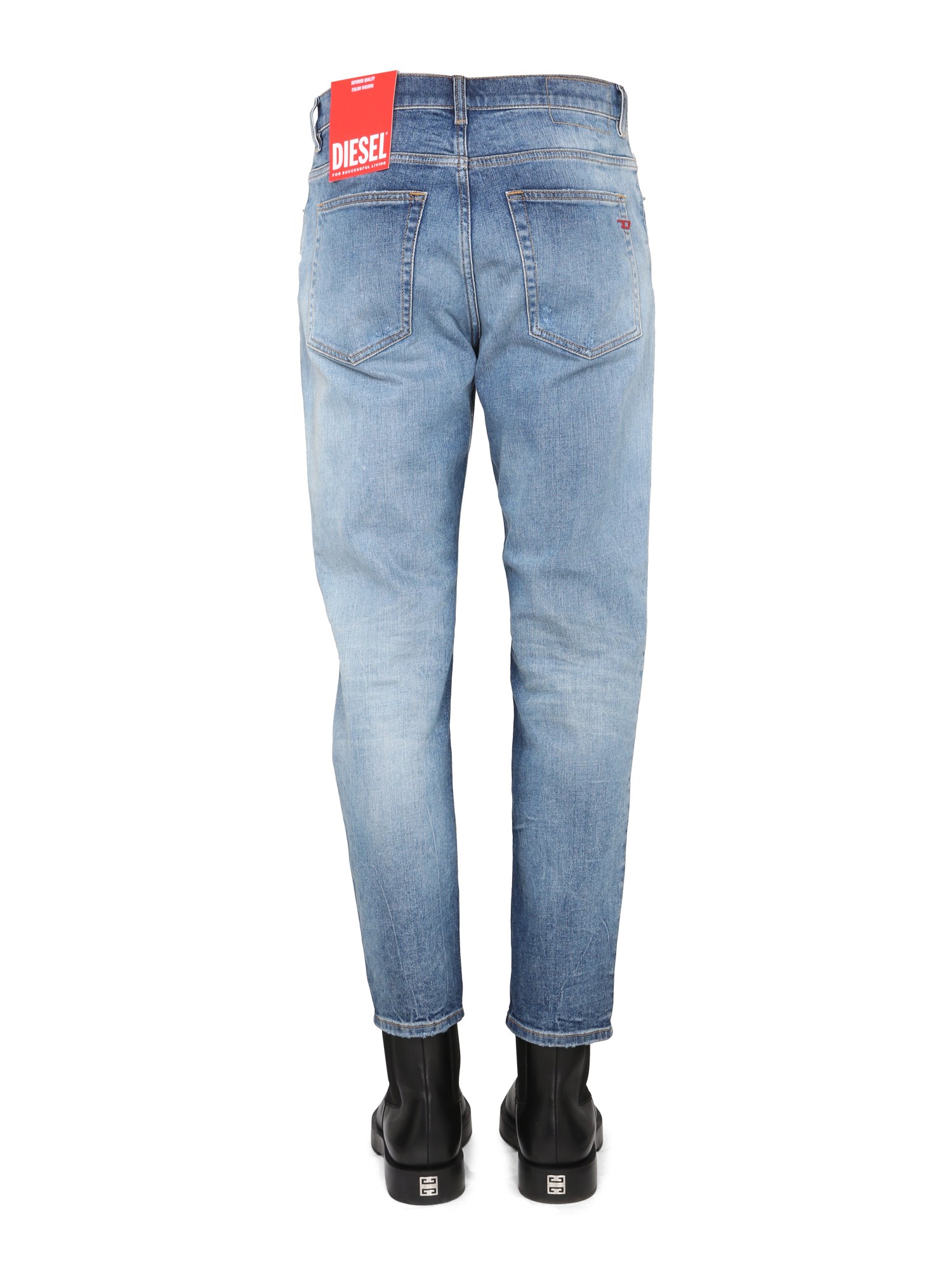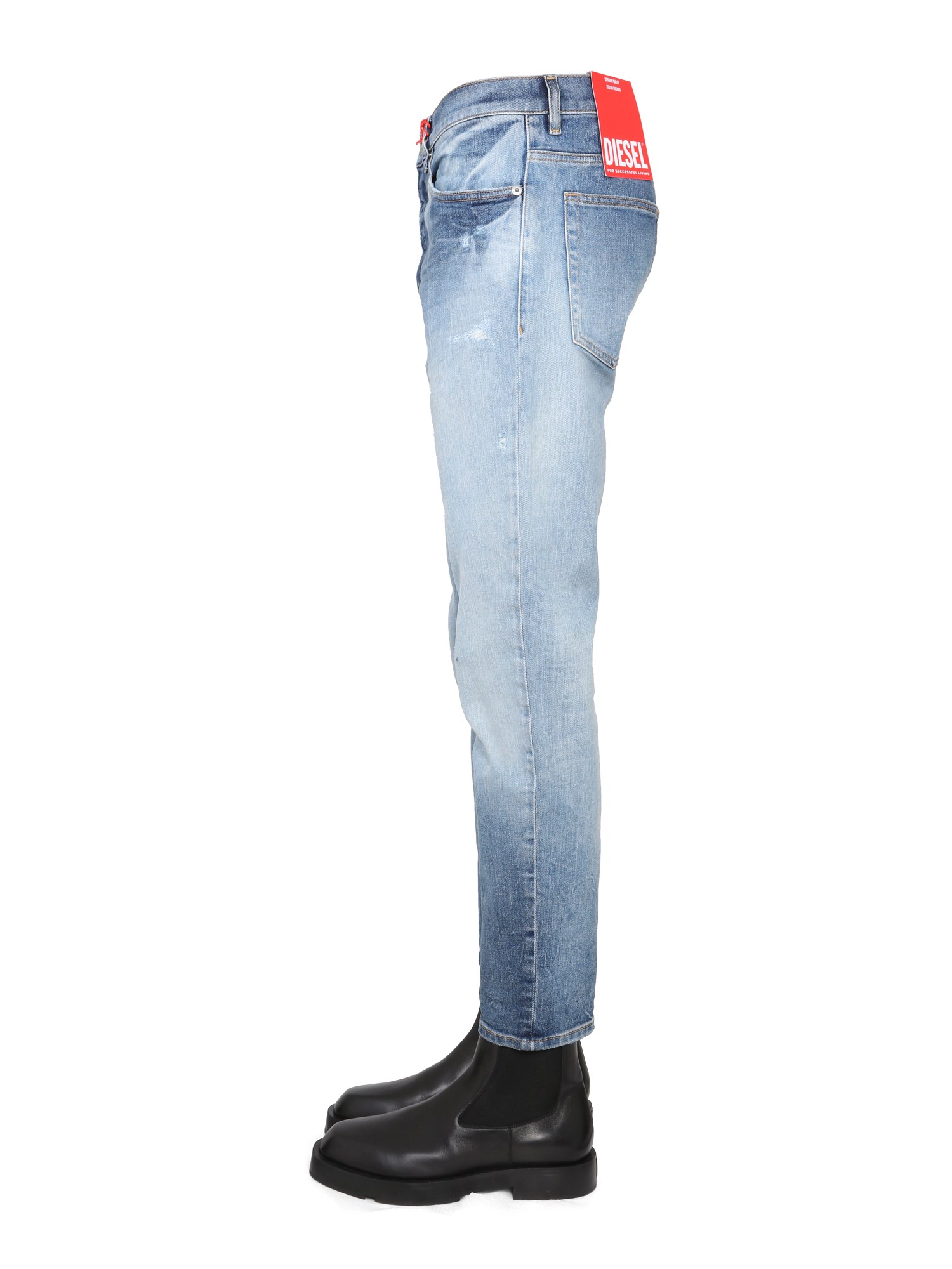 I jeans Diesel slim hanno una vestibilità aderente, non troppo stretta né troppo larga. Questi jeans sono dotati di chiusura con cerniera e bottoni per un look elegante e confortevole. La chiusura con cerniera e bottoni di questi jeans è stata progettata per avere un aspetto elegante e raffinato, mantenendo il vostro outfit semplice. Grazie alla vestibilità slim e al tessuto elasticizzato, questi jeans sono perfetti per ogni occasione.