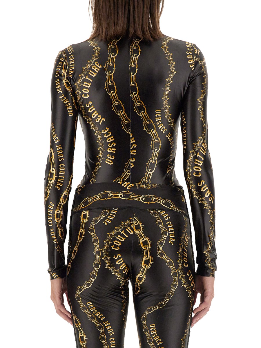Il body a rete "Chain Couture" di Versace Jeans Couture è un esempio di eleganza contemporanea e di audaci dichiarazioni di moda. Realizzato in rete di alta qualità, questo body presenta intricati dettagli a catena che ne esaltano il fascino lussuoso. Il suo design aderente accentua la silhouette, rendendolo un capo versatile adatto sia alle occasioni casual che a quelle più raffinate. Ideale da indossare a strati o da solo, questo body è un'aggiunta indispensabile a qualsiasi guardaroba alla moda.