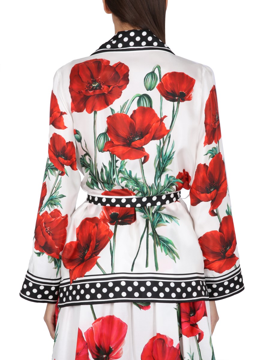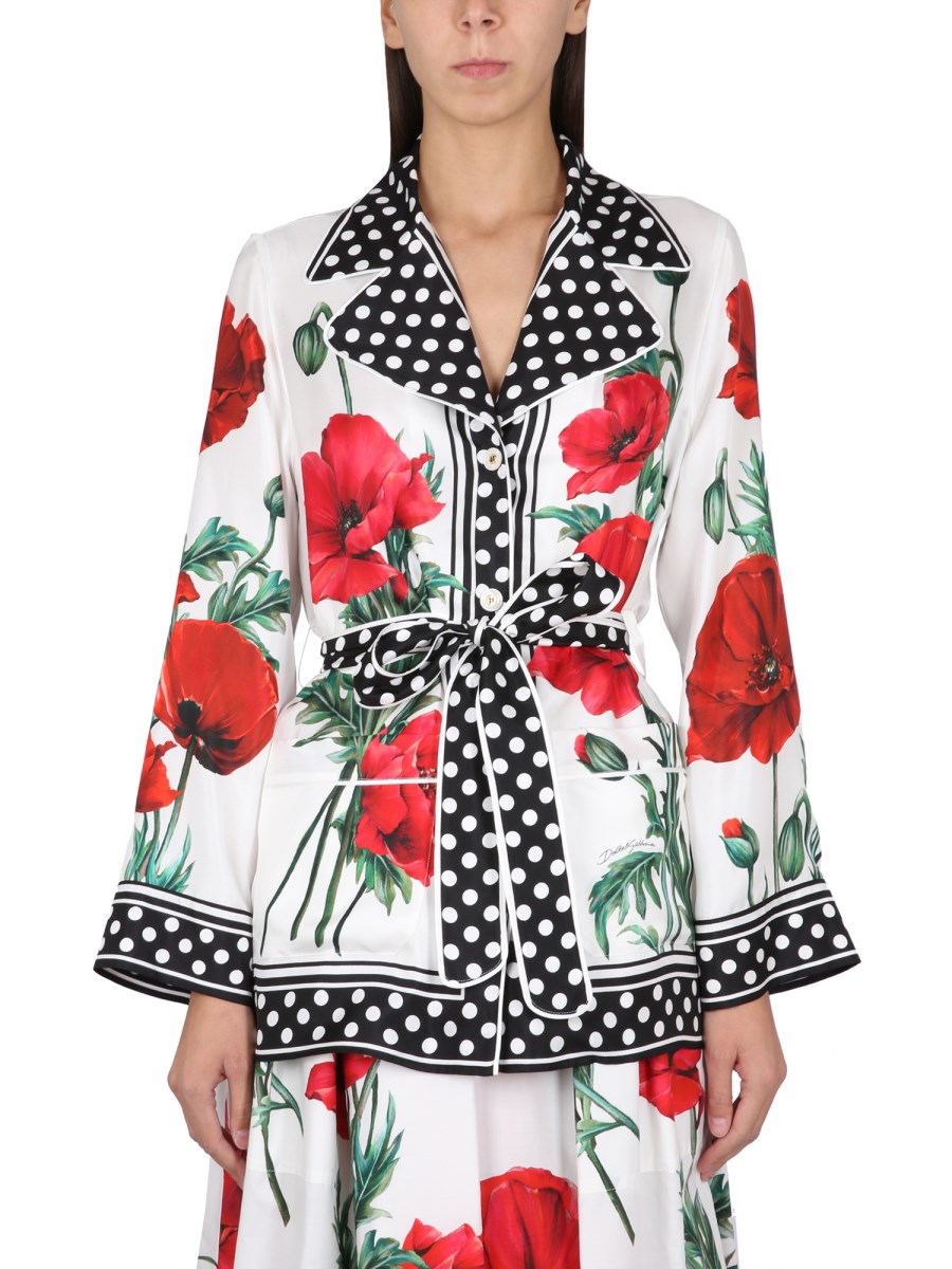 Carina e femminile, questa camicia in seta di Dolce & Gabbana è un'ottima opzione per il lavoro o per una giornata fuori. La chiusura frontale è dotata di lacci regolabili, che ne facilitano la vestibilità. Grazie alla stampa all-over a pois e papaveri, è un'ottima scelta per una giornata in ufficio.