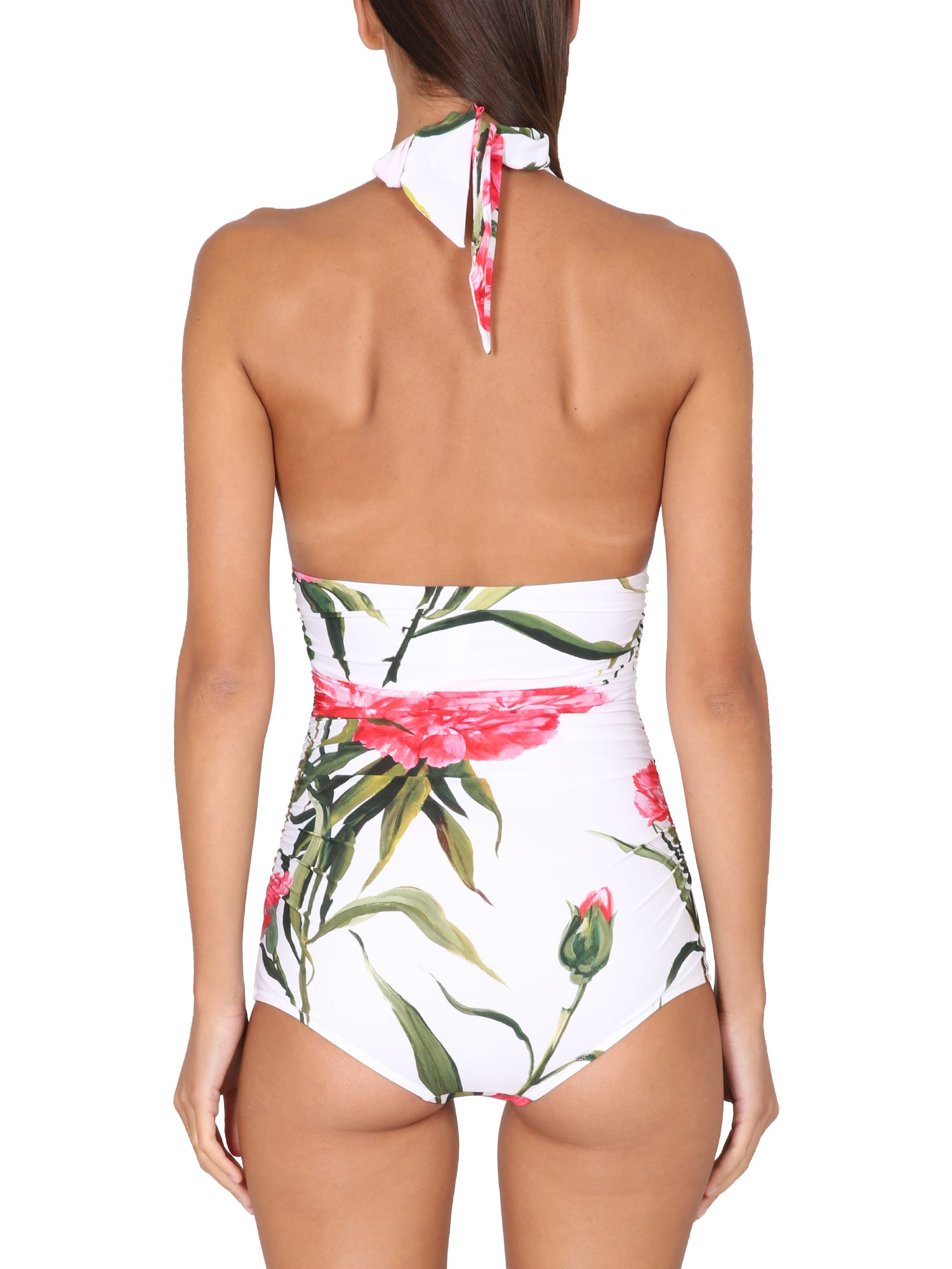 Questo costume di Dolce & Gabbana è perfetto per le feste in piscina e le fughe estive. Il suo misto poliammide è un materiale durevole e resistente al cloro. Lo stile di allacciatura posteriore con scollo a V è elegante e raffinato. Una scelta alla moda e conveniente, questo costume da bagno intero è perfetto per la spiaggia o la piscina.