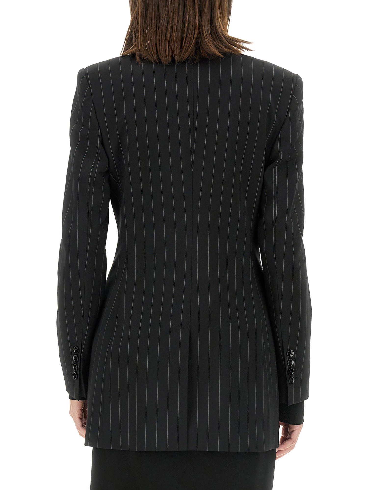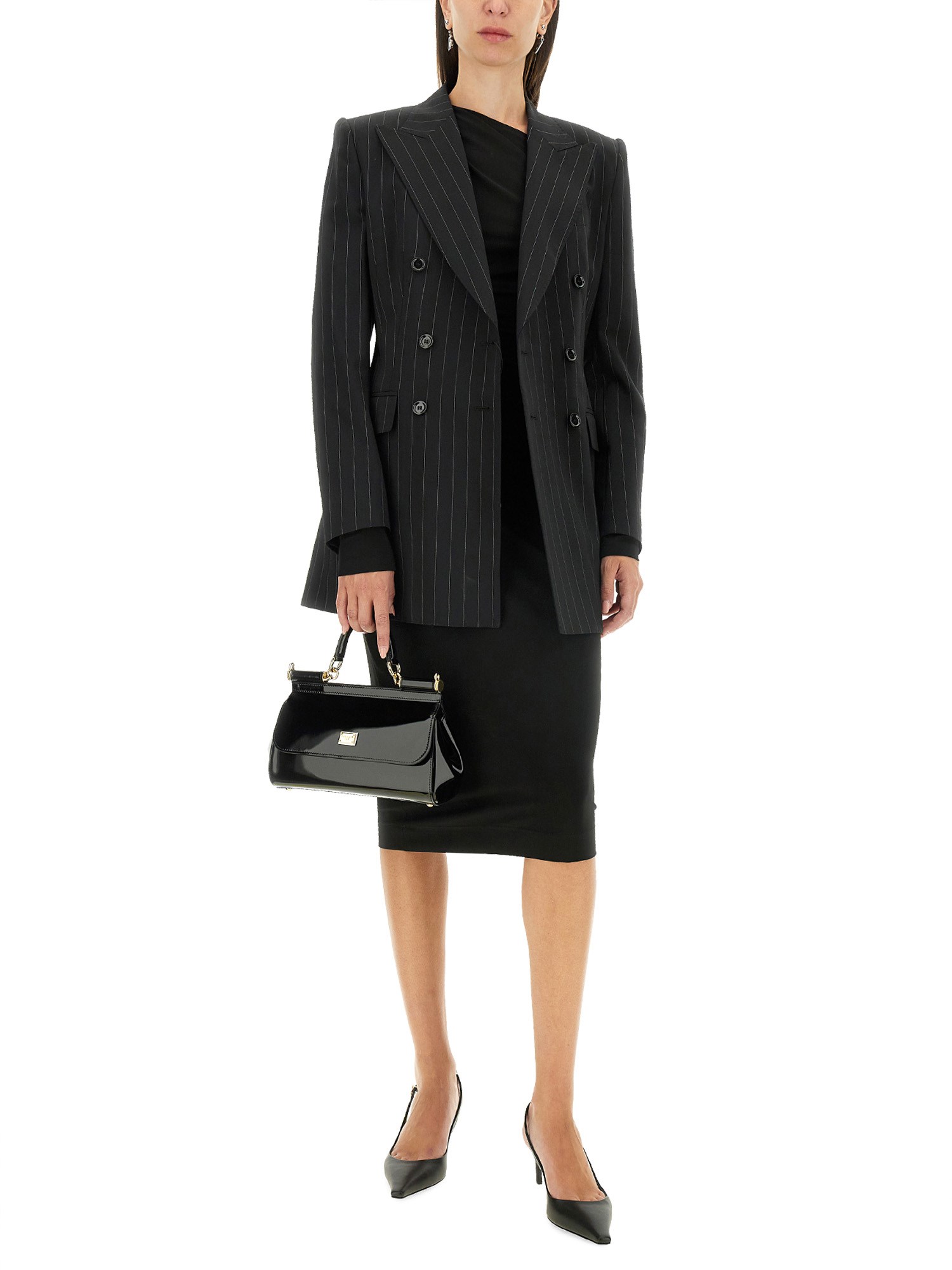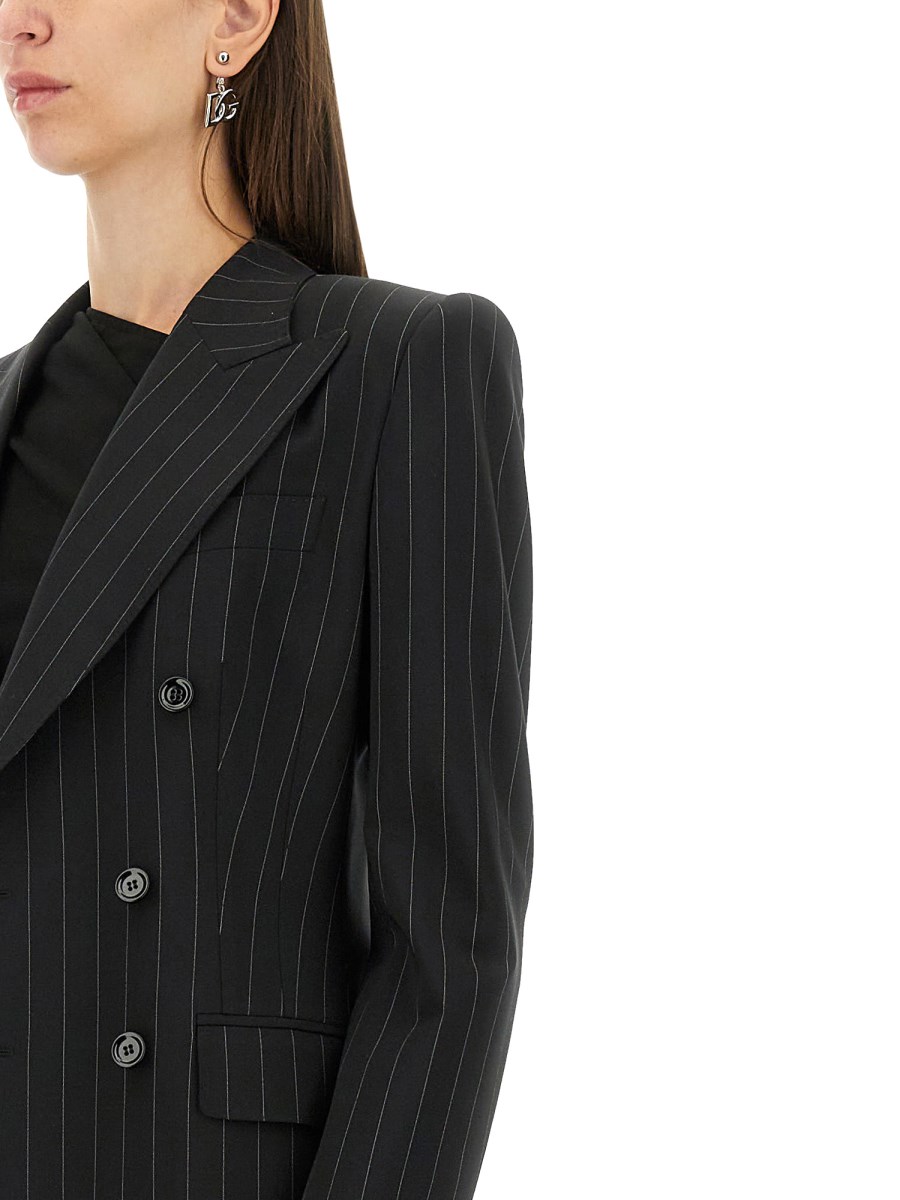 La giacca doppiopetto di Dolce & Gabbana è un esempio di lusso e raffinatezza, realizzata con materiali pregiati per garantire comfort e stile. La sua silhouette sartoriale presenta un design classico con eleganti revers e una raffinata chiusura a bottoni, che la rendono un'aggiunta versatile a qualsiasi guardaroba. Ideale sia per le occasioni formali che per le uscite casual di alto livello, questa giacca incarna l'impegno del marchio per la squisita artigianalità e la moda senza tempo.