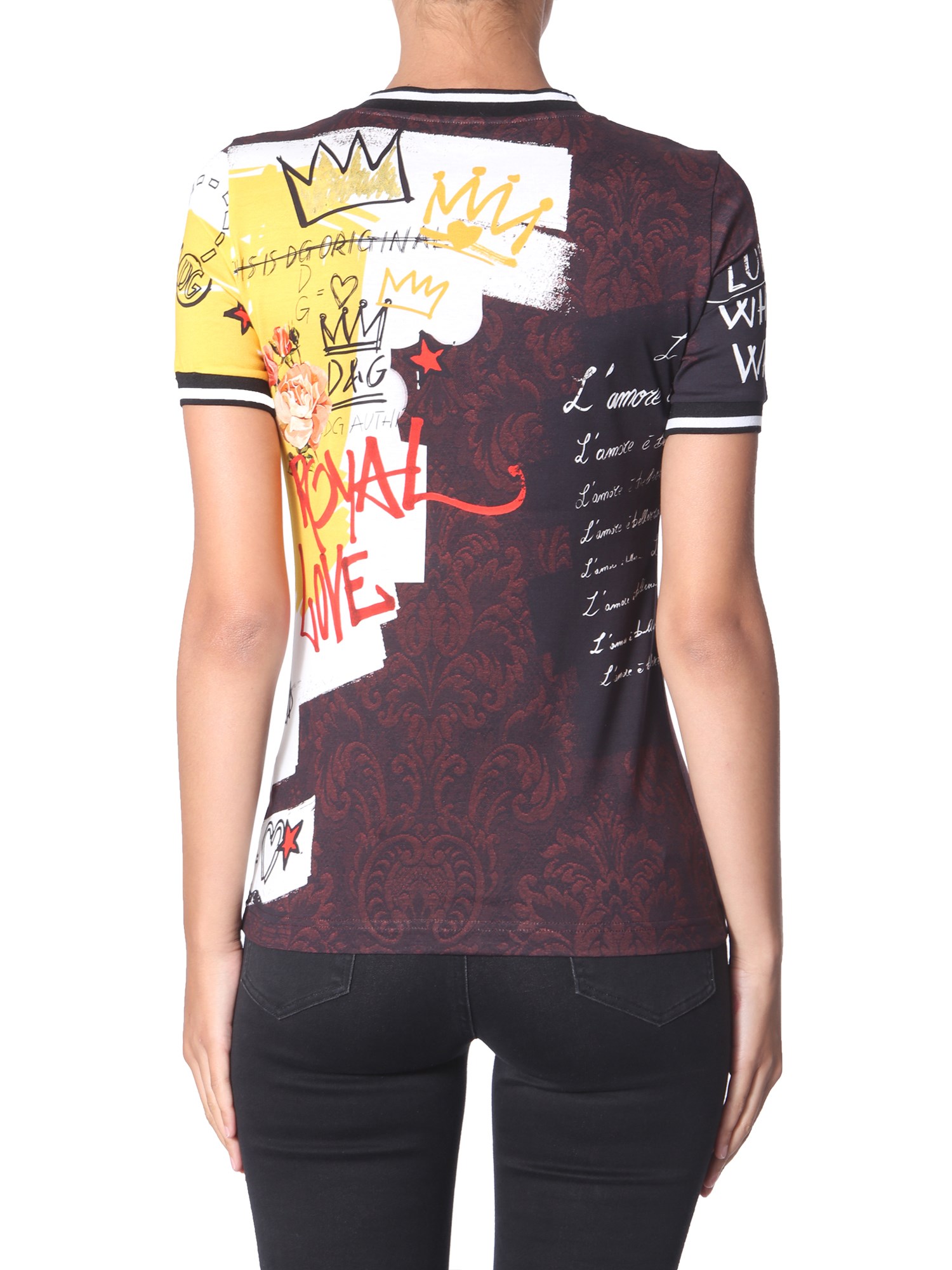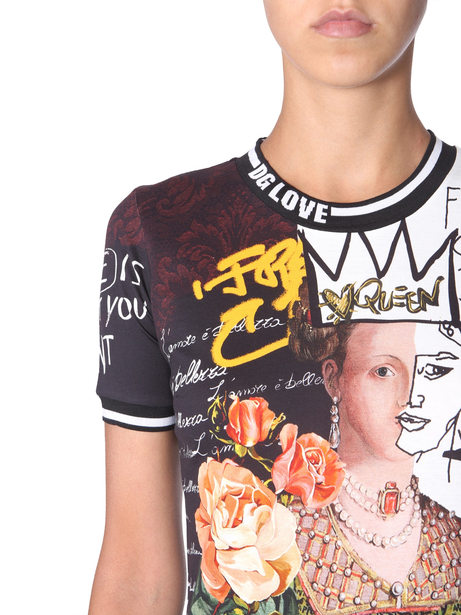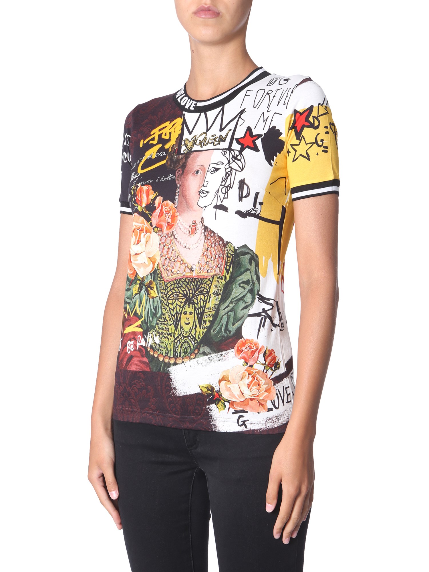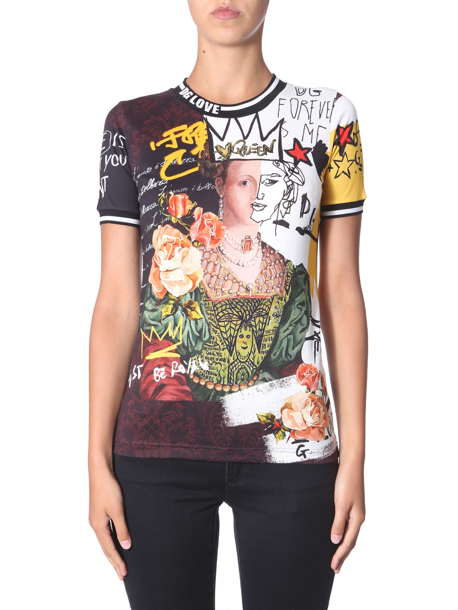 T-SHIRT GIROCOLLO IN COTONE CON STAMPA REGINE