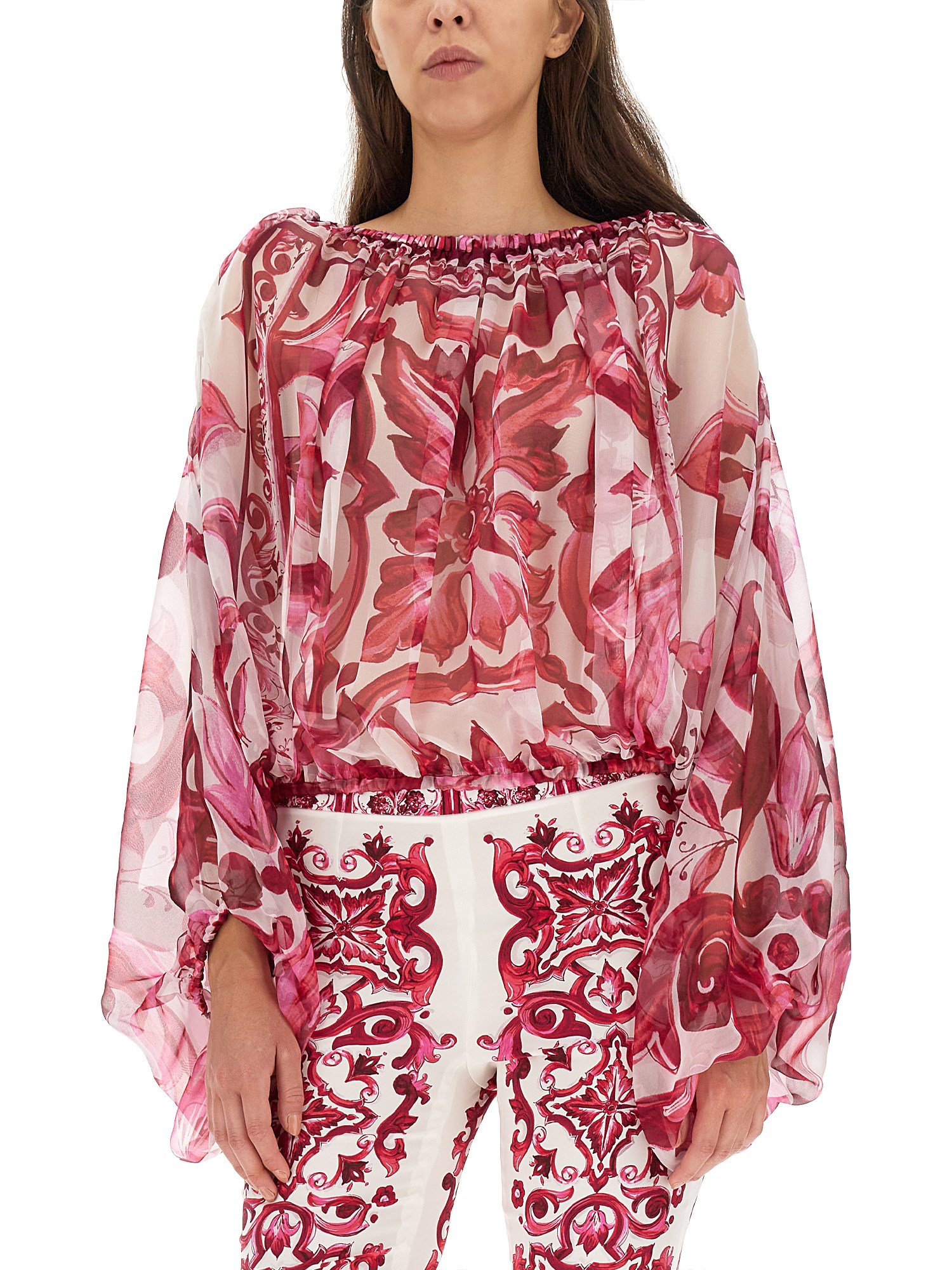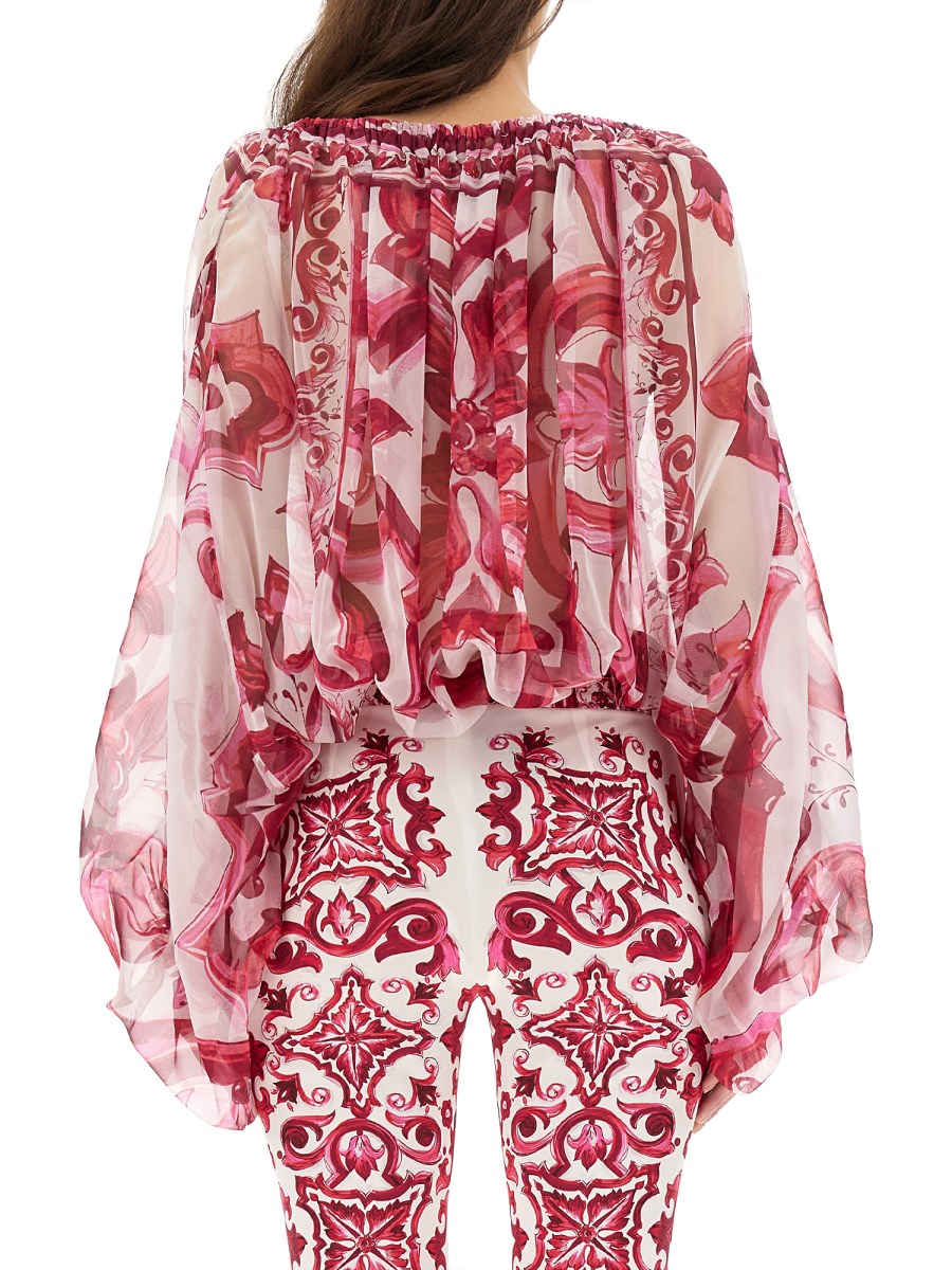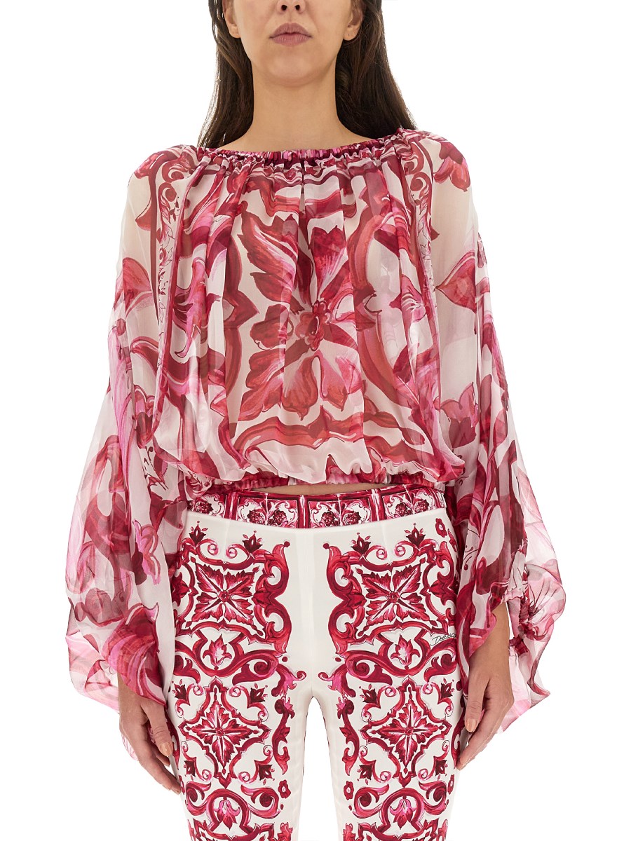 BLUSA IN CHIFFON DI SETA CON STAMPA MAIOLICA