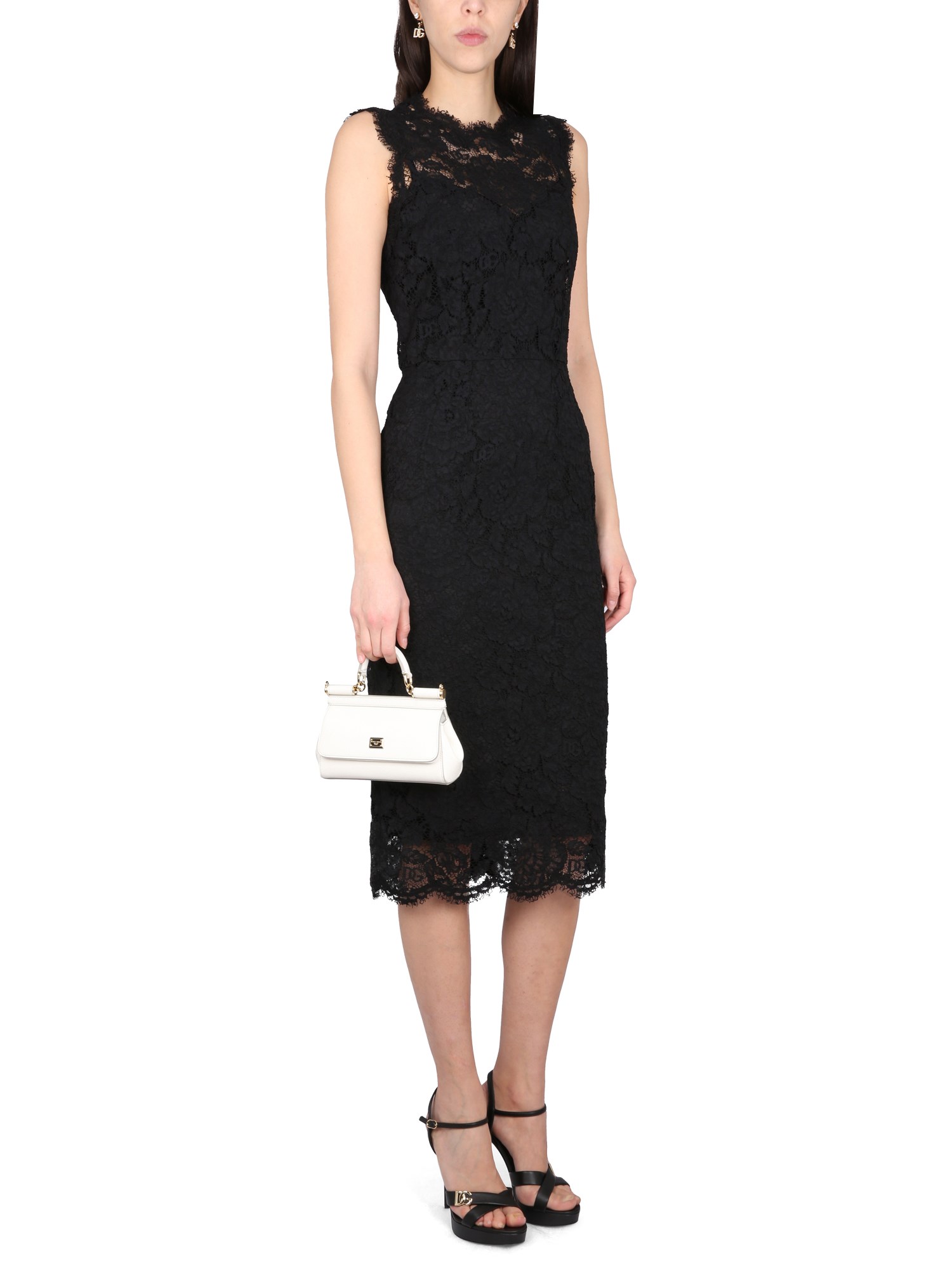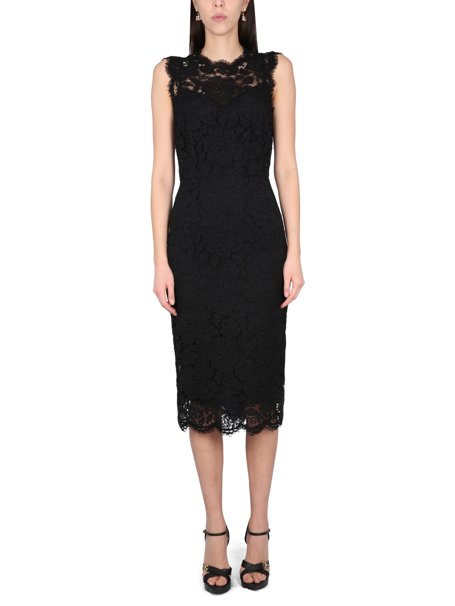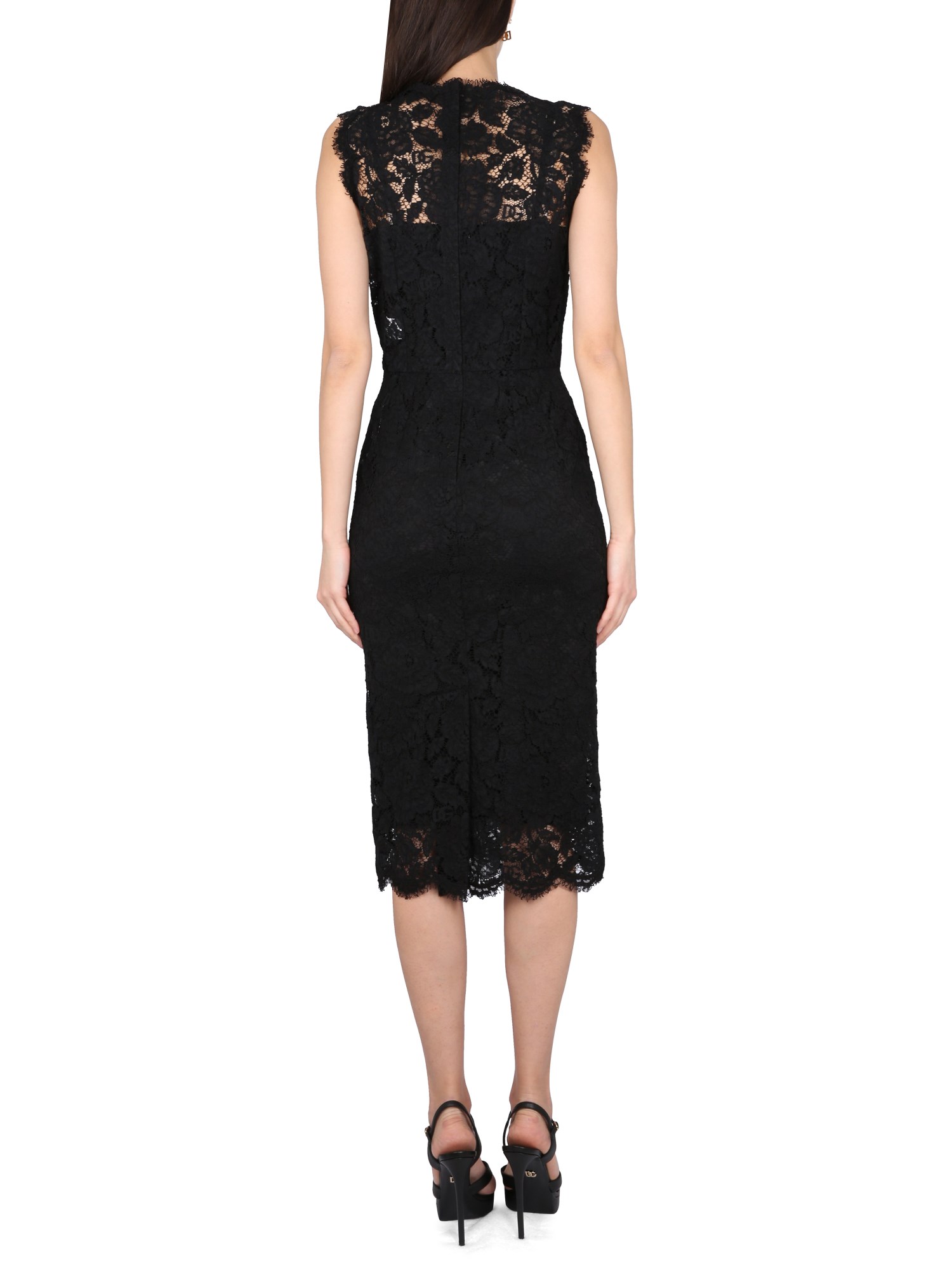 Questo abito longuette nero in misto viscosa di Dolce & Gabbana è l'abito perfetto per qualsiasi occasione formale. La scollatura rotonda è un bellissimo dettaglio che mette in risalto il collo e la chiusura posteriore con cerniera e gancio assicura che il vostro abito rimanga al suo posto per tutta la notte. Abbinate i vostri tacchi e la vostra pochette preferiti per un look chic.