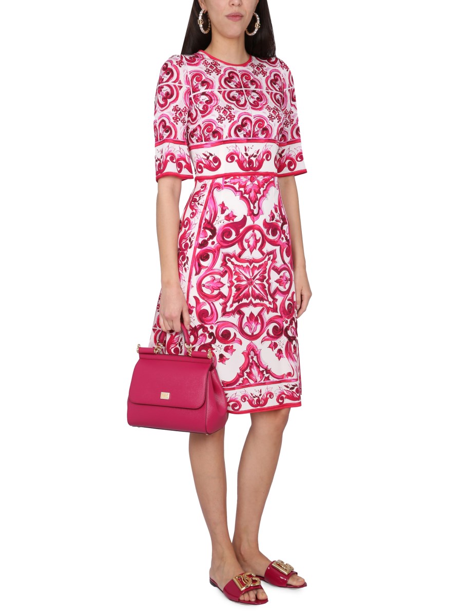 Su una base bianca di grande impatto, che evoca la luce abbagliante del sole sulle case affacciate sul mare, il decoro "calligrafico-naturalistico" - qui in un intenso colore fucsia - che orna le maioliche di Caltagirone è l'ispirazione per la collezione FW 23-24. L'effetto bicolore ci porta alla scoperta di forme e stili iconici e autentici, resi ancora più speciali da motivi unici e non ripetitivi che celebrano l'artigianalità, la leggerezza e la femminilità originali.