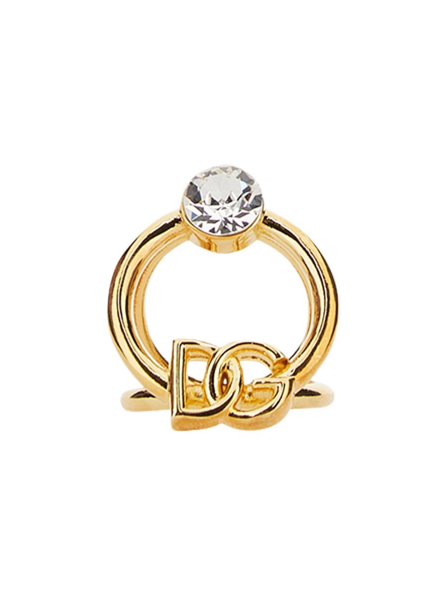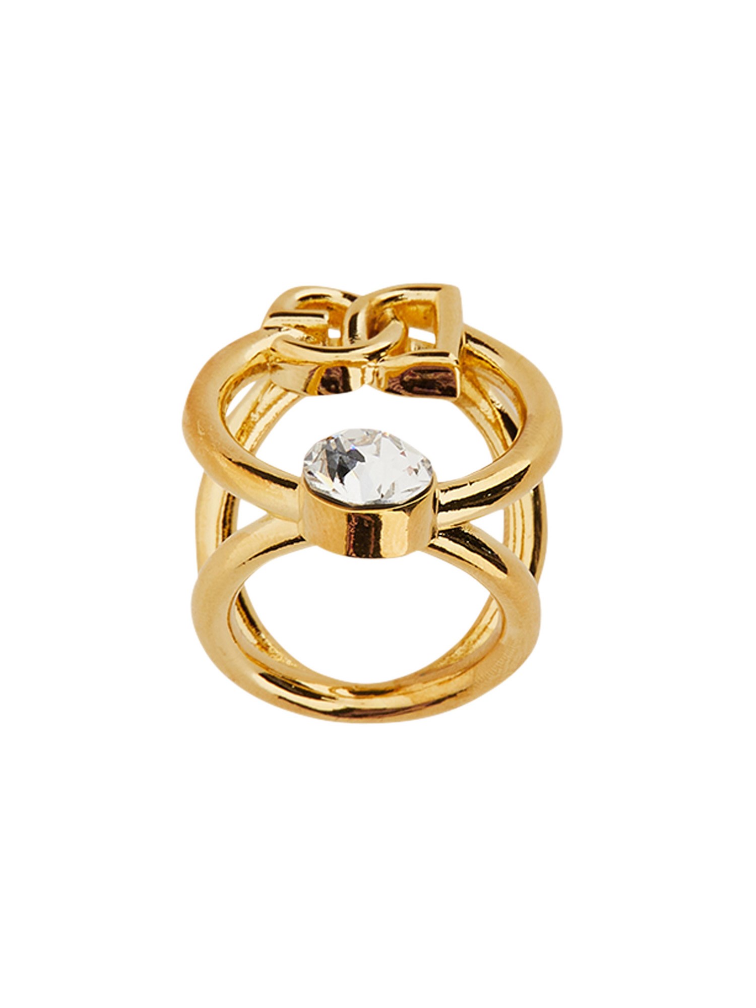 Questo semplice ma splendido anello della maison Dolce & Gabbana è stato progettato per mostrare il meglio del vostro stile. È realizzato in ottone di qualità e con un robusto strass. È lucidato a specchio, con una texture liscia e uniforme. L'anello è resistente e ha un design triangolare.