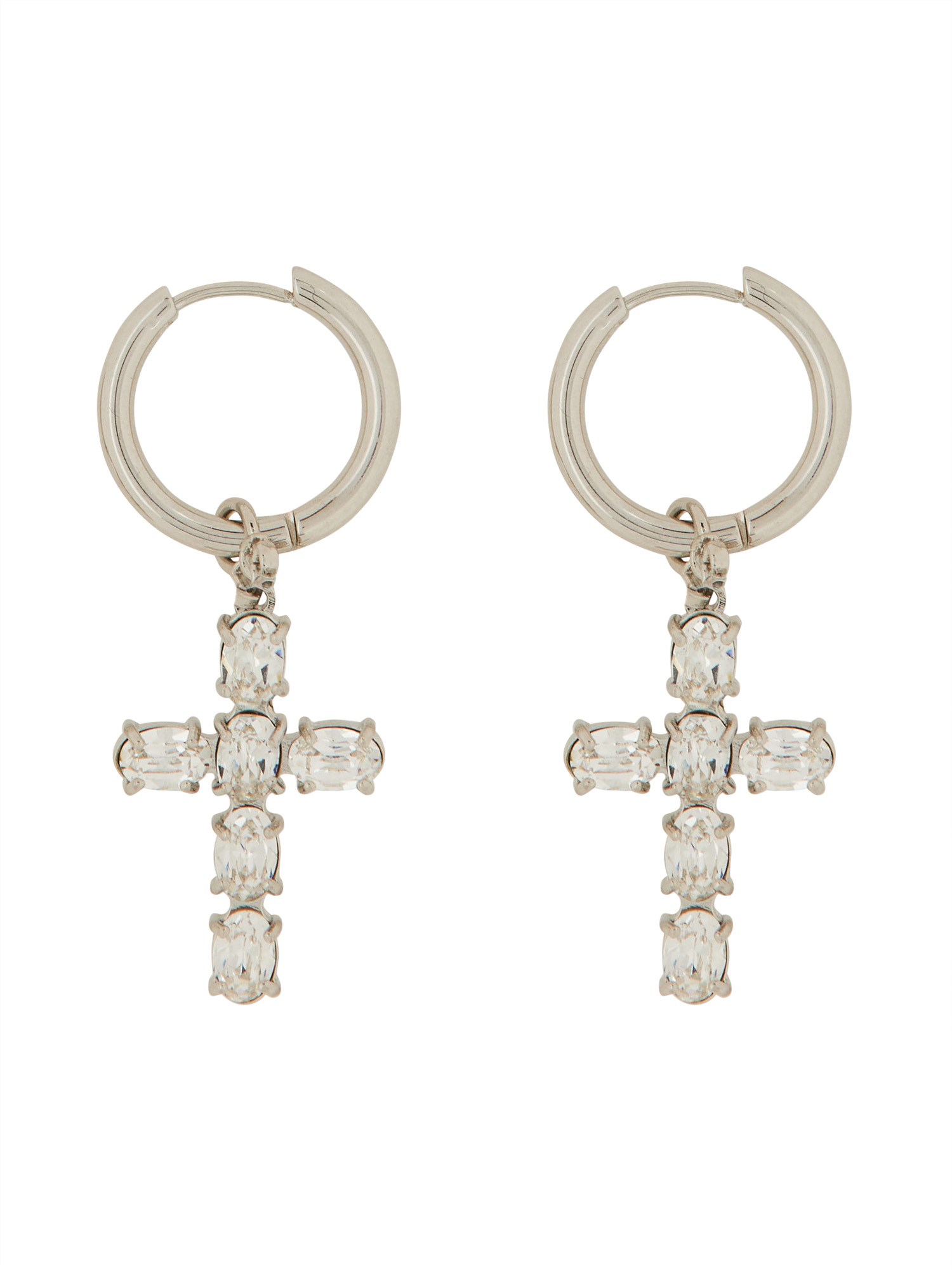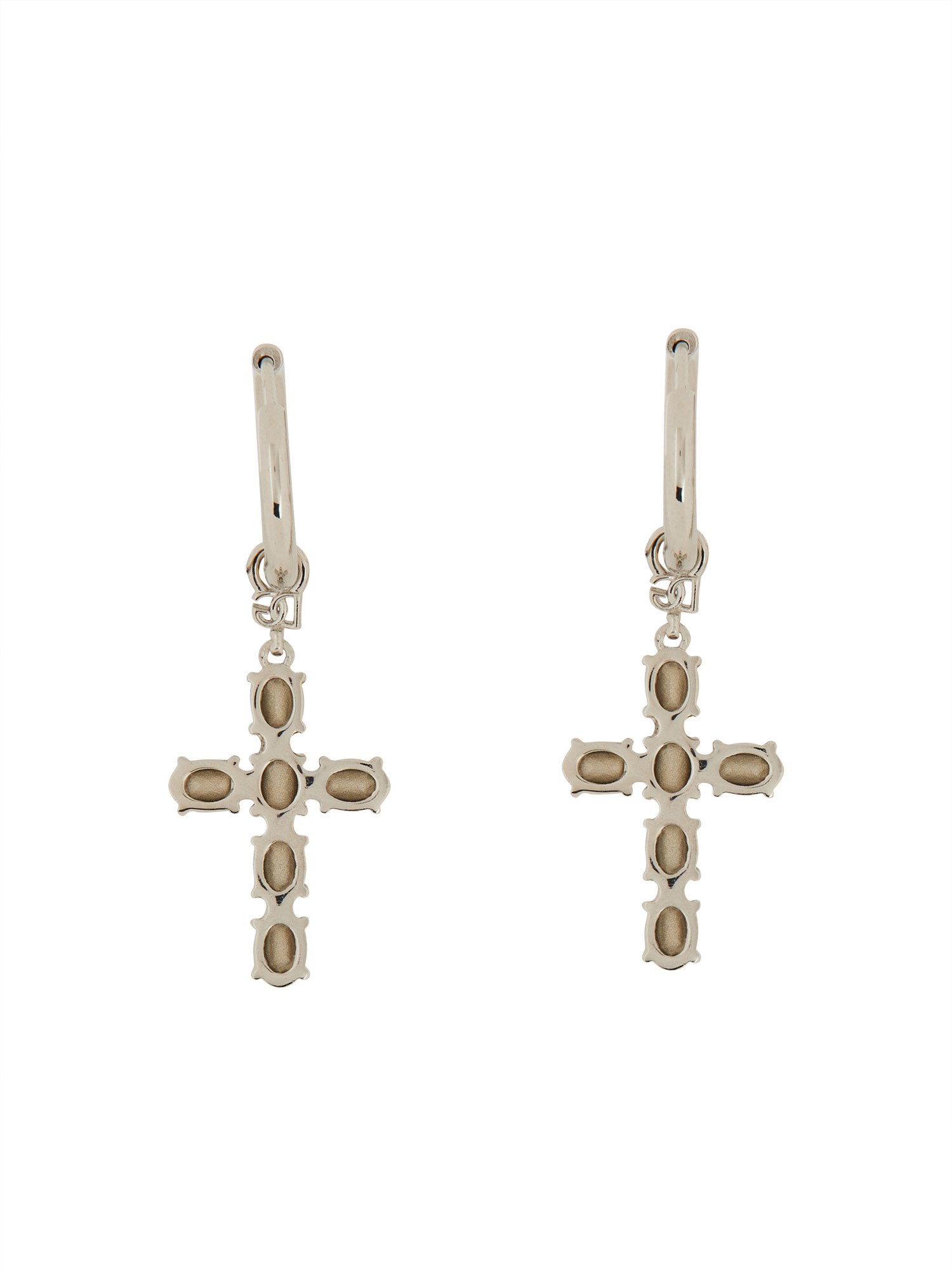 Questo paio di orecchini di Dolce & Gabbana è stato progettato per affascinare e deliziare. Realizzati in ottone di alta qualità con una splendida finitura argentata, questi orecchini combinano senza sforzo l'eleganza con un tocco di grinta. L'intricato design a croce aggiunge un elemento significativo e di tendenza al vostro look, rendendo audace la dichiarazione di moda. La combinazione di ottone e argento garantisce durata e longevità, permettendovi di godere di questi orecchini per gli anni a venire.