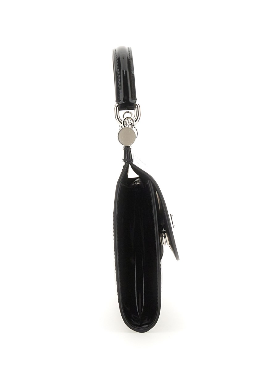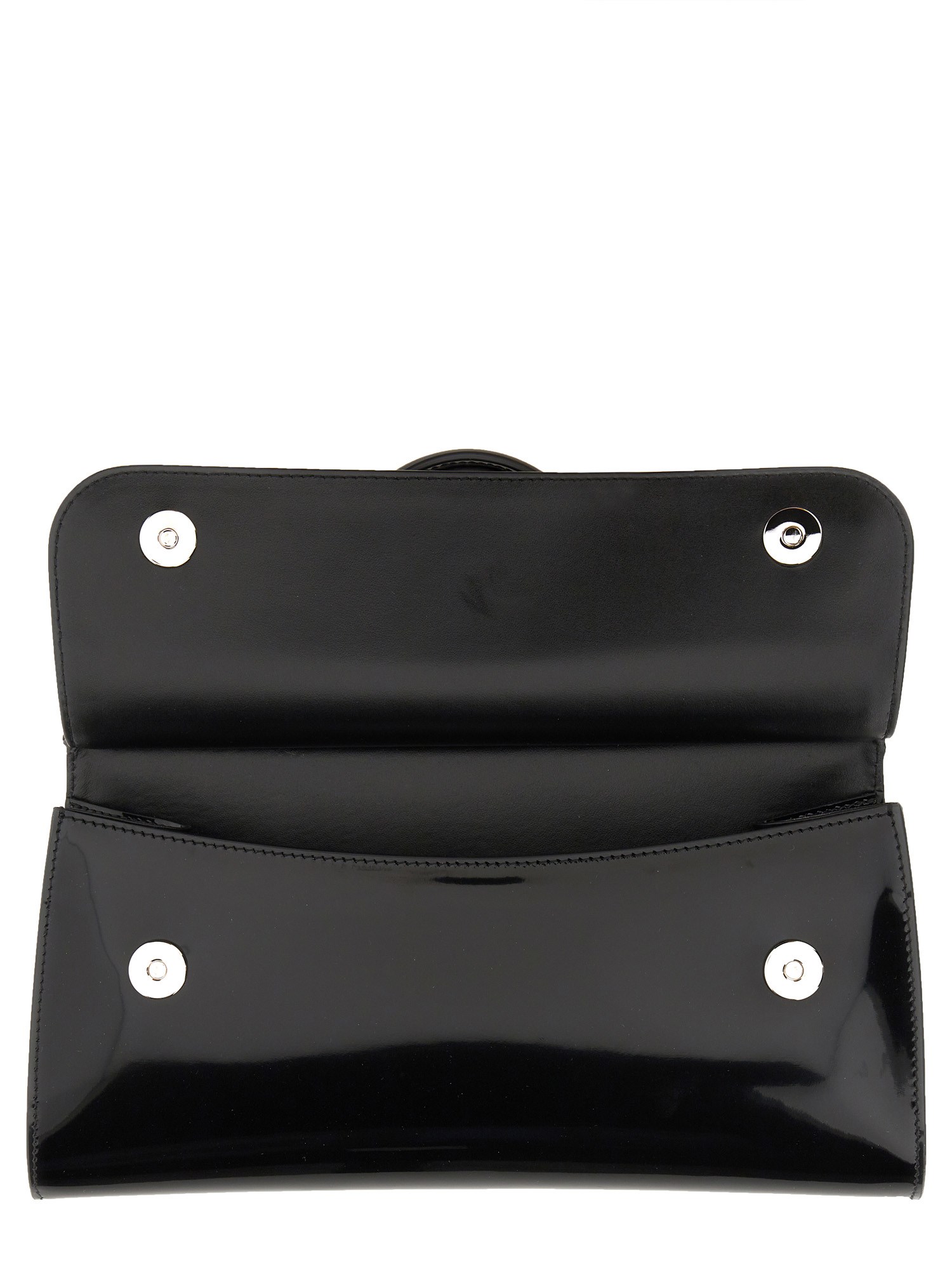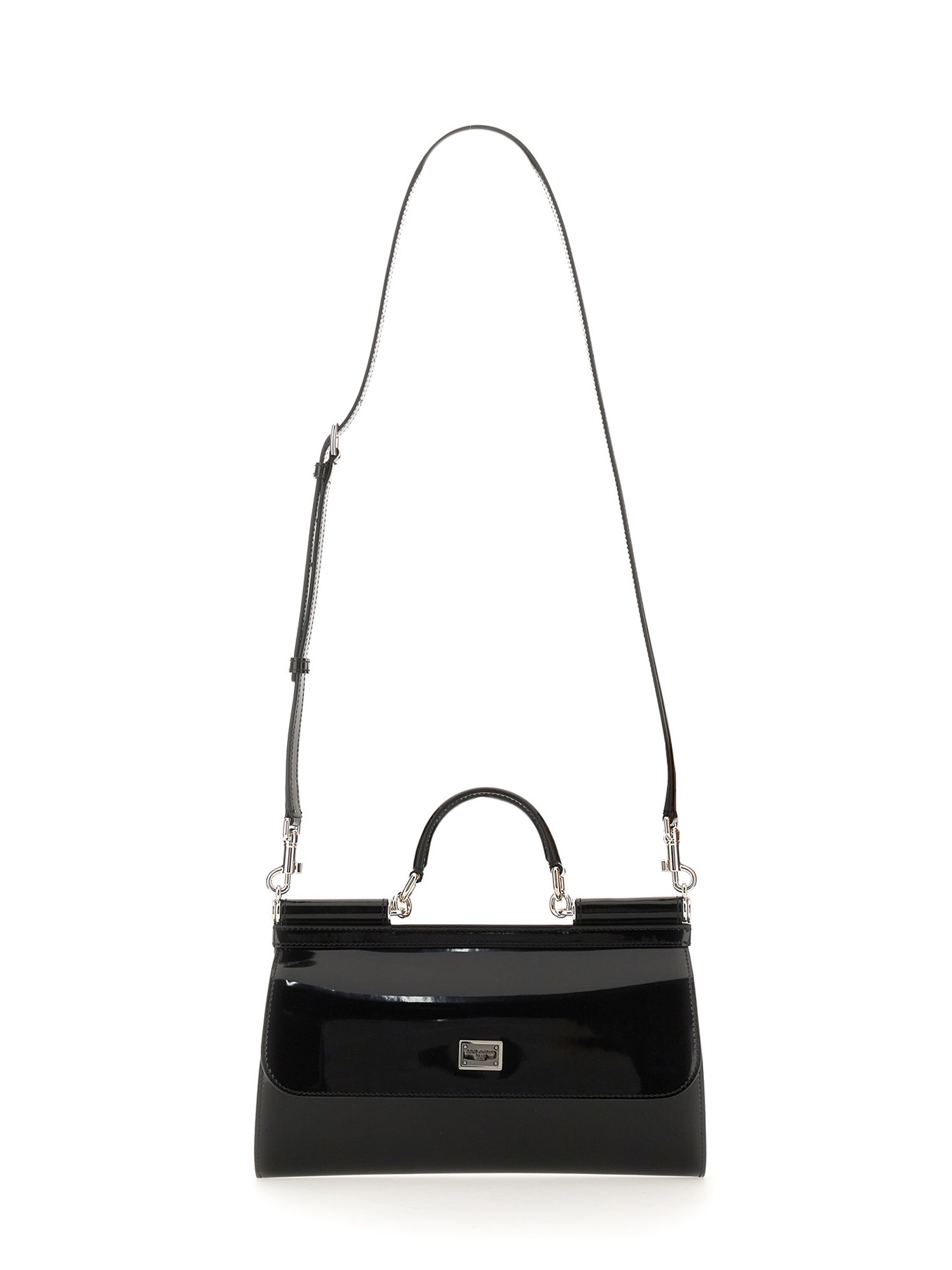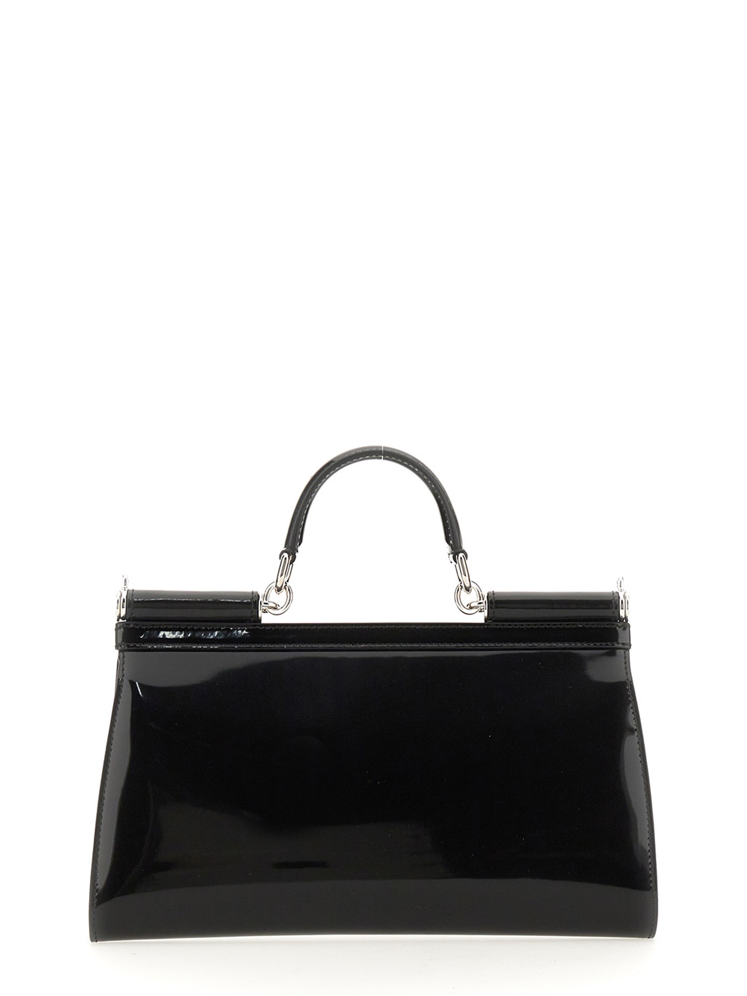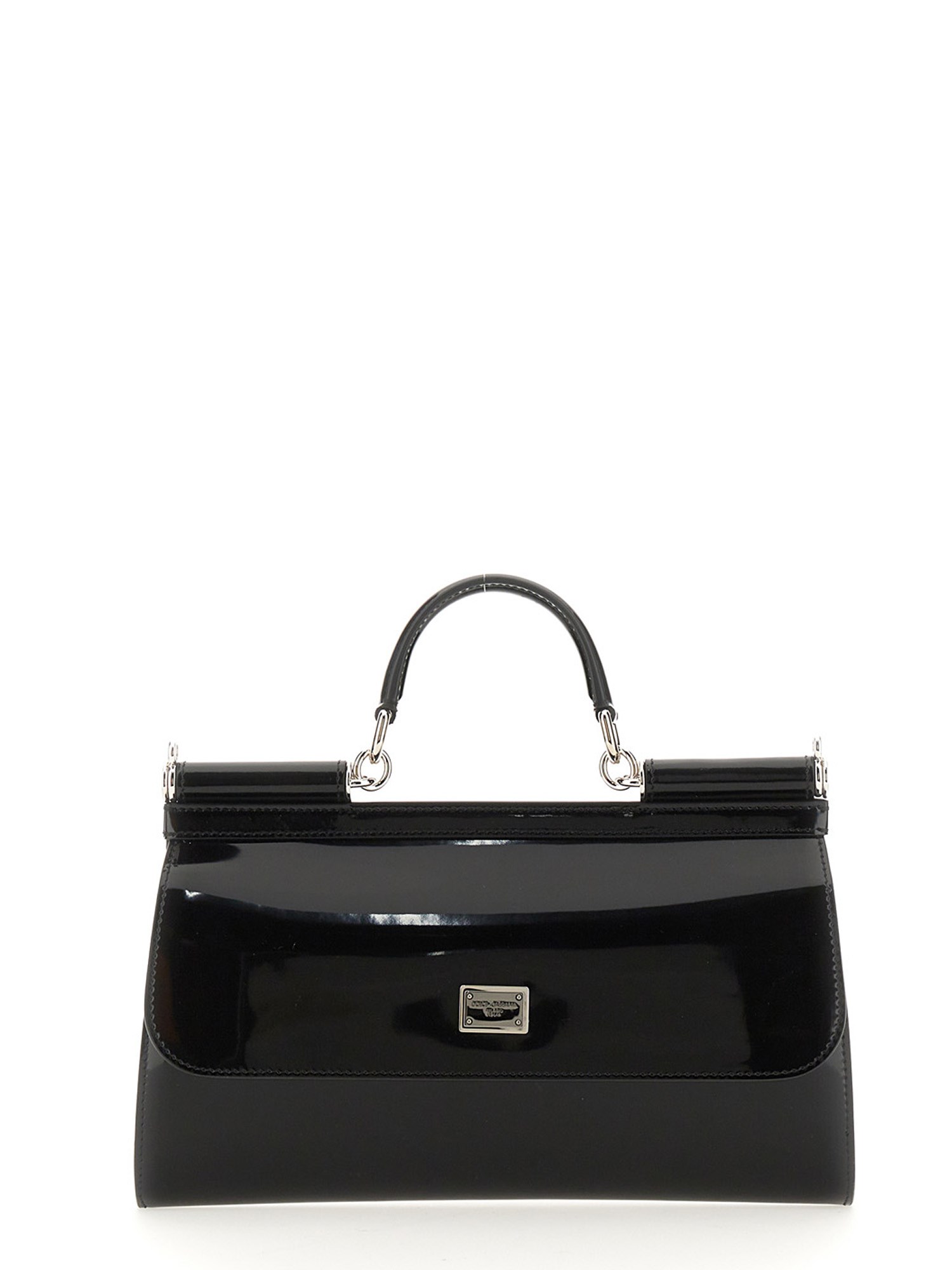 La borsa Kim Dolce E Gabbana in pelle lucida è una rivisitazione elegante e moderna di una forma classica. Ha un design pulito ed elegante con finiture in argento e dettagli cuciti a mano. L'interno, foderato in morbida nappa, è dotato di una tasca con zip e di due tasche portaoggetti. È una borsa ideale per il giorno e la notte, con un manico singolo e una patta frontale per aggiungere stile.
