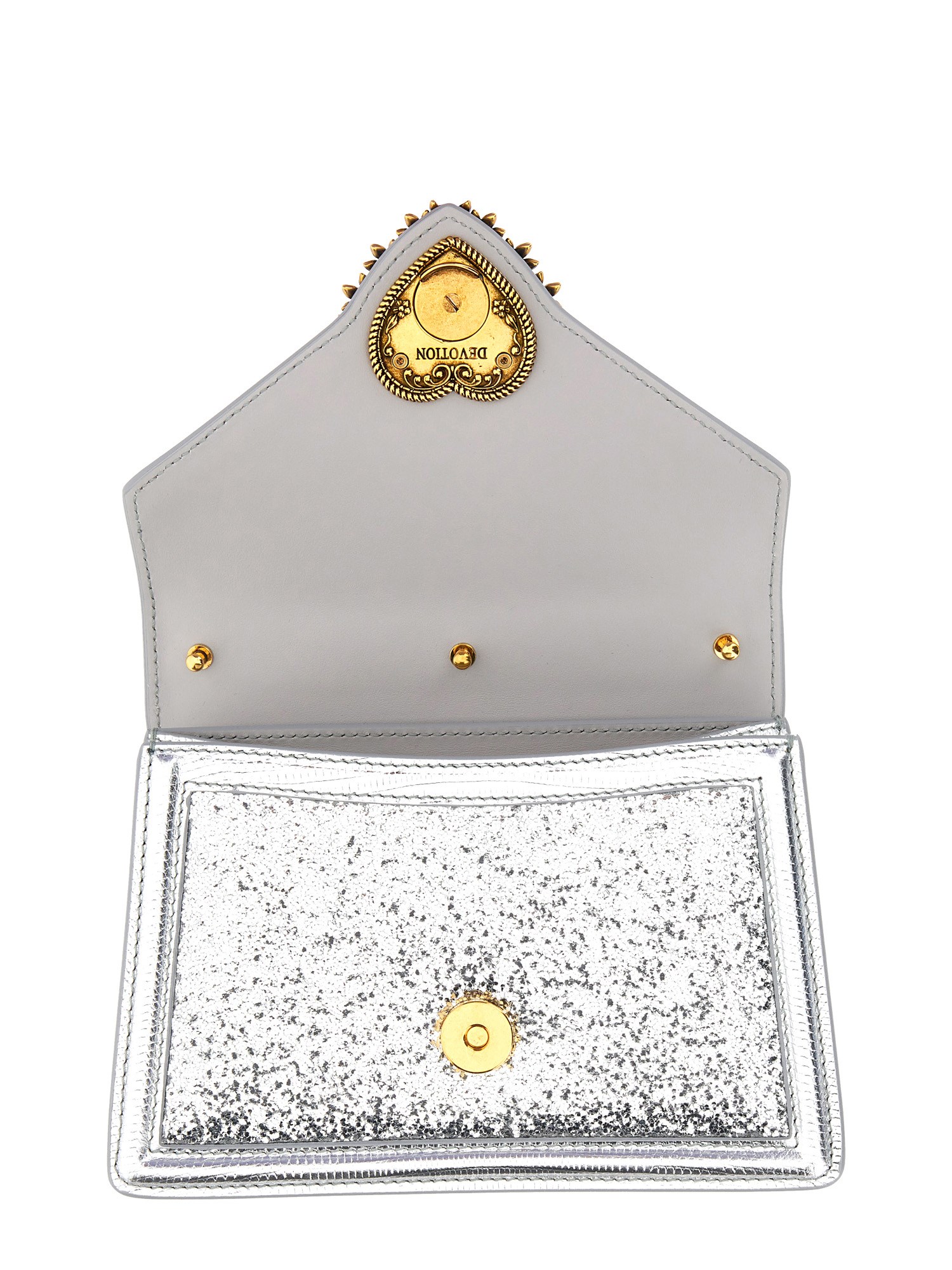 Preparatevi a brillare con la Devotion Small Glitter Bag! Ispirata alla lavorazione meticolosa dell'alta gioielleria, questa borsa presenta una tracolla con catena scorrevole e nappe che aggiunge un tocco giocoso al vostro look. La chiusura con patta e bottone consente un facile accesso e tiene al sicuro i vostri effetti personali. Un elemento di spicco è il cuore in lega metallica logato a mano con intarsi di perle, che aggiunge un tocco di raffinatezza. Con due tasche interne e un interno foderato, questa borsa è un must-have per chi apprezza sia lo stile che la funzionalità.