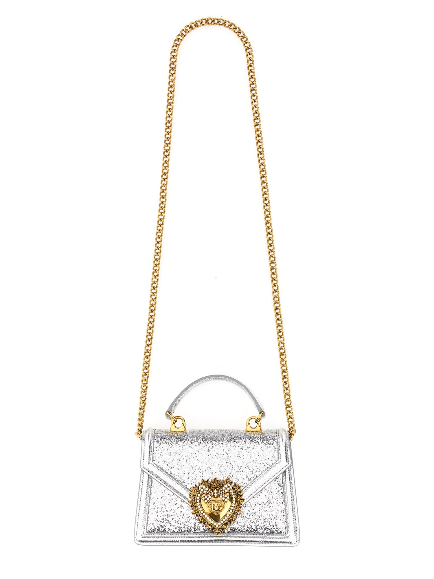 Preparatevi a brillare con la Devotion Small Glitter Bag! Ispirata alla lavorazione meticolosa dell'alta gioielleria, questa borsa presenta una tracolla con catena scorrevole e nappe che aggiunge un tocco giocoso al vostro look. La chiusura con patta e bottone consente un facile accesso e tiene al sicuro i vostri effetti personali. Un elemento di spicco è il cuore in lega metallica logato a mano con intarsi di perle, che aggiunge un tocco di raffinatezza. Con due tasche interne e un interno foderato, questa borsa è un must-have per chi apprezza sia lo stile che la funzionalità.