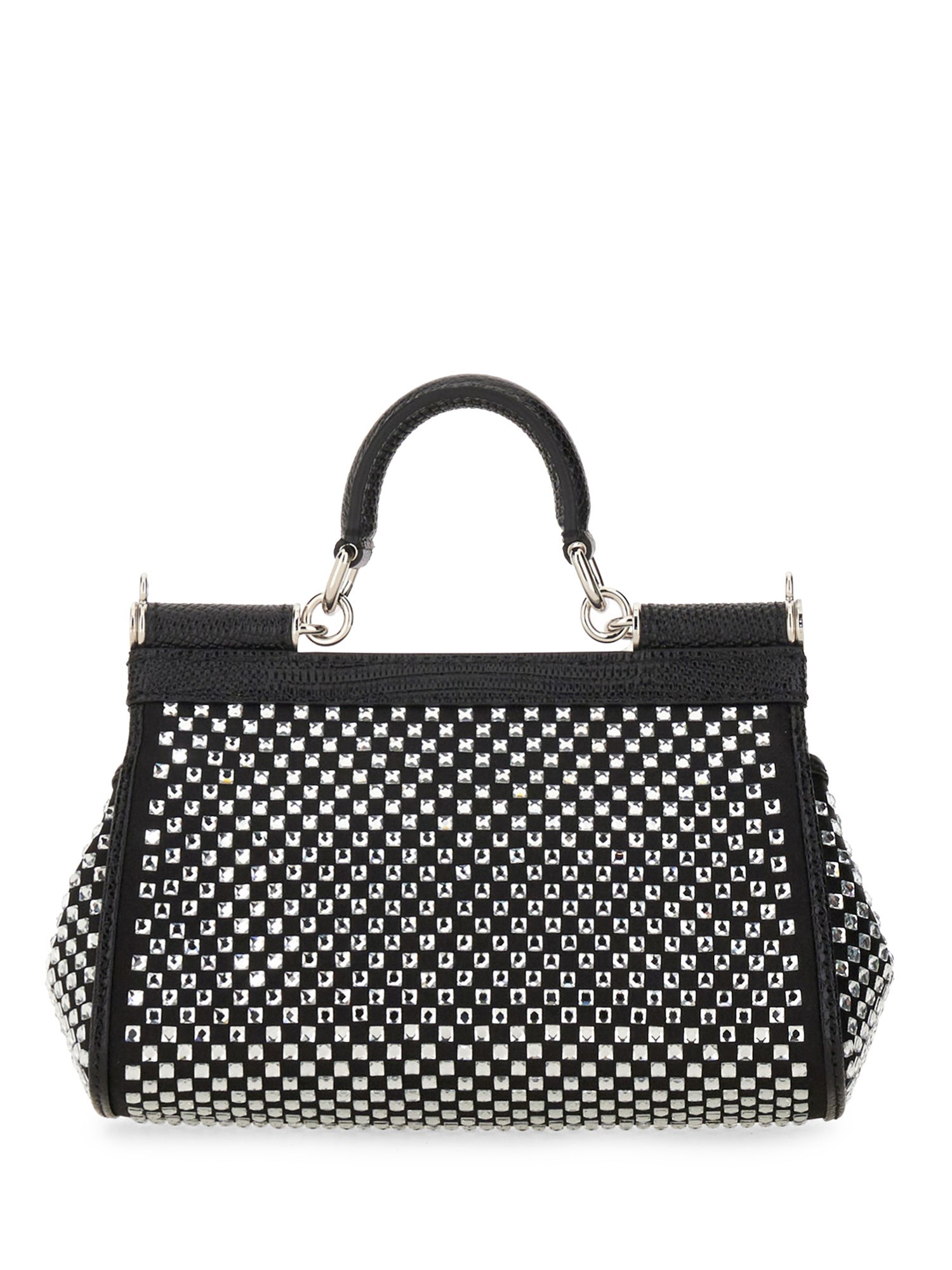 La borsa piccola Sicily di Dolce & Gabbana è sinonimo di eleganza e raffinatezza, realizzata con materiali pregiati che garantiscono durata e stile. Il suo design compatto presenta una silhouette strutturata, ornata dall'iconico logo del marchio, che la rende un accessorio versatile da indossare sia di giorno che di sera. L'interno è studiato per contenere gli oggetti essenziali, mentre la tracolla regolabile consente di indossarla comodamente. Questa squisita borsa è un pezzo forte che riflette il ricco patrimonio e la maestria della moda italiana.