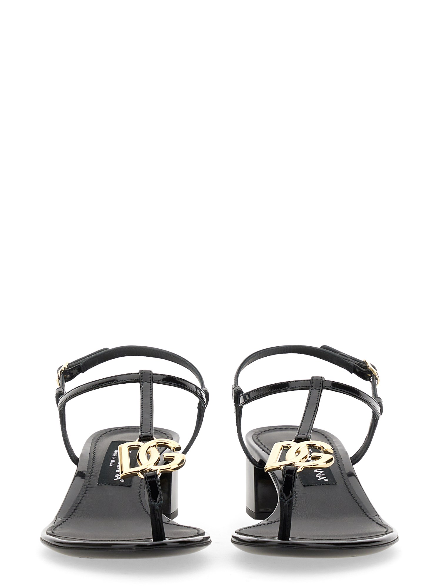 Con il logo del marchio all'esterno, questo sandalo infradito in vernice di Dolce & Gabbana è pronto per una serata fuori. Il tacco ha una suola sottile e leggermente flessibile che rende facile la camminata. La vernice è resistente e può essere pulita se necessario. Il tacco misura 4 cm ed è assolutamente confortevole.