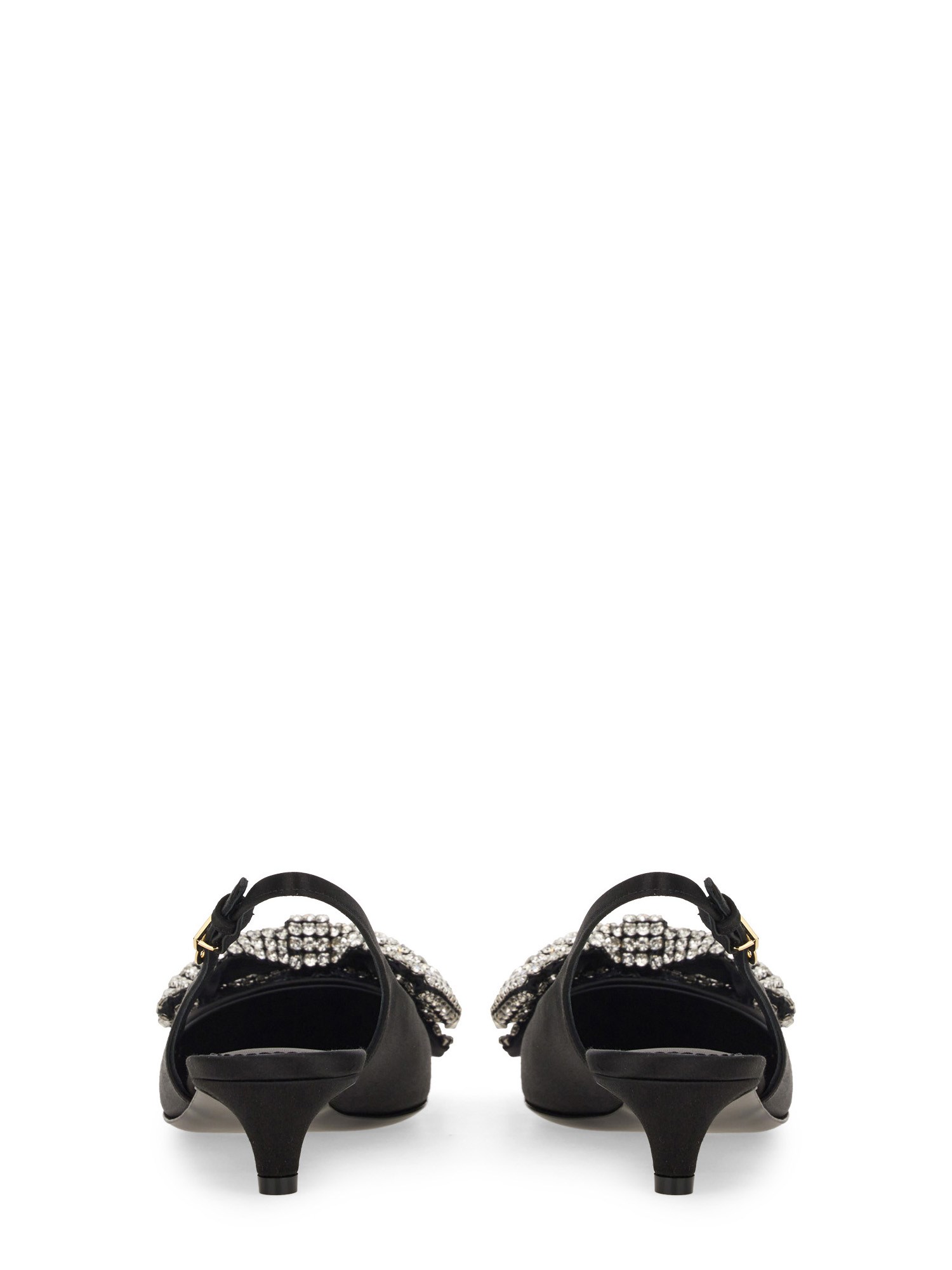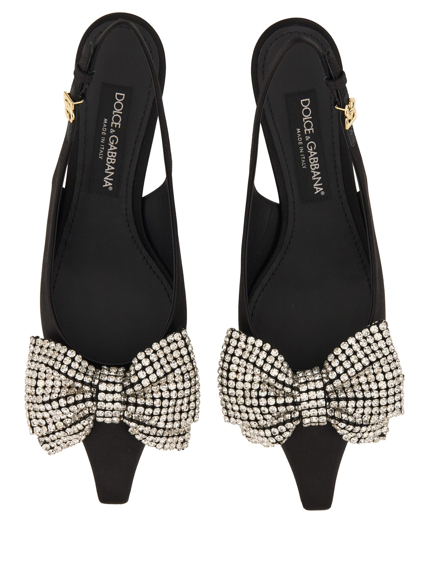 Il modello Satin Sling-Back con ricamo di strass di Dolce & Gabbana incarna eleganza e raffinatezza. Realizzate in lussuoso raso, queste squisite calzature presentano un delicato design sling-back che assicura una calzata confortevole e valorizza la silhouette del piede. L'intricato ricamo di strass aggiunge un tocco di glamour, rendendo queste scarpe perfette sia per le occasioni formali che per gli eventi di alto livello. Con la loro estetica raffinata e l'attenzione ai dettagli, queste sling-back sono un'aggiunta irrinunciabile a qualsiasi guardaroba alla moda.