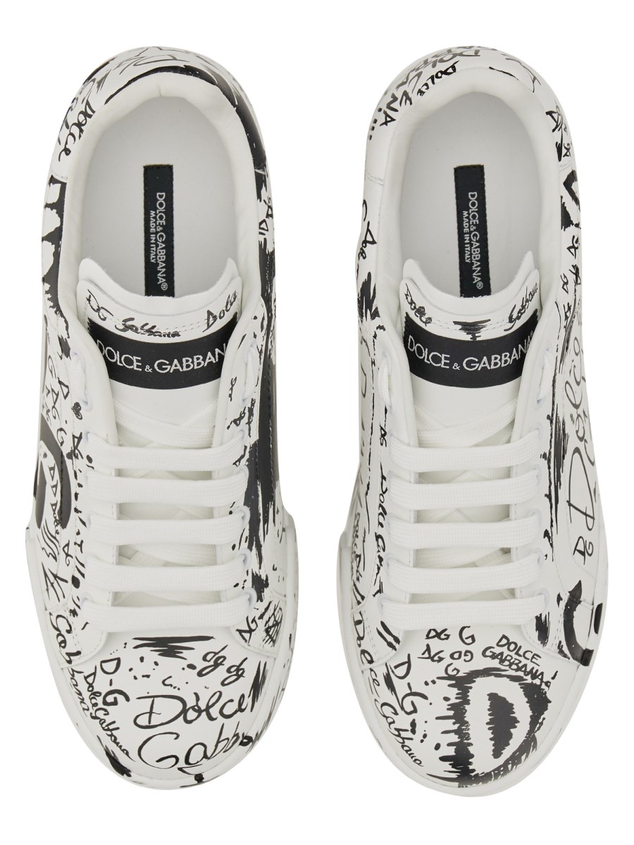 Le sneaker Portofino in pelle di Dolce & Gabbana sono un paio di scarpe semplici ed eleganti con un design con logo. Presentano una tomaia in pelle, un plantare in pelle, una chiusura con lacci e una suola in gomma resistente. Sono comode e progettate con il massimo comfort per l'uso quotidiano.