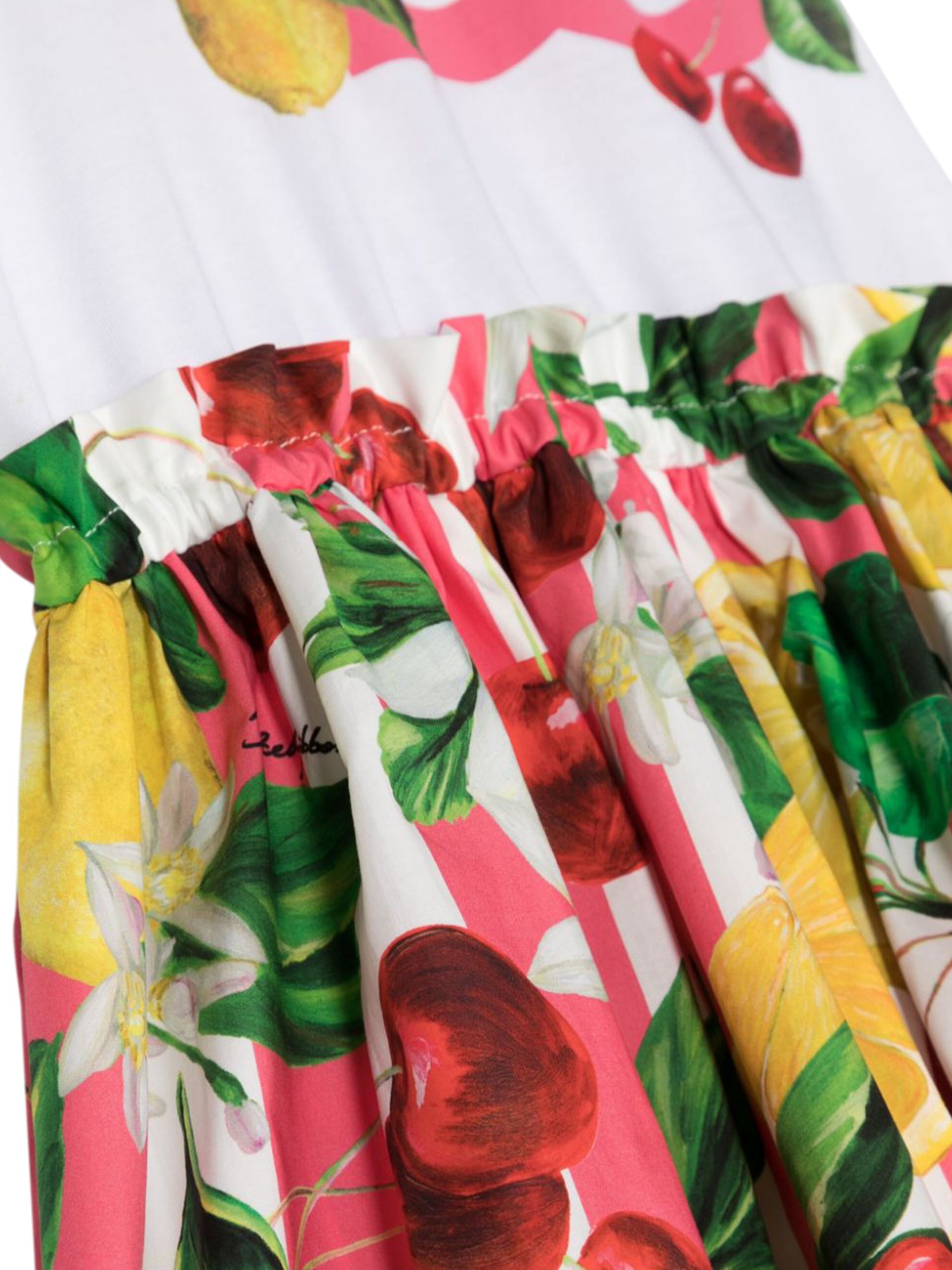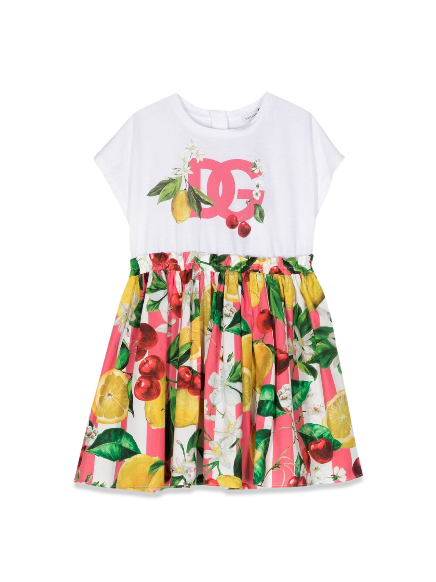 Questo abito a maniche corte per bambini di Dolce & Gabbana è una scelta elegante e confortevole per ogni occasione. Realizzato con materiali di alta qualità, presenta un design unico, di tendenza e senza tempo. Questo abito è l'aggiunta perfetta al guardaroba di ogni giovane fashionista, che non mancherà di farsi notare ovunque vada. Ideale per le uscite casual o per gli eventi speciali, questo abito è un must per ogni bambina alla moda.