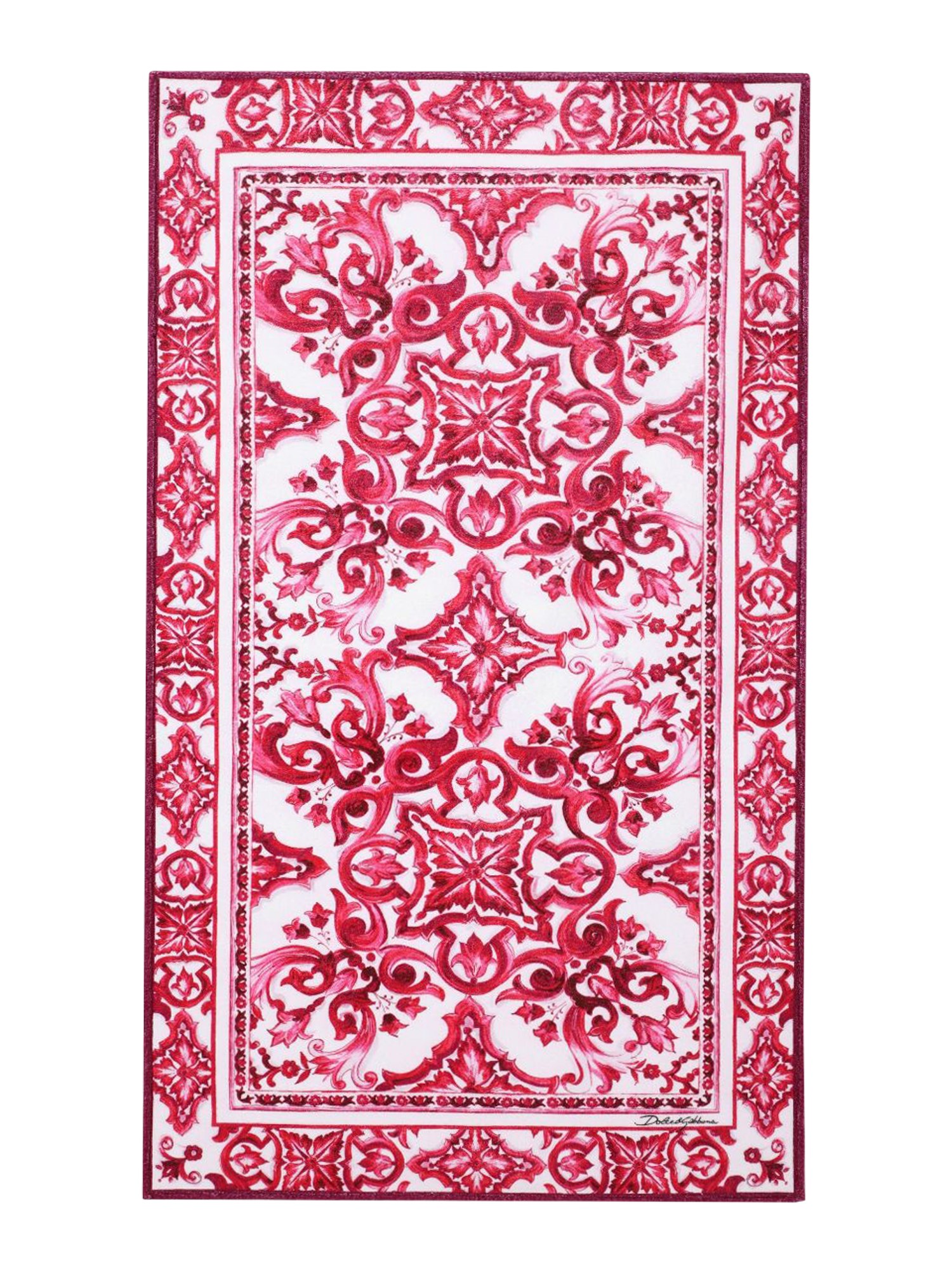 Il telo mare tris in maiolica 140x80 di Dolce & Gabbana è il compagno perfetto per le uscite del fine settimana. È realizzato in cotone morbido e traspirante e ha una struttura leggera e resistente. È ornato da un design unico e ha una forma rettangolare che offre una copertura completa.