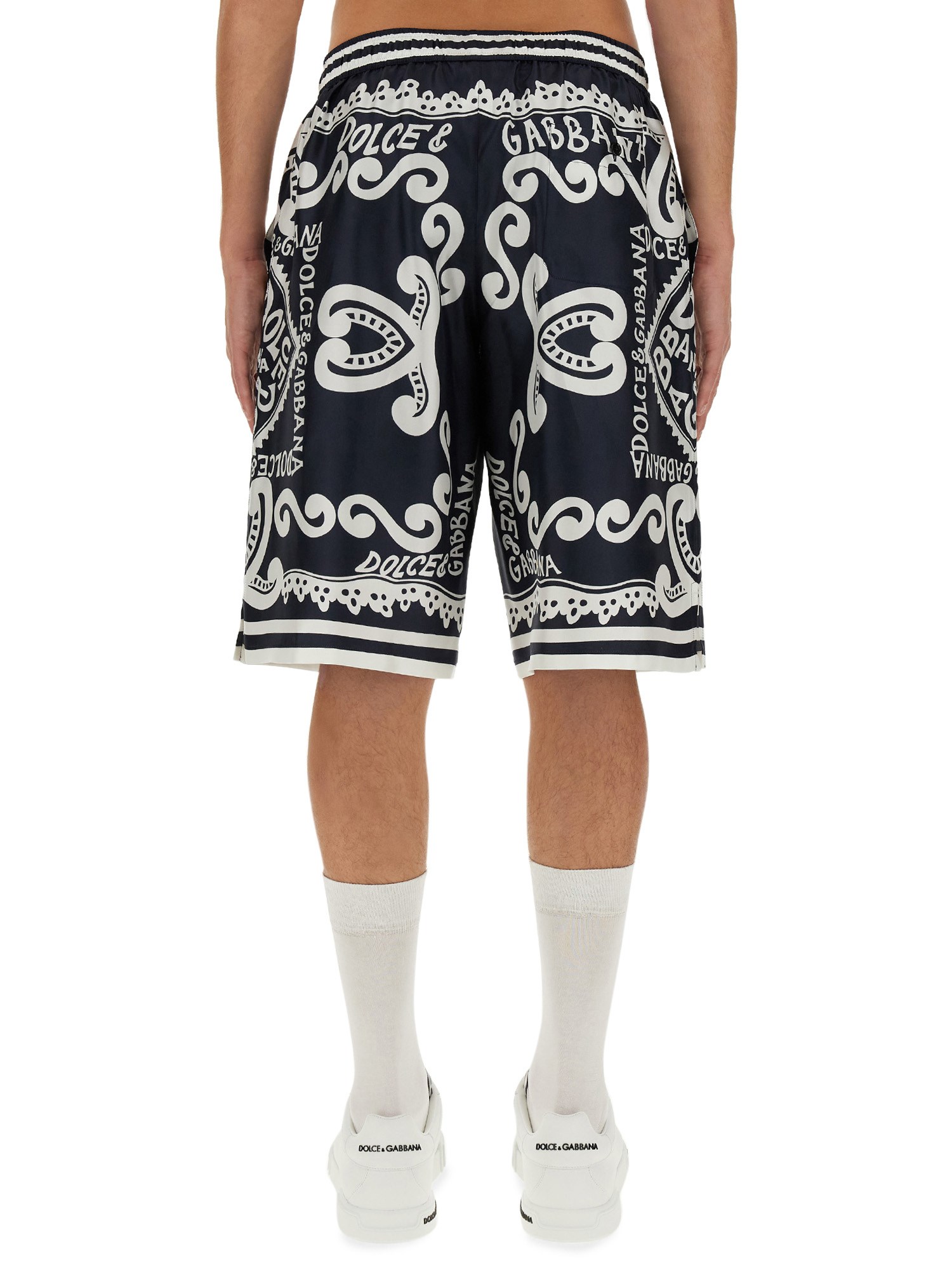 Questi pantaloncini di Dolce & Gabbana offrono una sensazione di lusso sulla pelle. L'elastico in vita assicura una vestibilità perfetta, permettendovi di muovervi con facilità e grazia. Sia che stiate passeggiando sulla spiaggia o partecipando a una serata glamour, questi pantaloncini combinano senza sforzo stile e comfort, rendendoli un'aggiunta indispensabile al vostro guardaroba.