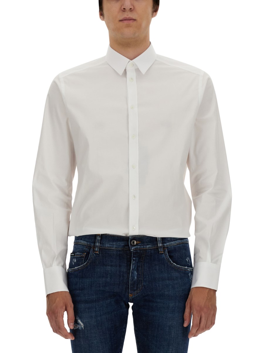 La camicia in cotone collo italiano gold fit di Dolce & Gabbana è un capo classico e senza tempo, realizzato in 100% cotone. Ha un design leggermente aderente con colletto button-down e polsini abbottonati, che la rendono perfetta per ogni occasione. Questa camicia casual dal colletto italiano è realizzata in puro cotone e presenta un fronte e un retro in tinta unita.