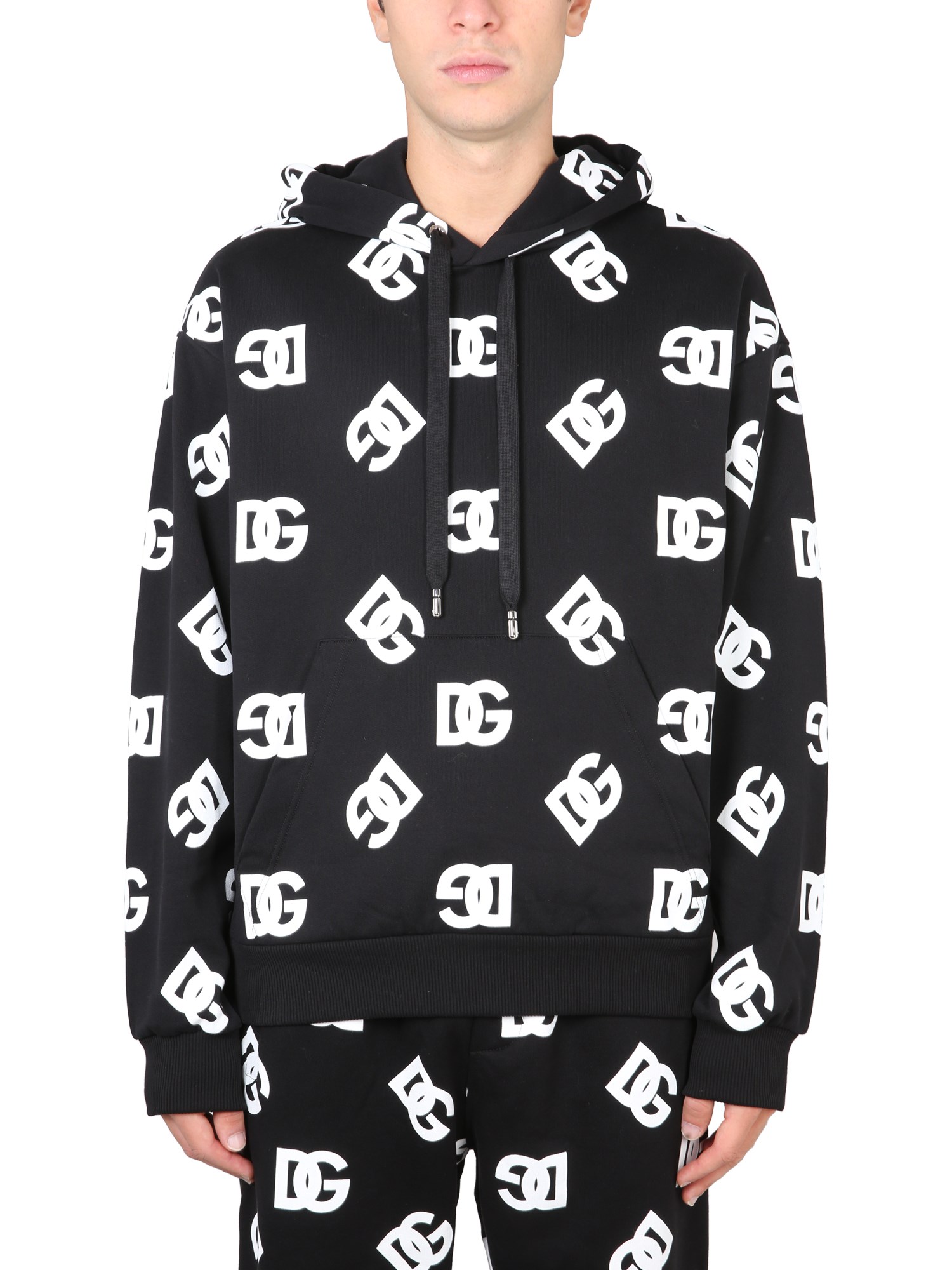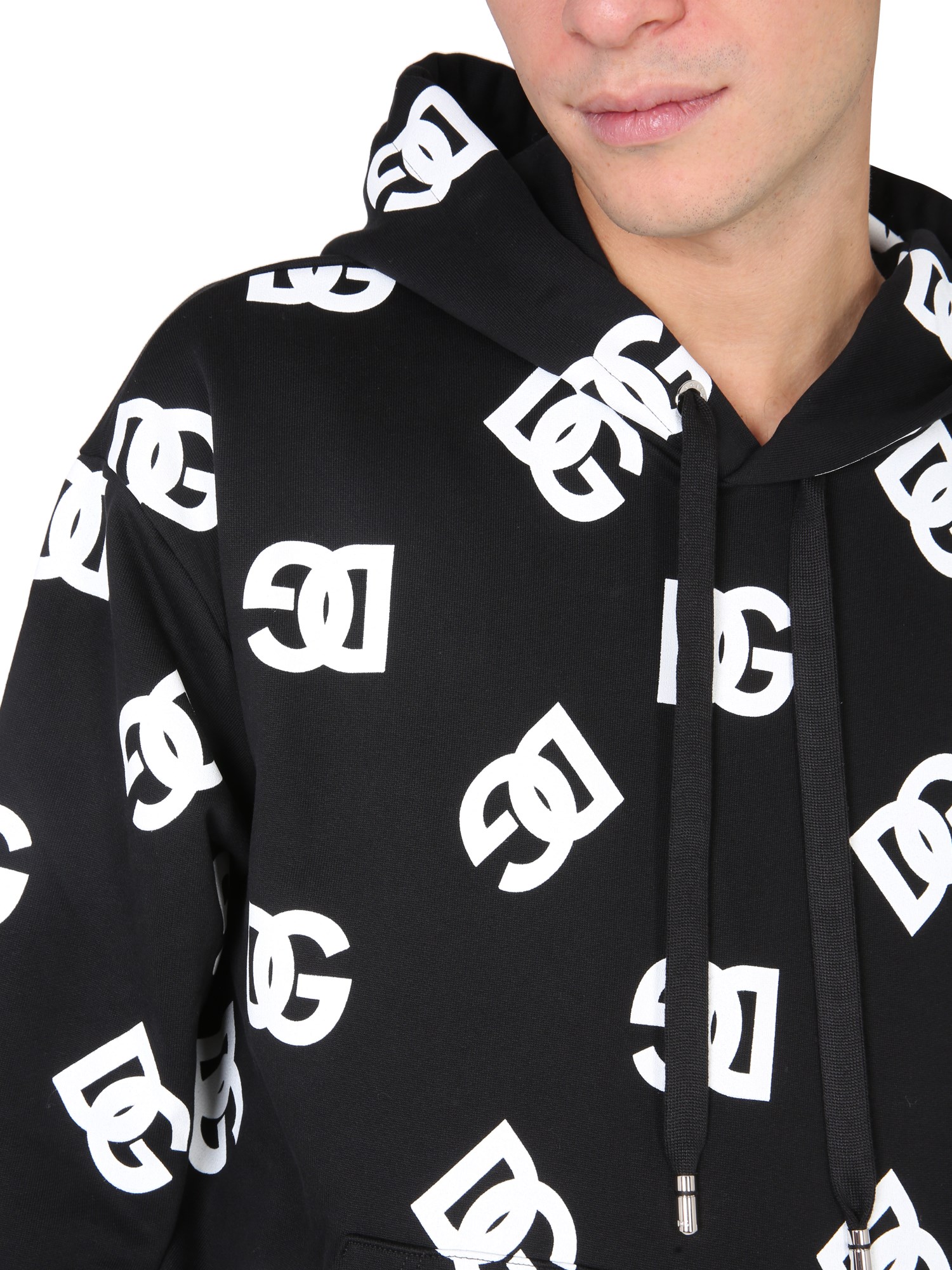 - CAPPUCCIO CON COULISSE- STAMPA LOGO ALL OVER- 100% COTONE- MADE IN ITALY- IL MODELLO È ALTO 185 CM E INDOSSA LA TAGLIA 48 IT
