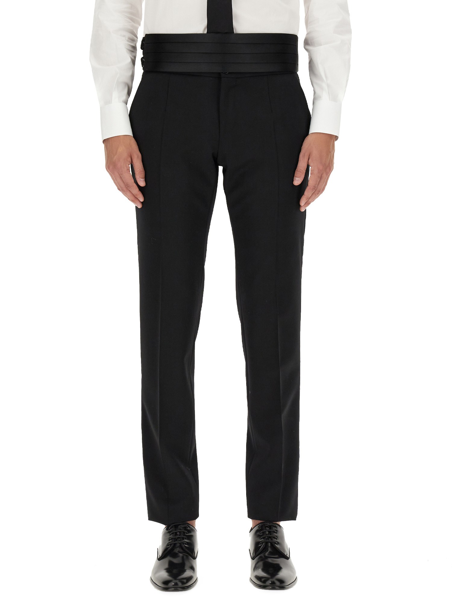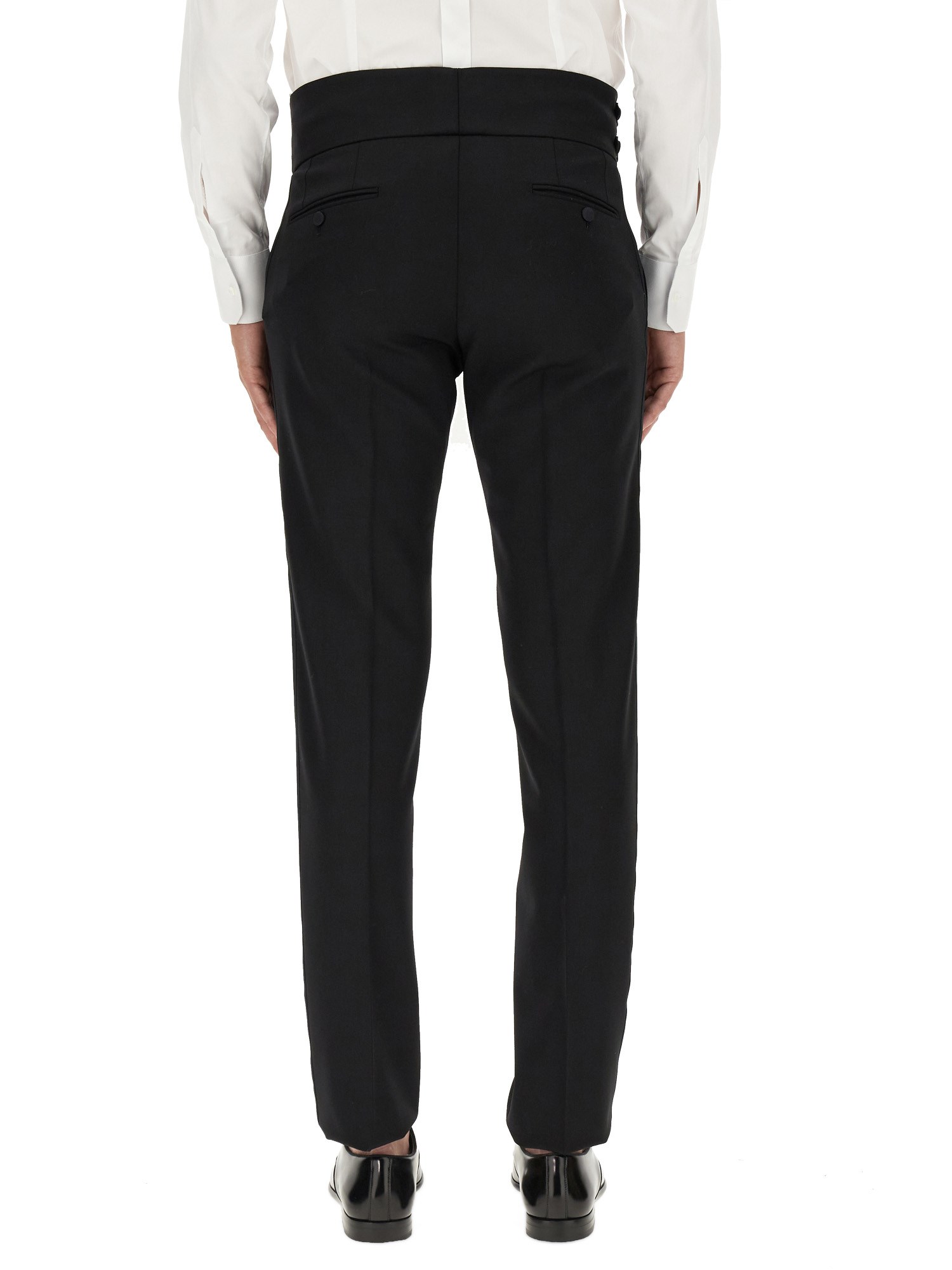 Scoprite l'ultimo capo del guardaroba con i pantaloni sartoriali di Dolce & Gabbana. Realizzati con cura in una resistente miscela di lana, poliestere ed elastan, questi pantaloni garantiscono un comfort che dura tutto il giorno. Lo stile a gamba dritta aggiunge un tocco femminile. Osate essere eleganti senza sforzo abbinandoli a una camicetta rimboccata e a degli stivaletti.