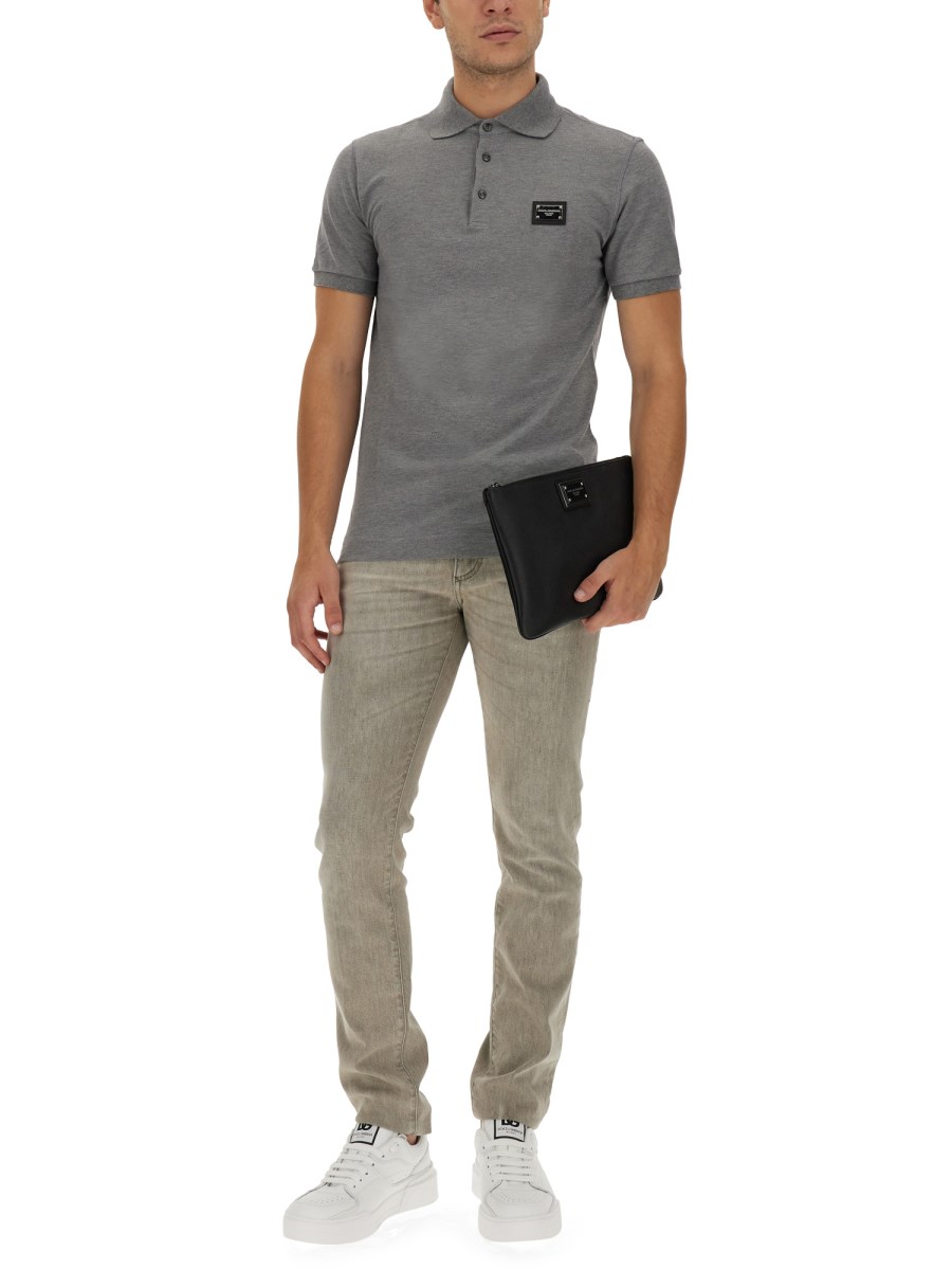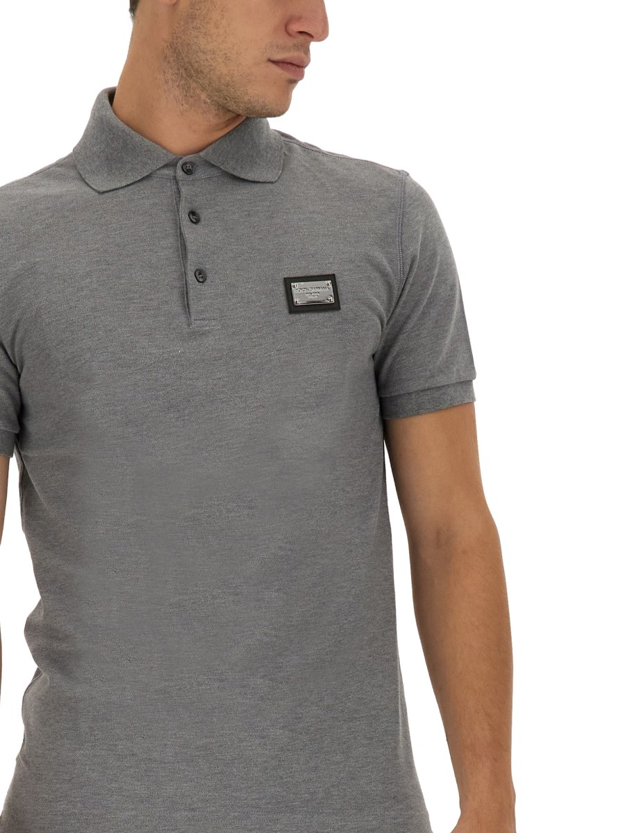 Vi presentiamo la nostra elegante polo in piqué di cotone con placca logo di Dolce & Gabbana! Creata con la massima cura, questa polo classica presenta un comodo colletto a polo con abbottonatura e maniche corte. Realizzata in pregiato tessuto piqué di cotone, offre un perfetto mix di stile e comfort. L'iconica targhetta con logo aggiunge un tocco di raffinatezza, rendendola la scelta perfetta per uscite casual o eventi smart-casual.