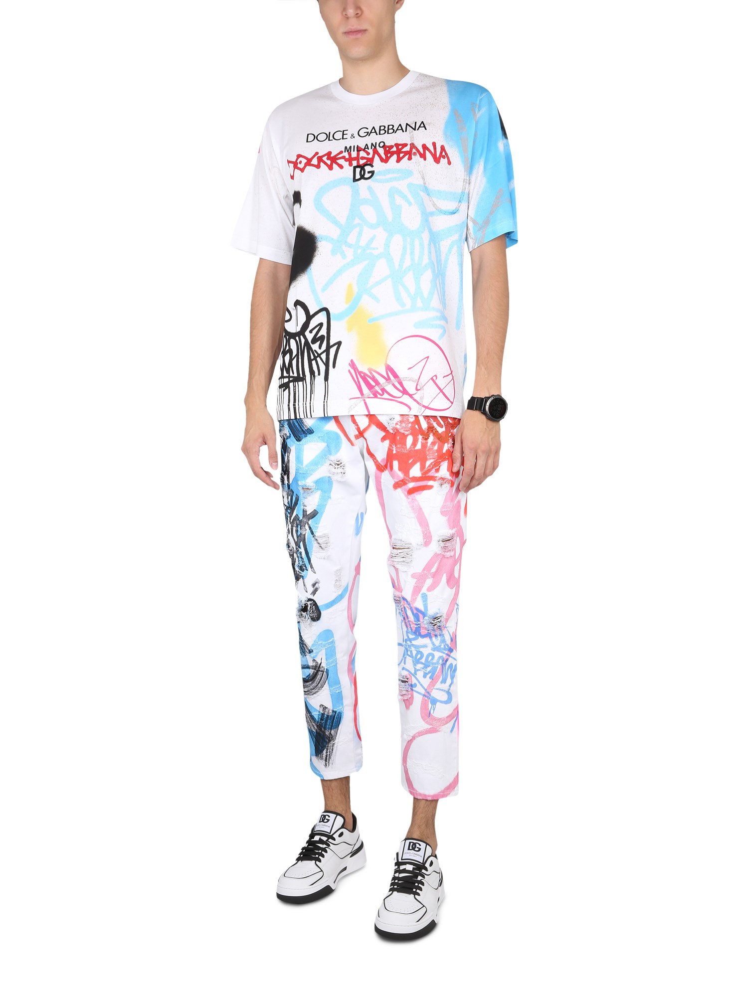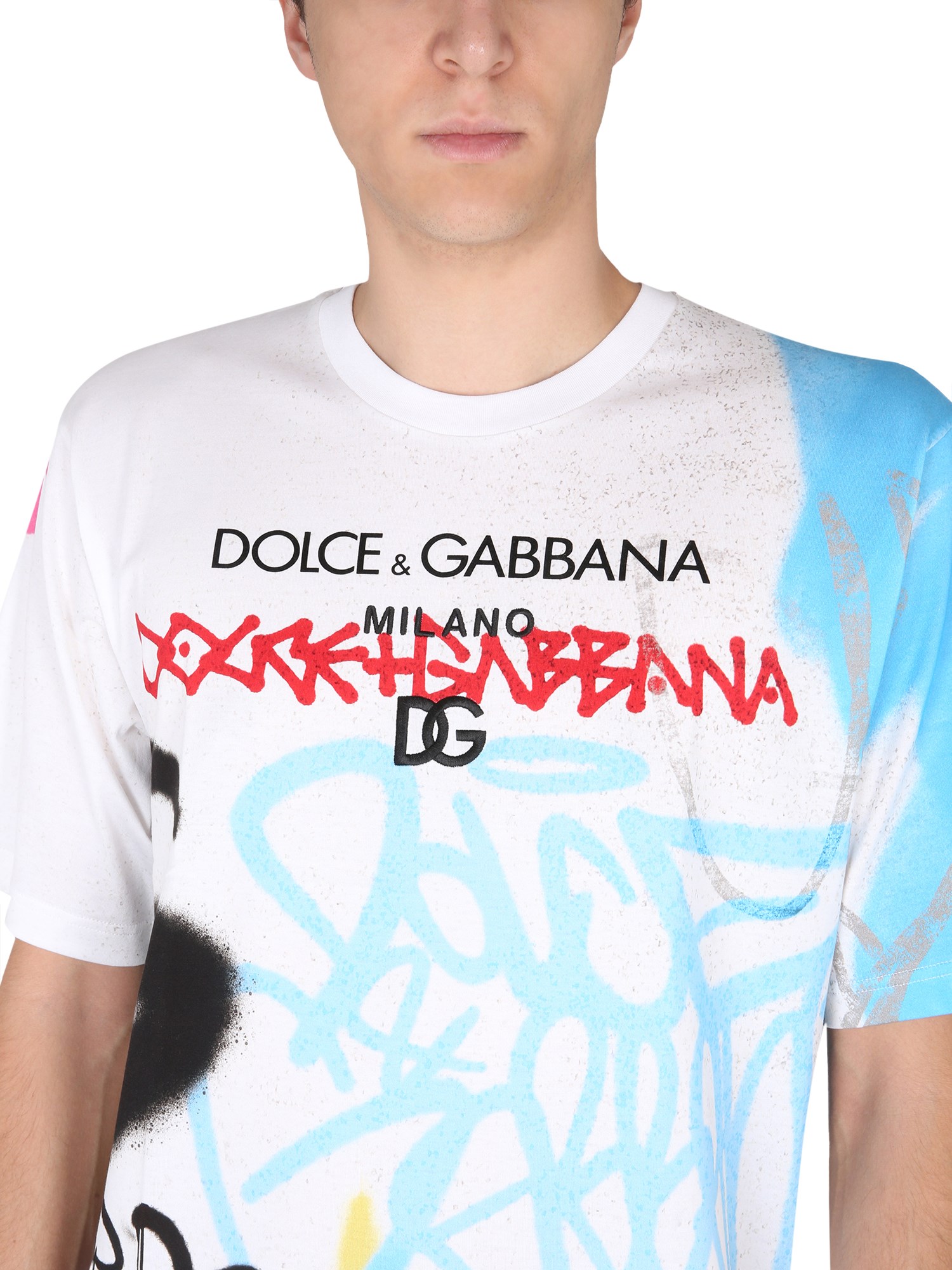 Una simpatica T-shirt di Dolce & Gabbana per ogni occasione, questa maglietta a maniche corte è perfetta per essere indossata in spiaggia o anche in una giornata casual. Il tessuto in jersey di cotone è confortevole e la stampa graffiti all over è accattivante. Realizzata in morbido cotone, è comoda e traspirante e ha una vestibilità slim.