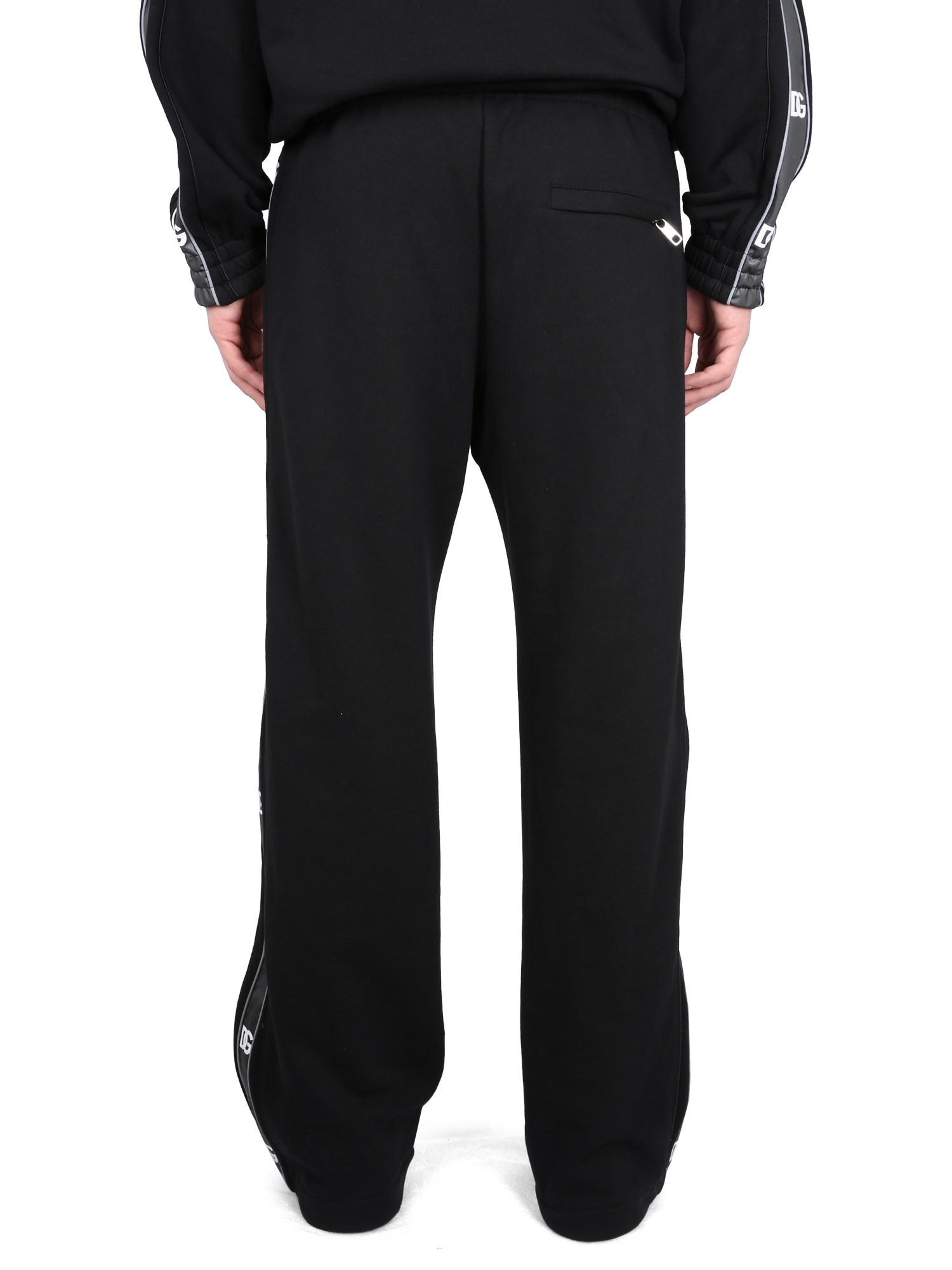 Preparatevi ad affrontare la strada o il tapis roulant con questi morbidi e comodi joggers di Dolce & Gabbana! Sono realizzati in tessuto jersey di cotone, elastico e traspirante. L'elastico in vita è dotato di coulisse e i pantaloni hanno due tasche laterali e una tasca posteriore a filetto con cerniera.