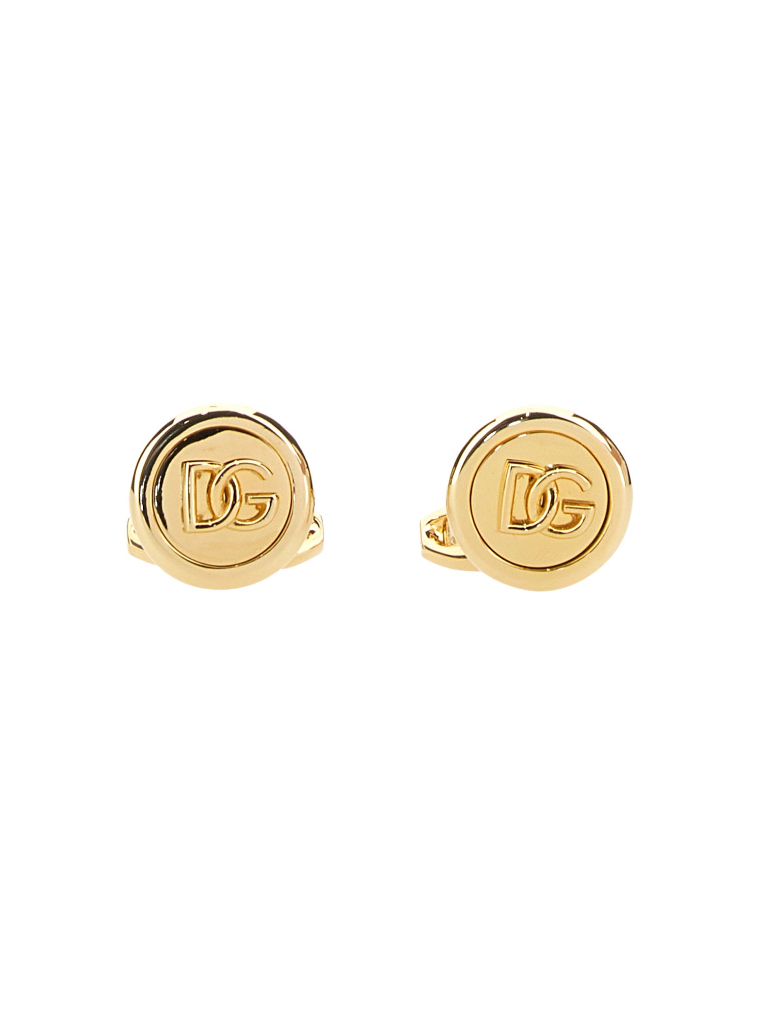 Questi gemelli da polso della maison Dolce & Gabbana sono realizzati in ottone massiccio, completamente lucidati e ornati dal logo DG. Questi gemelli sono un ottimo modo per fare una dichiarazione di moda audace in qualsiasi evento formale. Sono lucidi, robusti e attraenti e sono perfetti per le occasioni formali.
