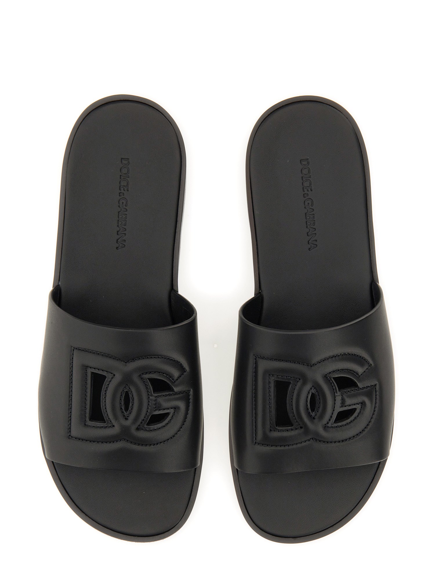 Questi sandali di Dolce & Gabbana sono l'aggiunta perfetta alla vostra collezione di calzature estive. Realizzati in pelle di alta qualità, offrono comfort e resistenza. Il cinturino frontale logato aggiunge un tocco di raffinatezza ed eleganza a questi sandali, rendendoli adatti a diverse occasioni. Il design slip-on consente di indossarli facilmente e senza problemi, rendendoli ideali per i momenti in cui si è in movimento.
