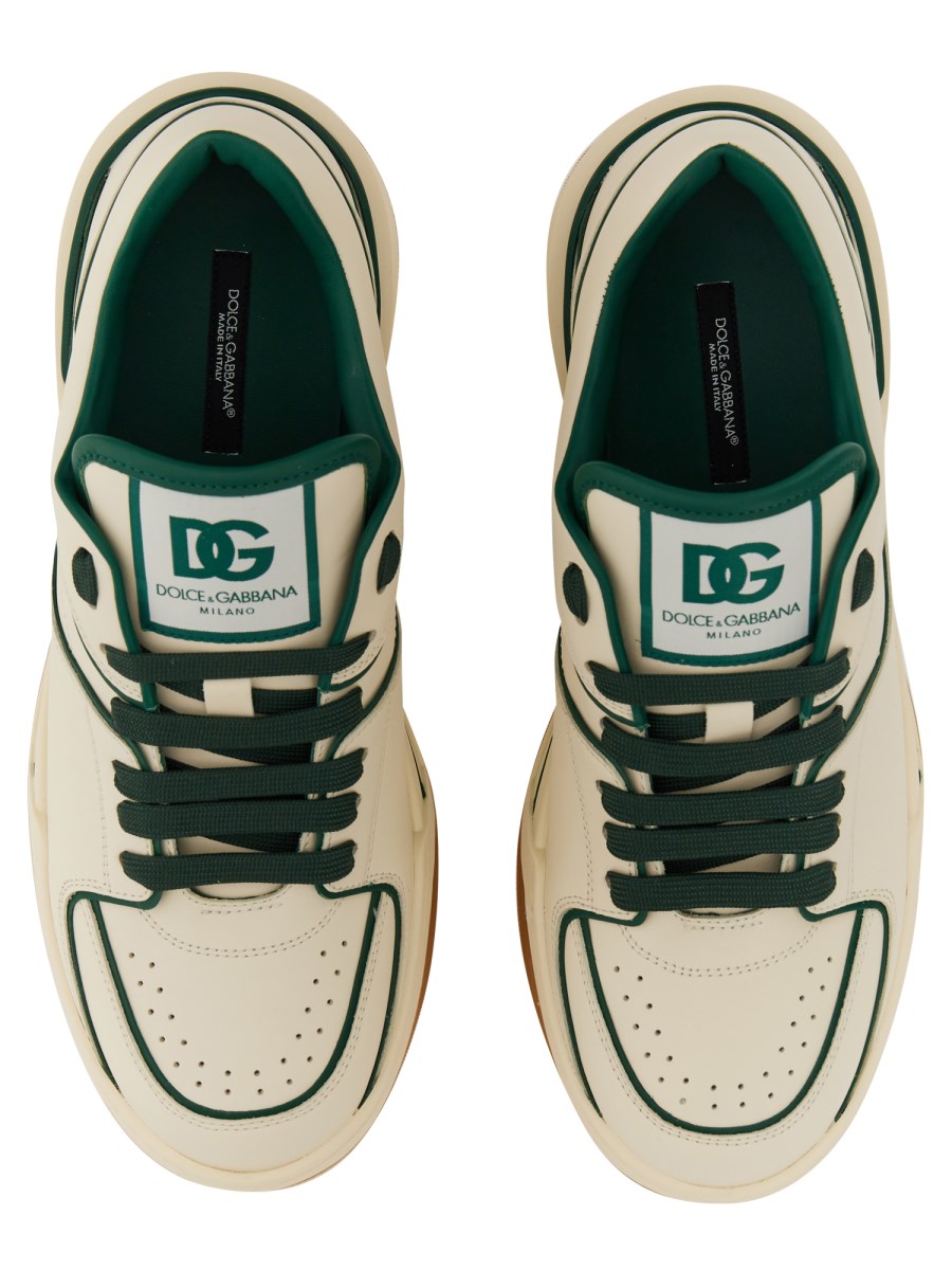 Le New Roma Leather Sneakers di Dolce&Gabbana sono un paio di sneakers con tomaia in pelle e chiusura piatta con lacci. Le sneakers sono disponibili in una varietà di colori. Sono leggere, flessibili e comode da indossare tutto il giorno, ma abbastanza resistenti da affrontare anche i terreni più difficili.