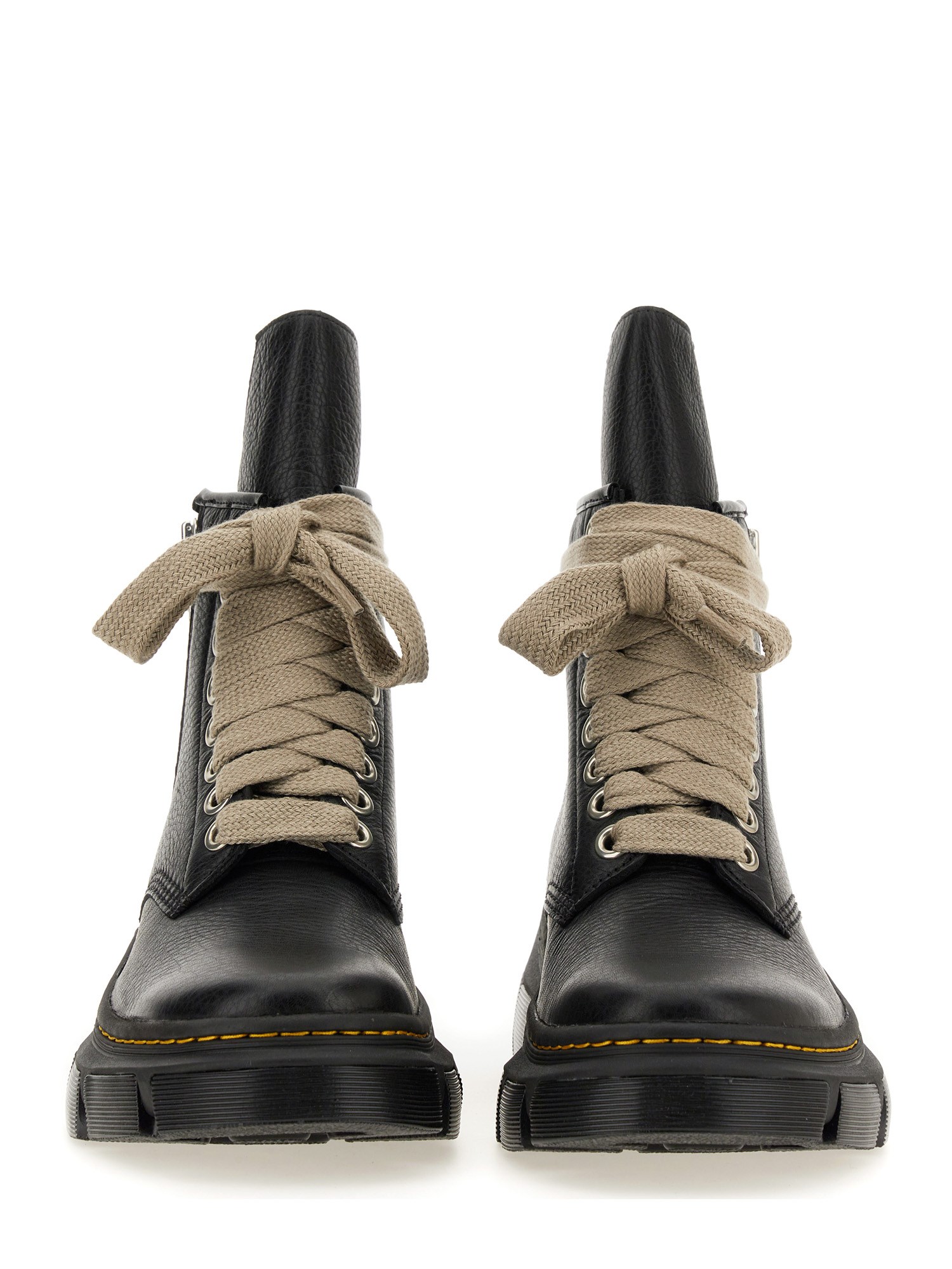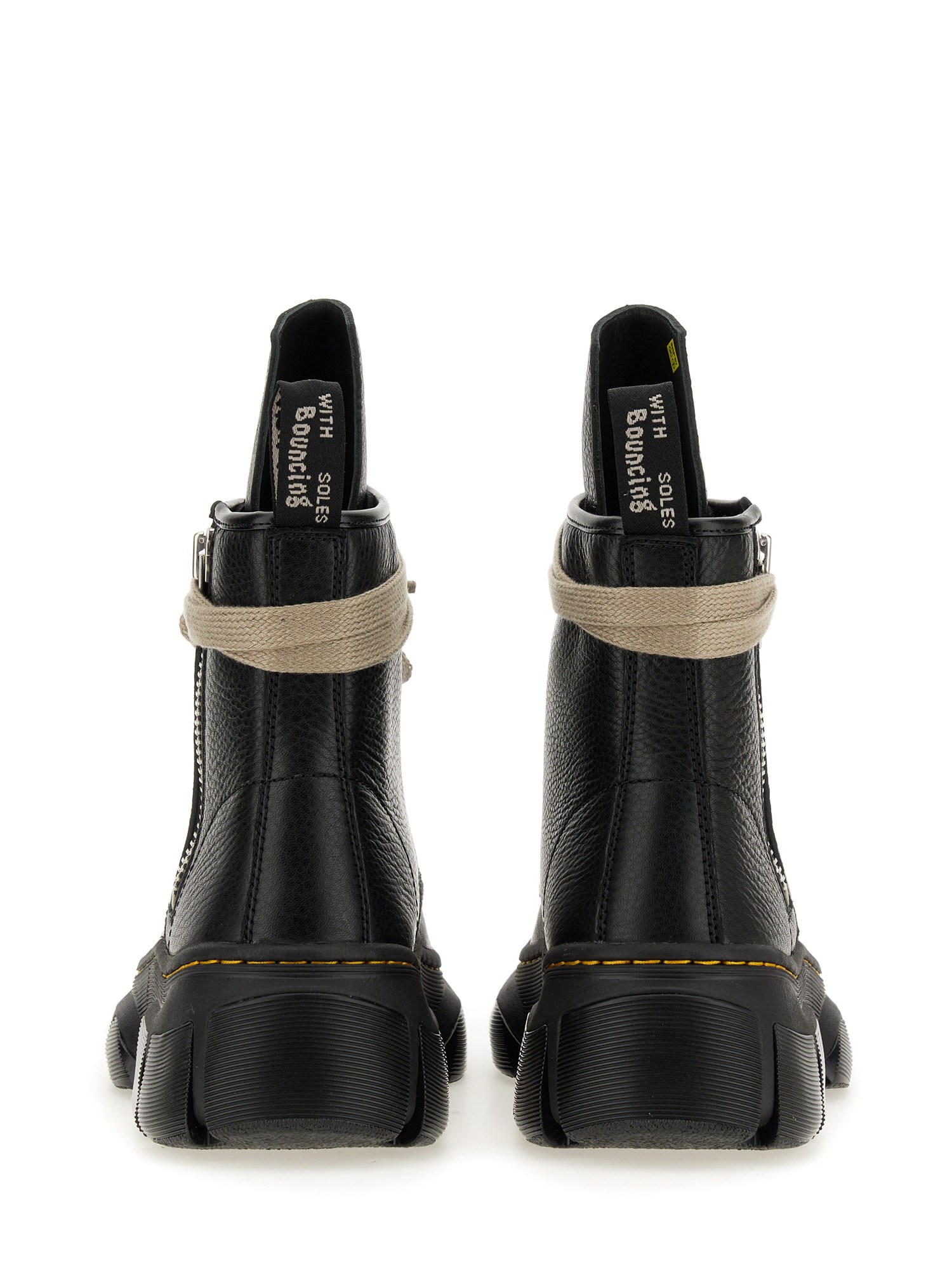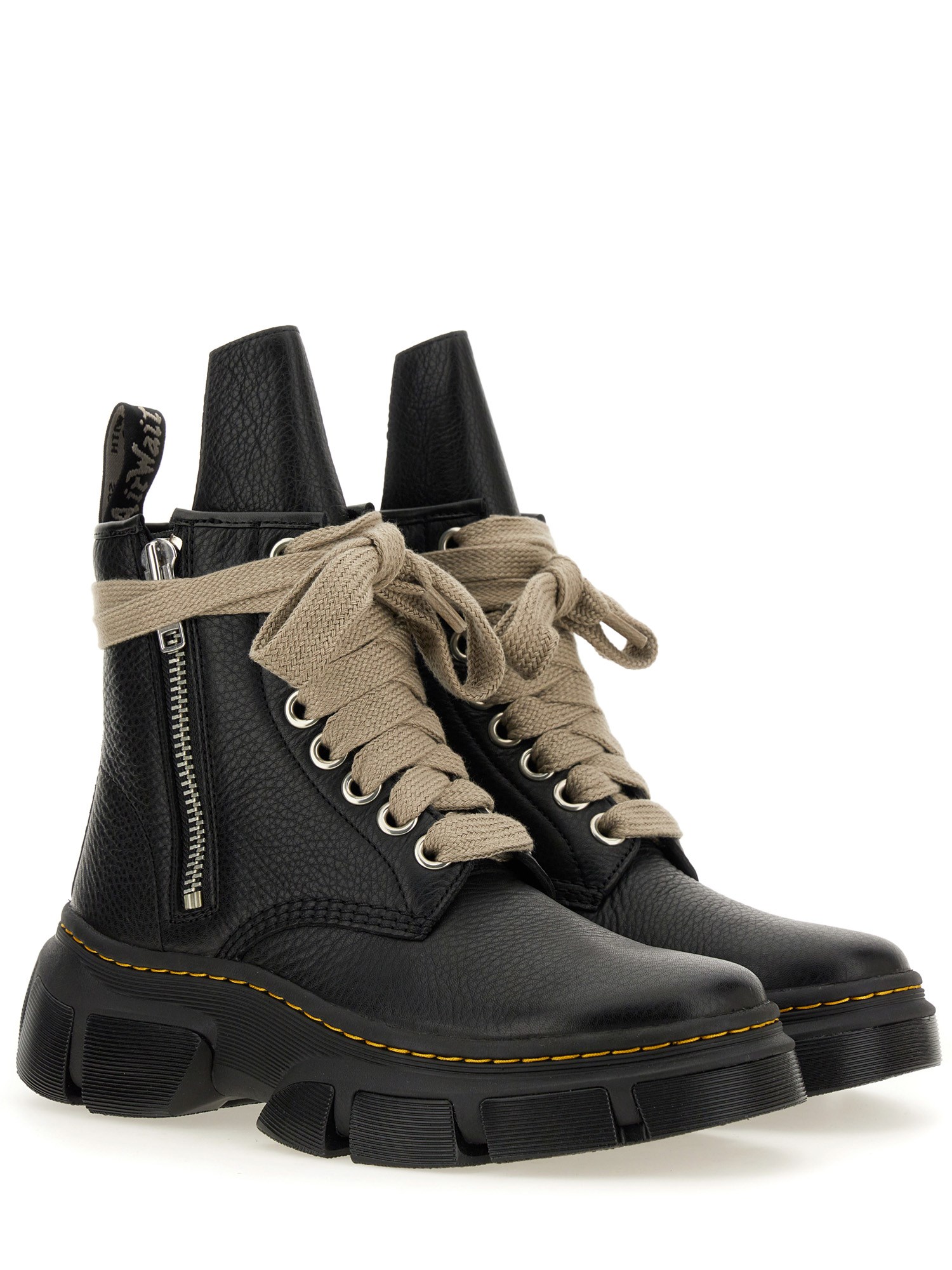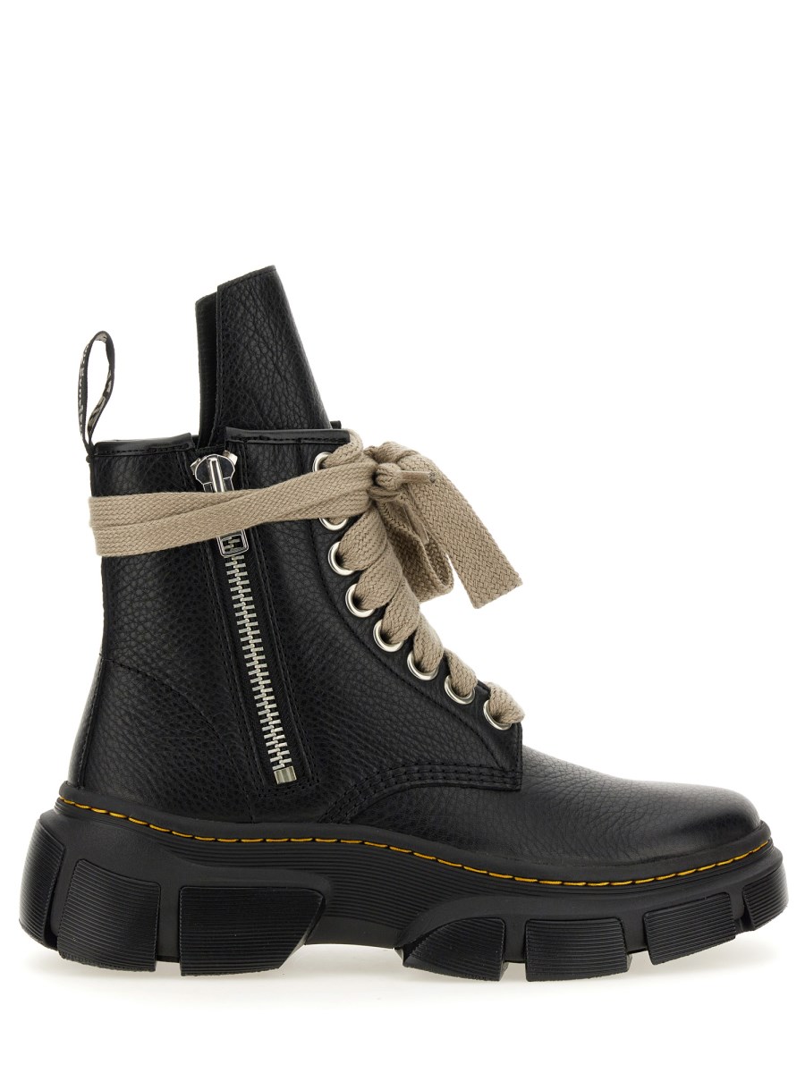Questi stivali Dr. Martens X Rick Owens sono l'epitome dello stile e del lusso, realizzati con la massima precisione e attenzione ai dettagli. Realizzati in pelle di vitello di prima qualità, questi stivali alla caviglia offrono durata, comfort e un'eleganza innegabile. Caratterizzati da un design con chiusura a lacci, questi stivali non solo garantiscono una vestibilità sicura, ma aggiungono anche un tocco di unicità al vostro ensemble.