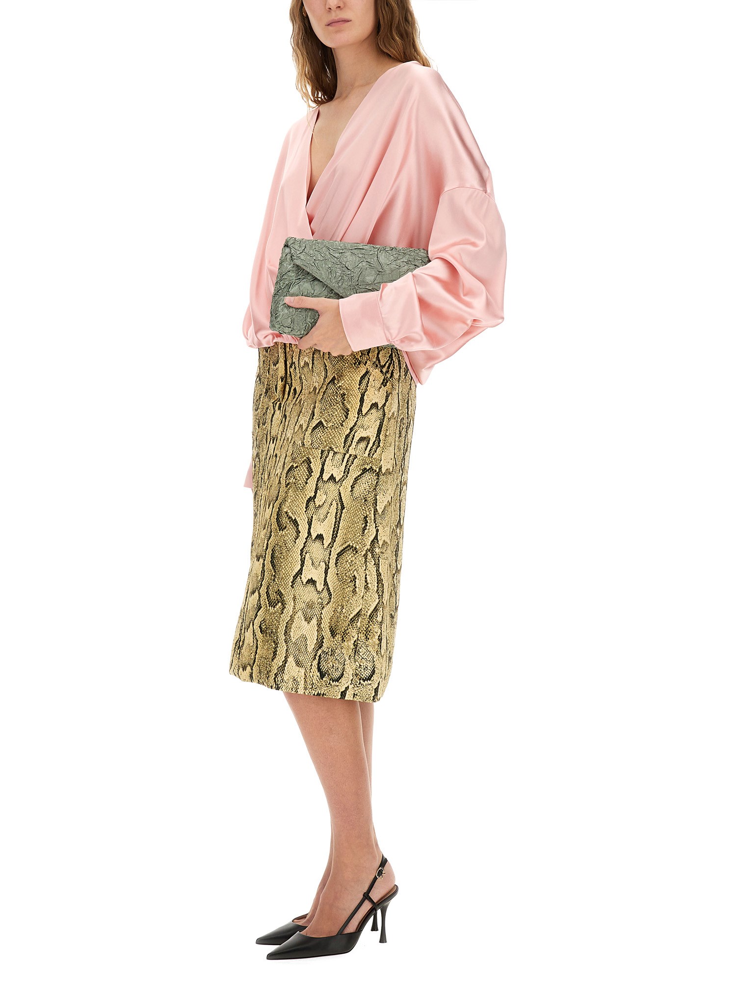GONNA MIDI IN SATIN INCRESPATO