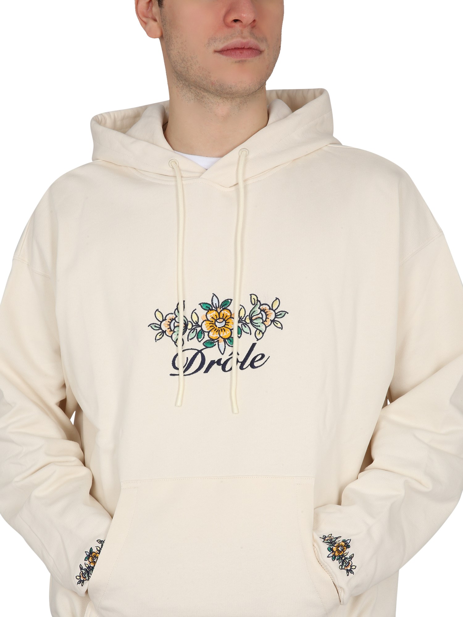 Questa felpa nera con cappuccio di Drôle De Monsieur presenta un logo sul davanti e una tasca a marsupio con coulisse. La parte anteriore della felpa con cappuccio ha un design squadrato e allungato con scollo rotondo e orlo arrotondato. Questa felpa con cappuccio è perfetta per chi ha bisogno di un capo comodo e casual da indossare.