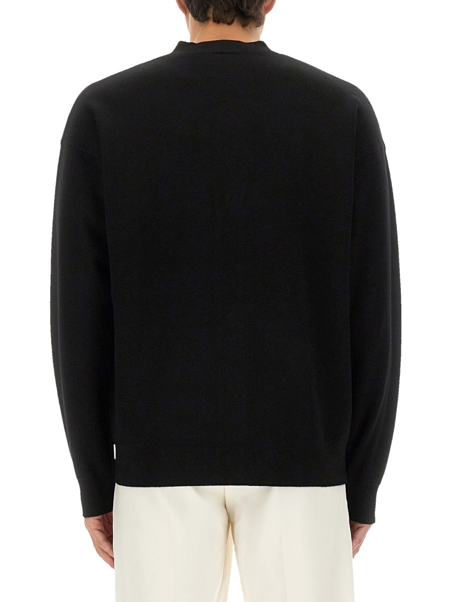 CARDIGAN SCOLLO A V IN LANA CON RICAMO LOGO