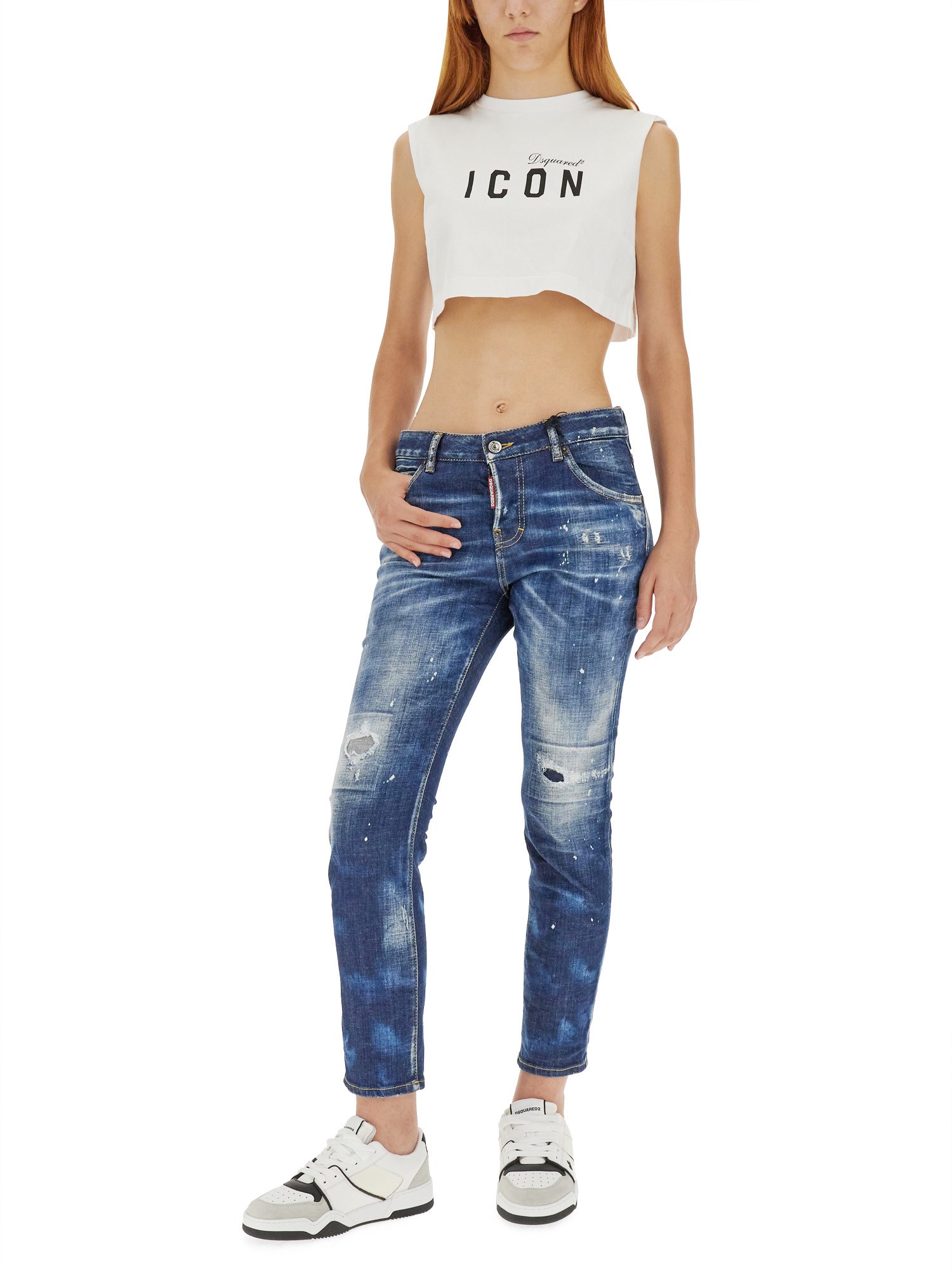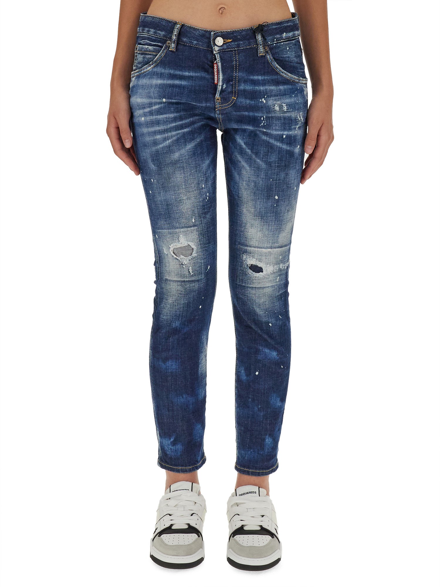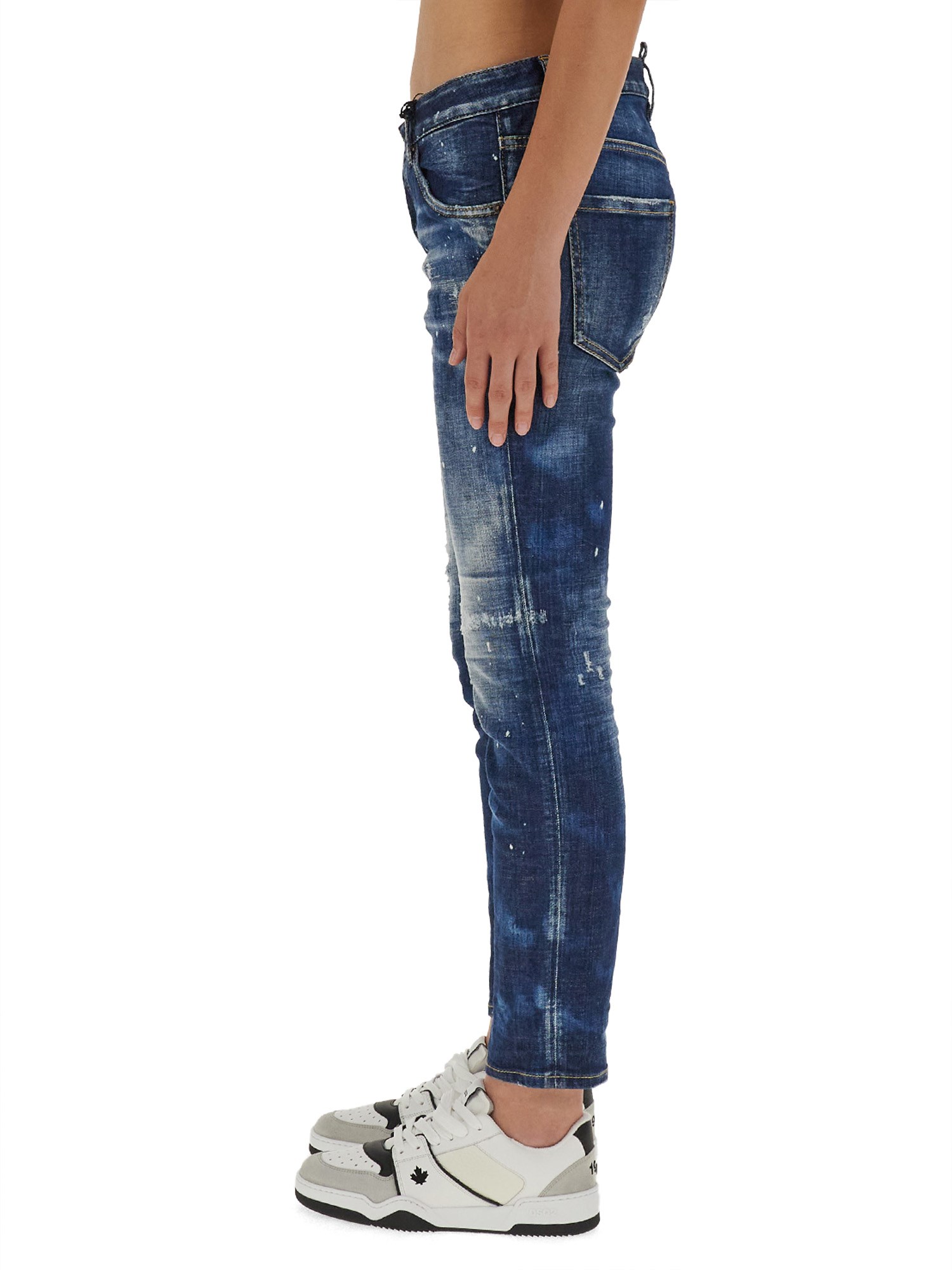 Questi jeans in cotone pregiato di Dsquared hanno un look pulito con un tocco di elasticità, sono dotati di passanti per la cintura in vita e di chiusura con zip e bottoni. Hanno inoltre una vestibilità regolare che consente di muoversi con facilità. I jeans presentano dettagli strappati sul davanti e sono rifiniti con un design a cinque tasche.