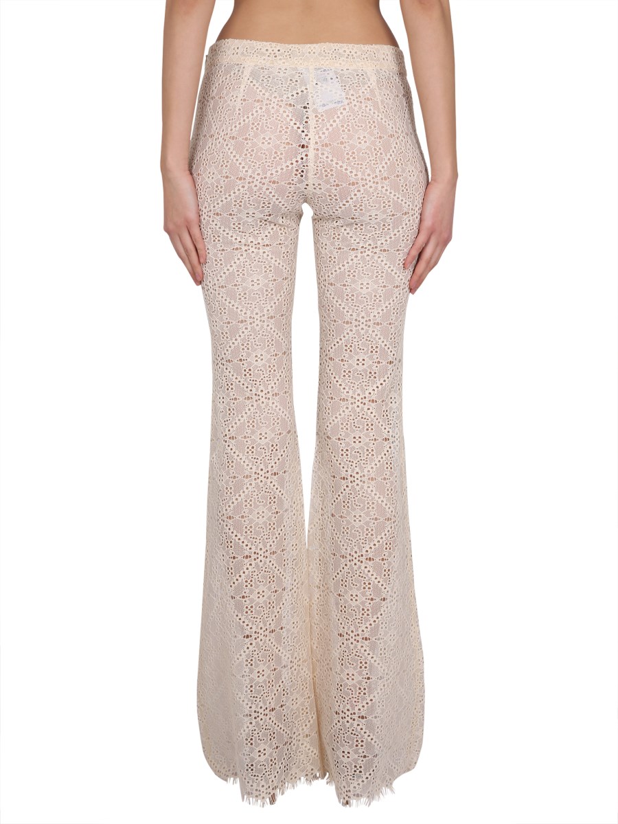 Pantaloni a gamba larga sfrangiati all-over di Dsquared. Sono realizzati in poliestere e hanno un orlo largo. Sull'orlo sono presenti numerosi ricami che conferiscono un aspetto elegante. Sono perfetti per qualsiasi outfit, dai jeans alla gonna. Questi pantaloni a gamba larga in poliestere con orlo sfrangiato sono una rivisitazione moderna dei classici jeans.