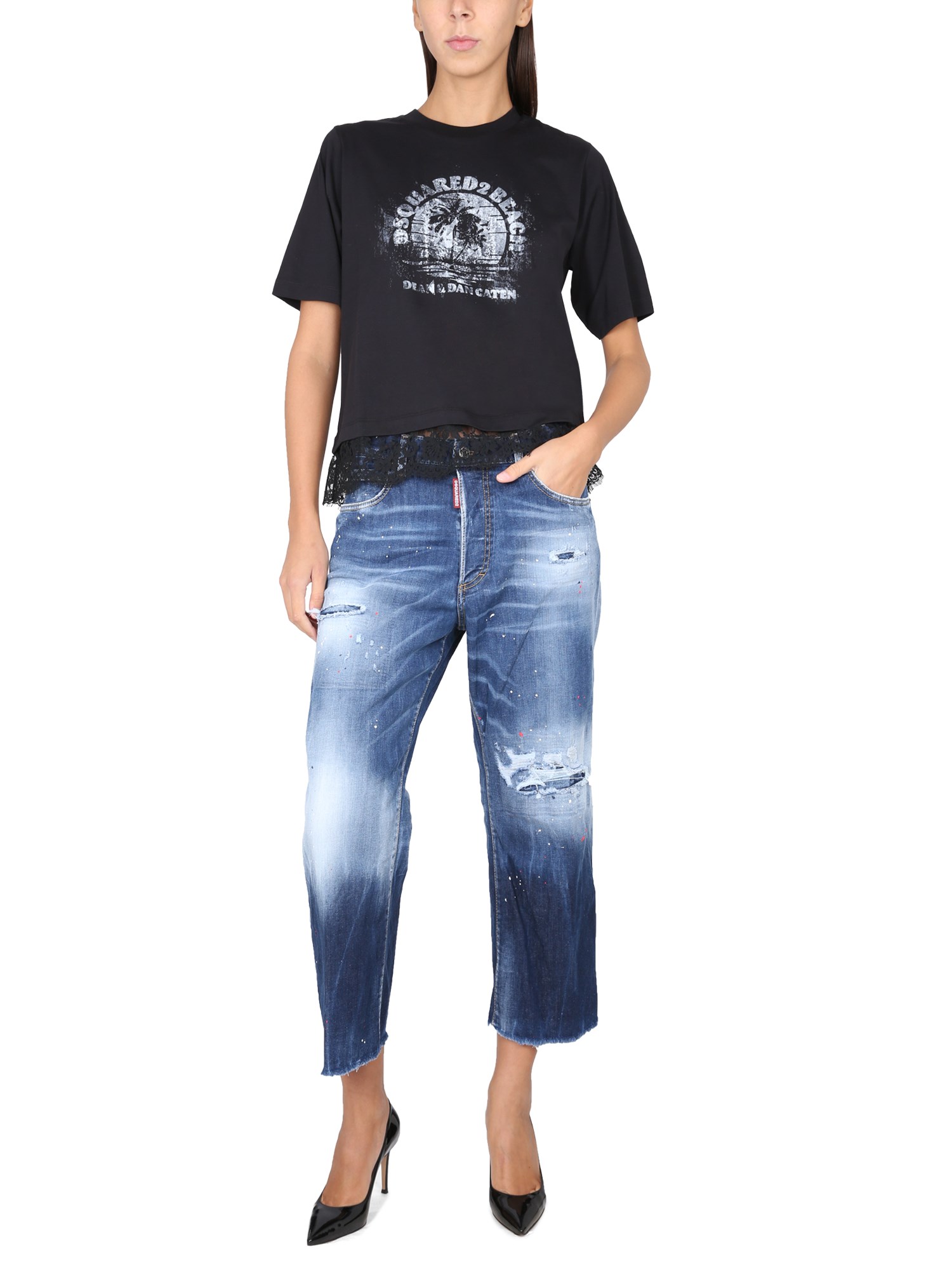 La T-shirt nera girocollo con stampa logo di Dsquared è un capo classico. Questa T-shirt nera è un pezzo forte da avere nel proprio guardaroba per ogni occasione. È caratterizzata dalla stampa del logo sul davanti ed è perfetta per un look casual. Questa maglietta presenta un logo sul davanti che non è solo accattivante ma anche classico.