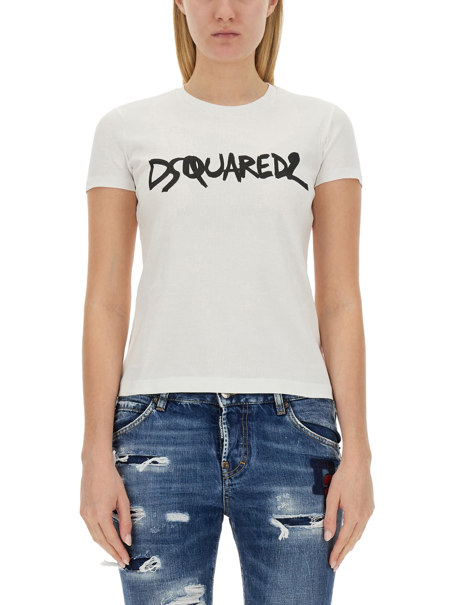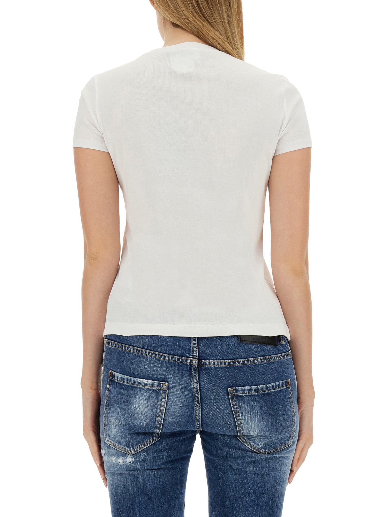 Questa T-shirt di Dsquared è una scelta perfetta per ogni occasione casual. Realizzata in cotone di alta qualità, questa t-shirt è incredibilmente morbida e comoda da indossare, garantendo una vestibilità rilassata per tutto il giorno. La stampa nera del logo sul davanti aggiunge un tocco di raffinatezza e modernità, rendendola un capo versatile che può essere abbinato senza sforzo a jeans, pantaloncini o persino a una gonna.