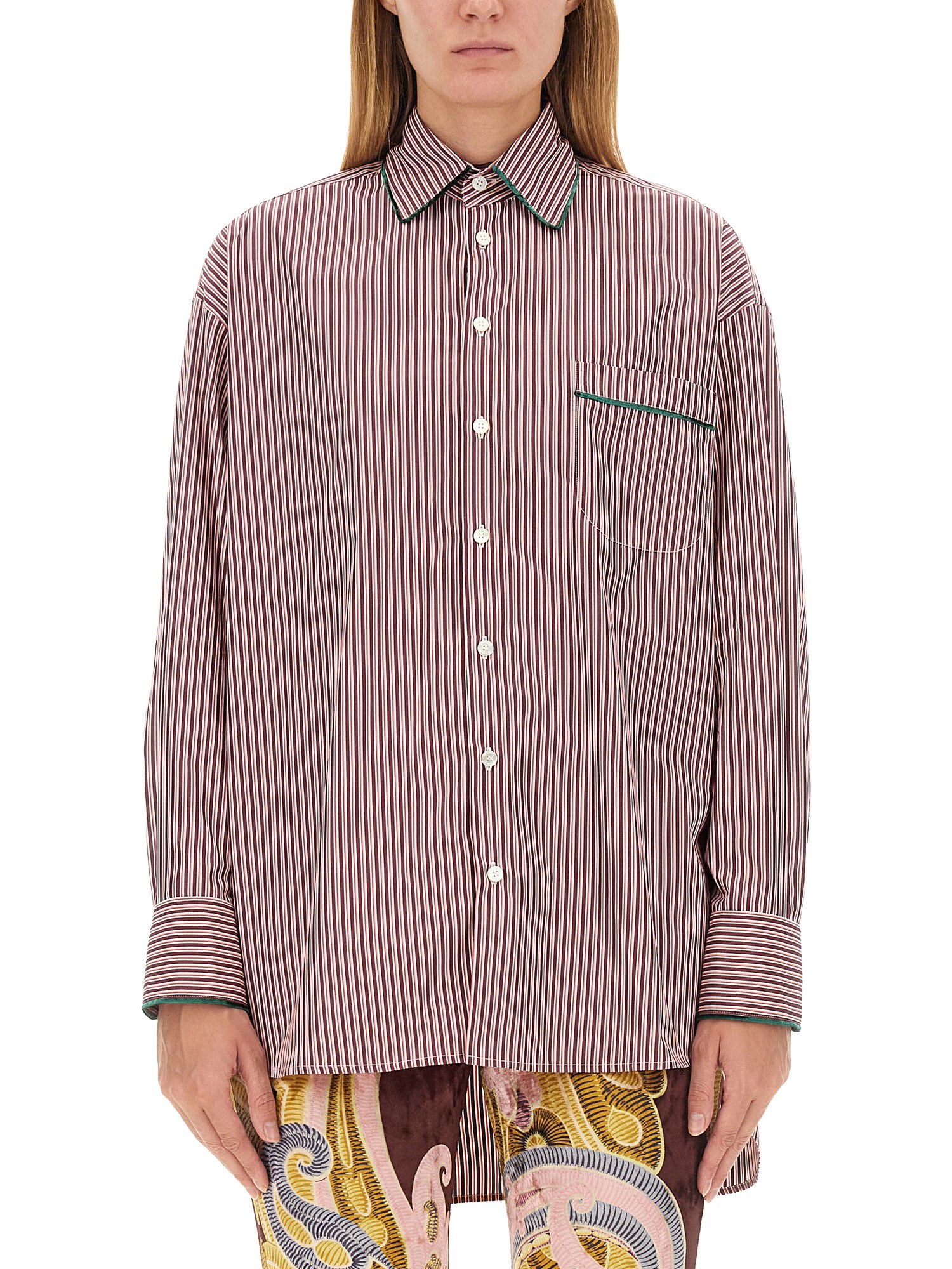Questa raffinata camicia di Etro è caratterizzata da un intricato ricamo di Pegasus, che mette in risalto un mix di eleganza e maestria. Realizzata in tessuto di alta qualità, offre comfort e stile, rendendola un'aggiunta versatile a qualsiasi guardaroba. Il design unico evidenzia l'impegno di Etro per il lusso e l'attenzione ai dettagli, perfetto per chi apprezza la moda sofisticata. Ideale sia per le occasioni casual che per quelle formali, questa camicia è un pezzo forte che incarna un fascino senza tempo.