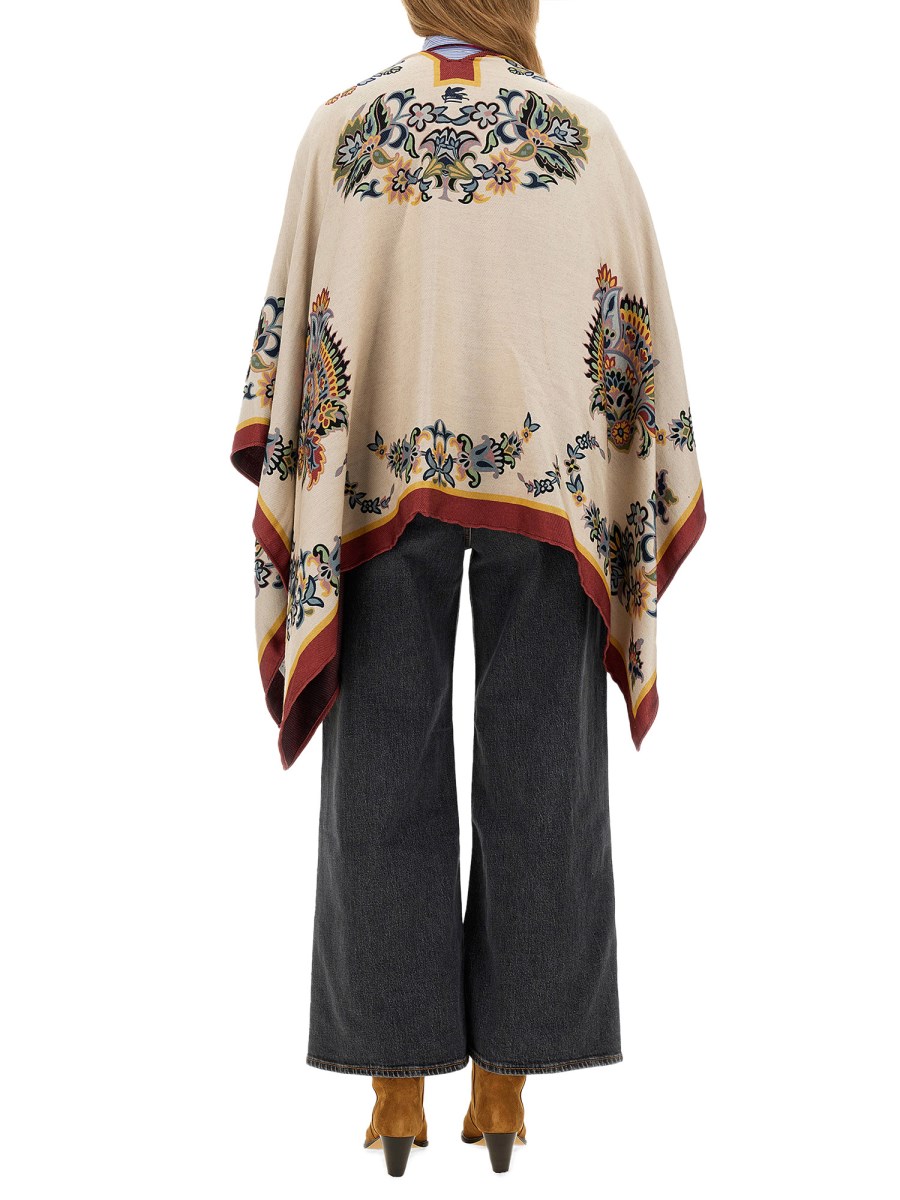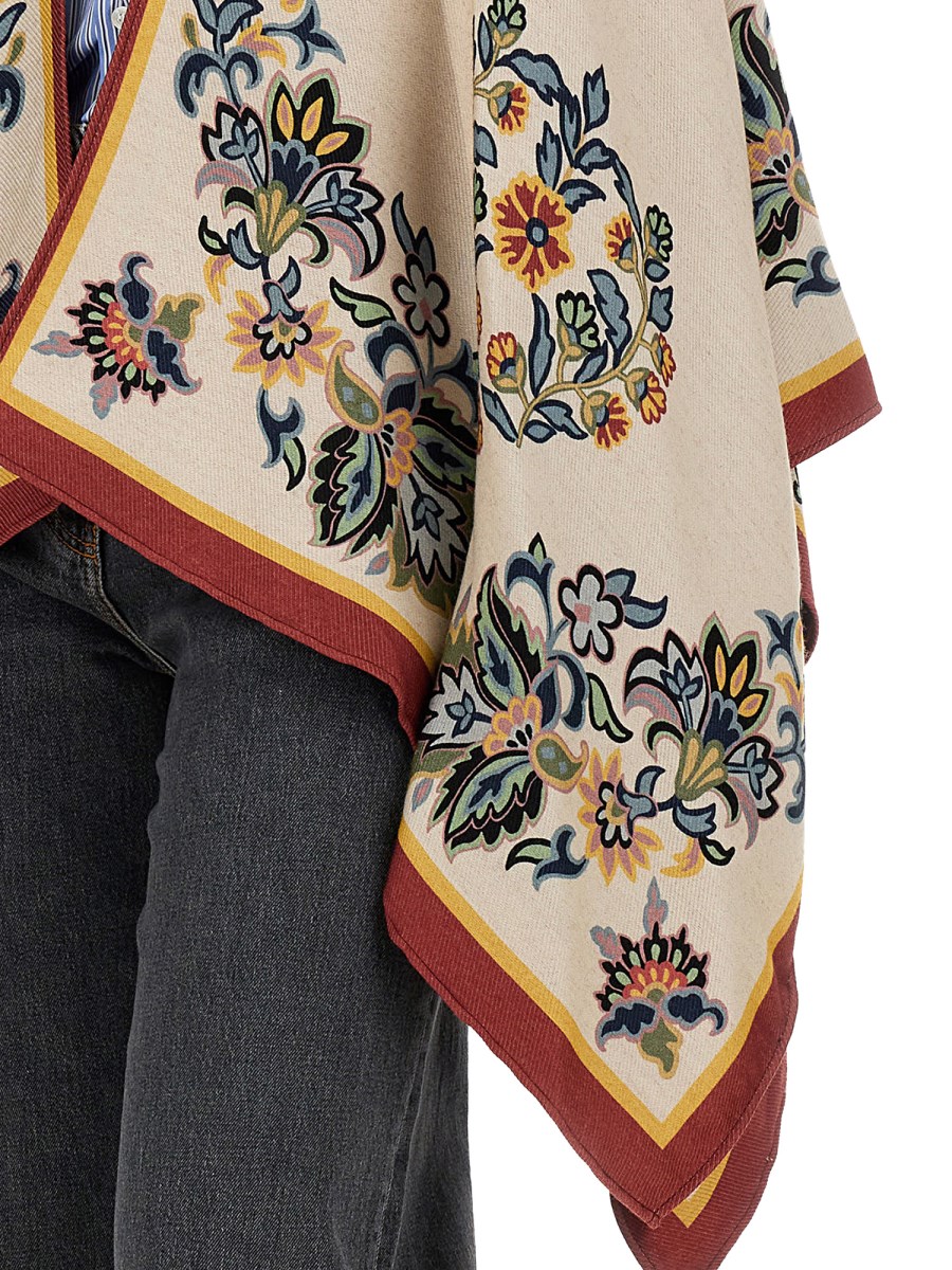 La mantella Floral Paisley di Etro è uno straordinario mix di eleganza e maestria, caratterizzato da una vivace fantasia paisley ornata da intricati motivi floreali. Realizzata con materiali di alta qualità, questa mantella offre comfort e stile, rendendola un'aggiunta versatile a qualsiasi guardaroba. La sua silhouette fluida si drappeggia magnificamente, offrendo uno strato sofisticato per varie occasioni, mentre i colori ricchi e il design dettagliato la rendono un pezzo di spicco.