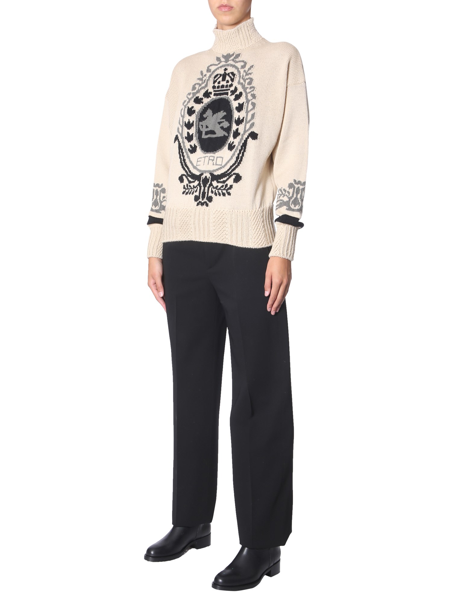 - COLLO ALTO- REGULAR FIT- 995 LANA, 1% POLIESTERE- MADE IN ITALY- LA MODELLA È ALTA 184 CM E INDOSSA LA TAGLIA 40