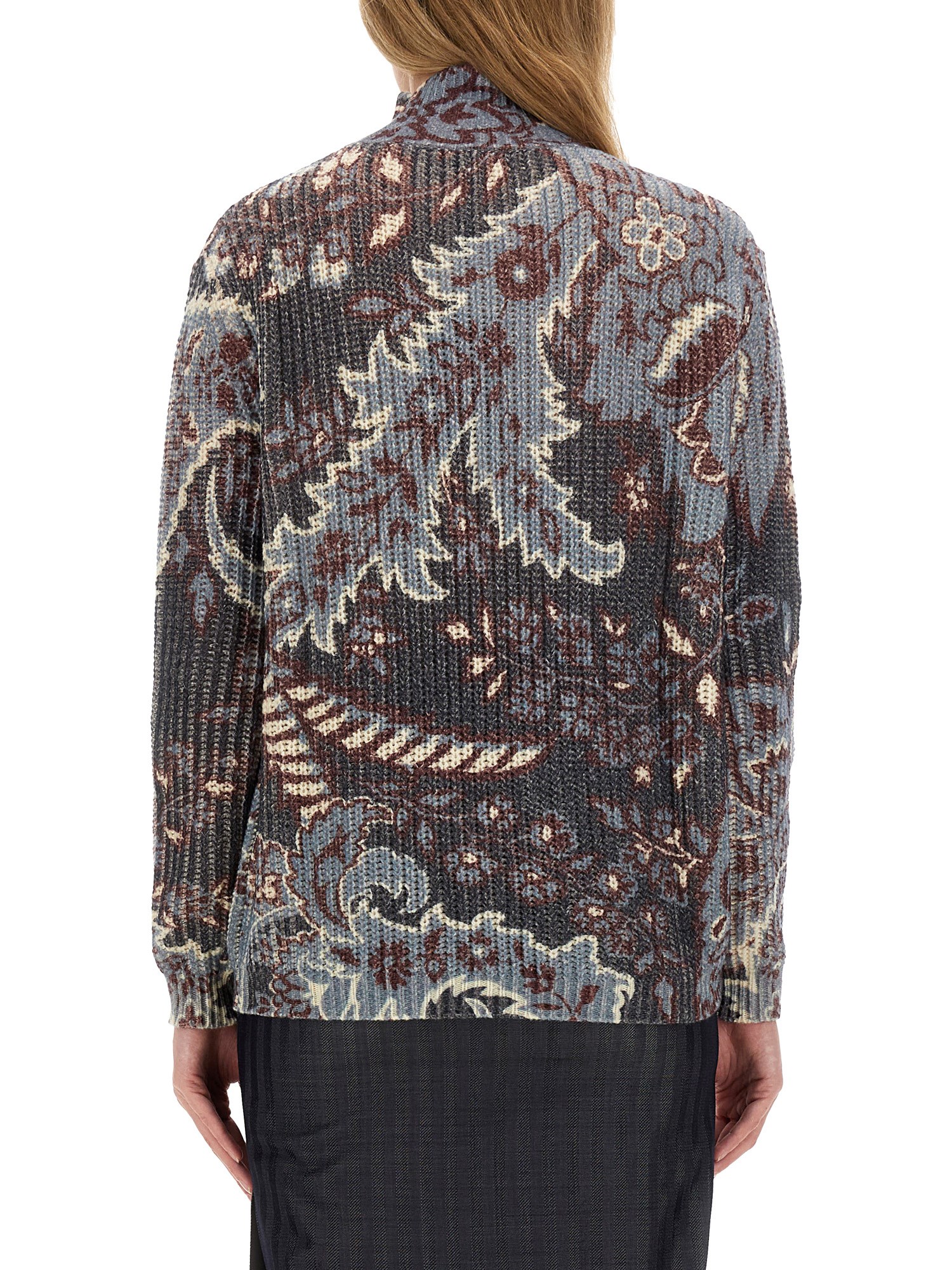 Il maglione in lana stampato di Etro è un esempio di lusso e raffinatezza, realizzato in lana di alta qualità per garantire calore e comfort. Le sue stampe intricate riflettono lo stile caratteristico del marchio, combinando colori vivaci e modelli unici che fanno una dichiarazione di moda audace. Ideale sia per le occasioni casual che per quelle semi-formali, questo maglione offre versatilità e assicura un aspetto raffinato. L'attenzione meticolosa per i dettagli e la manifattura superiore lo rendono un'aggiunta senza tempo a qualsiasi guardaroba.