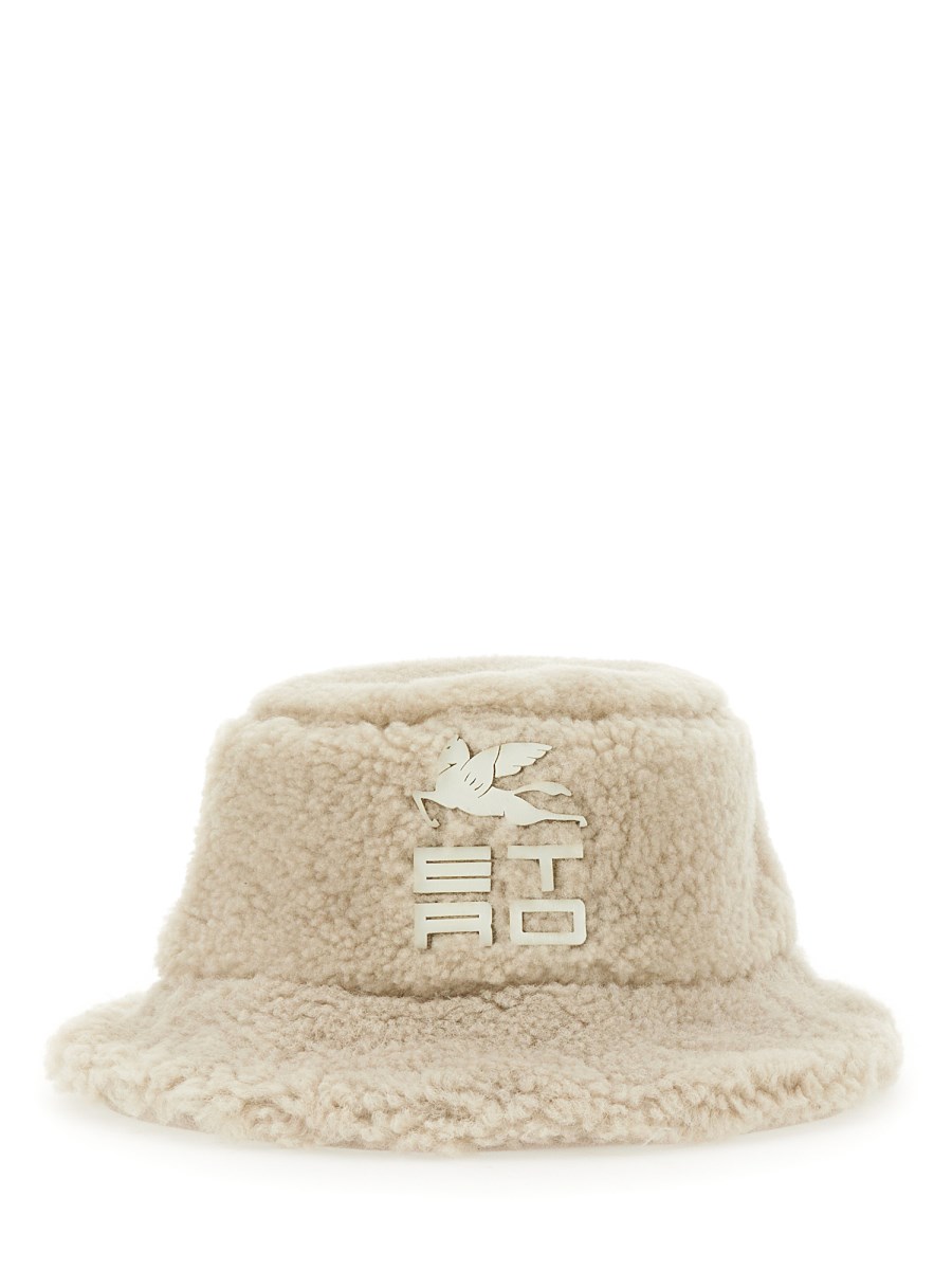 Adorerete questo cappello a secchiello trendy e accogliente di Etro! Presenta una tesa foderata di pelliccia e un cinturino in velcro che lo terrà ben saldo sulla testa. Il logo è sul davanti e la pelliccia sul retro. È perfetto per questa stagione, quindi acquistatelo subito!