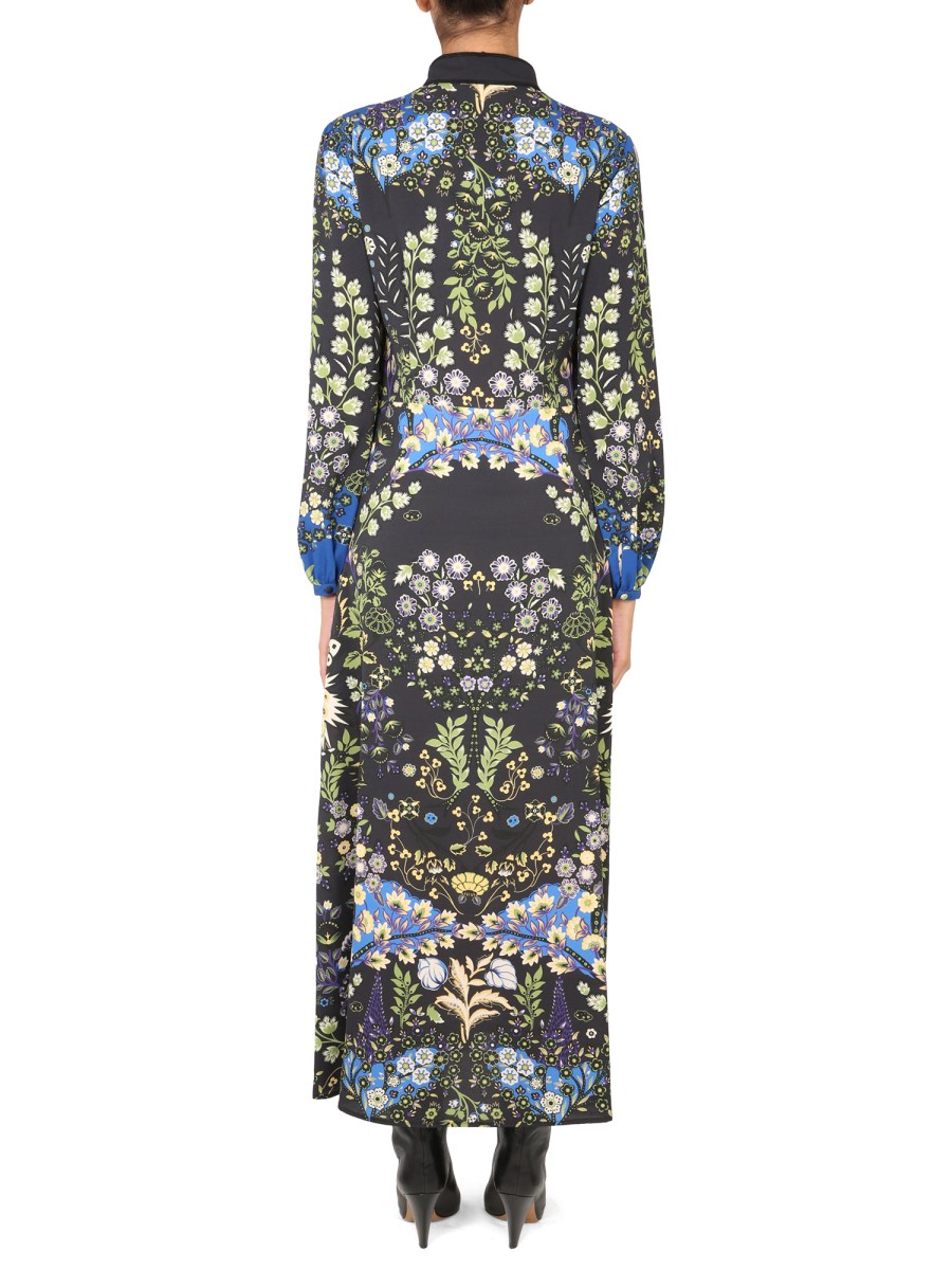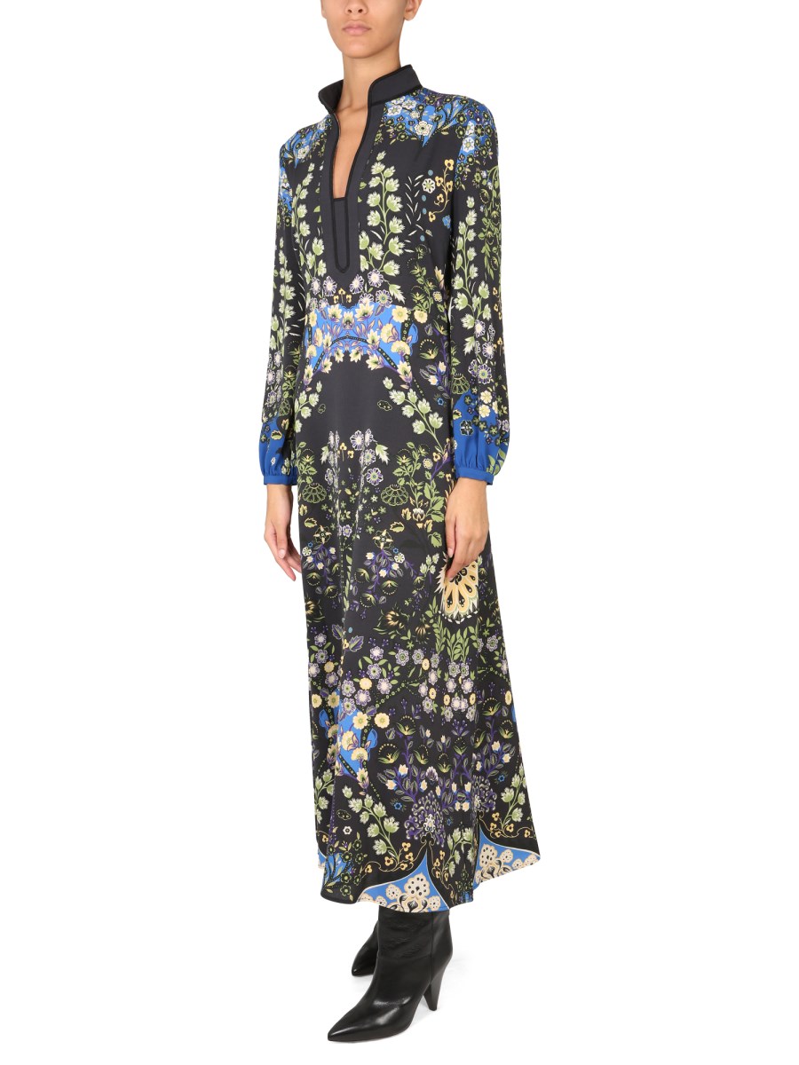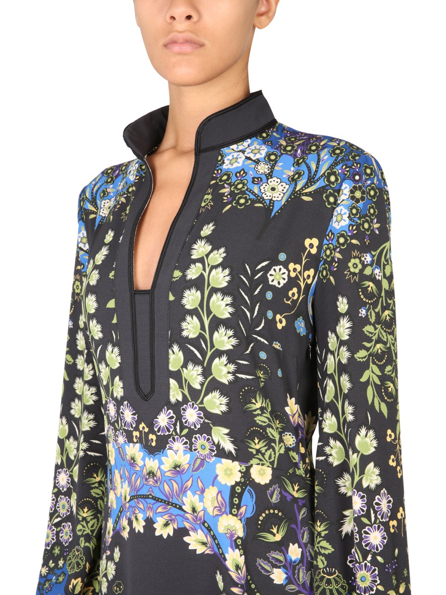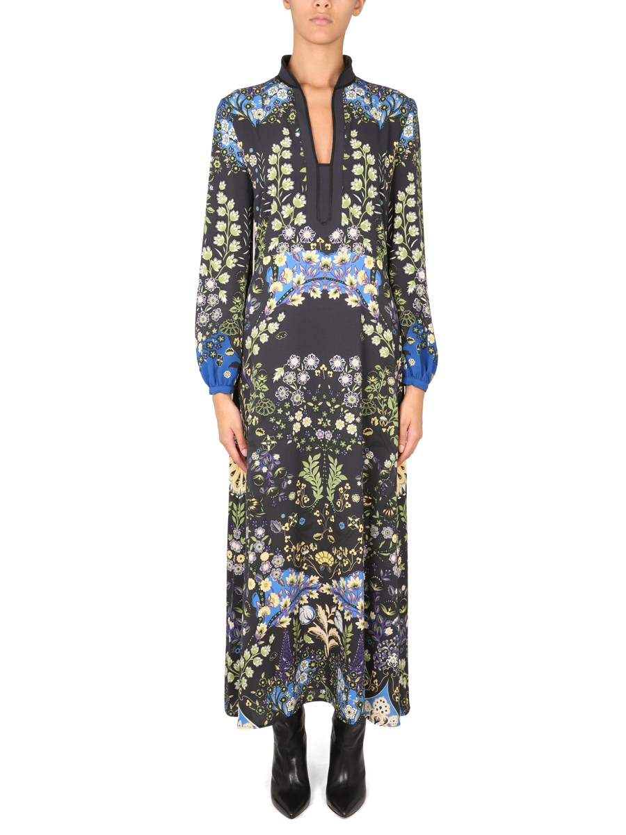 Questo abito lungo di Etro è il pezzo forte perfetto per la primavera e l'estate. Le maniche lunghe conferiscono all'abito un aspetto audace ma femminile. Presenta un colletto alla mandarina con scollatura centrale, polsini a un bottone e profili a contrasto. L'abito è lungo e fluido, perfetto da abbinare ai tacchi.