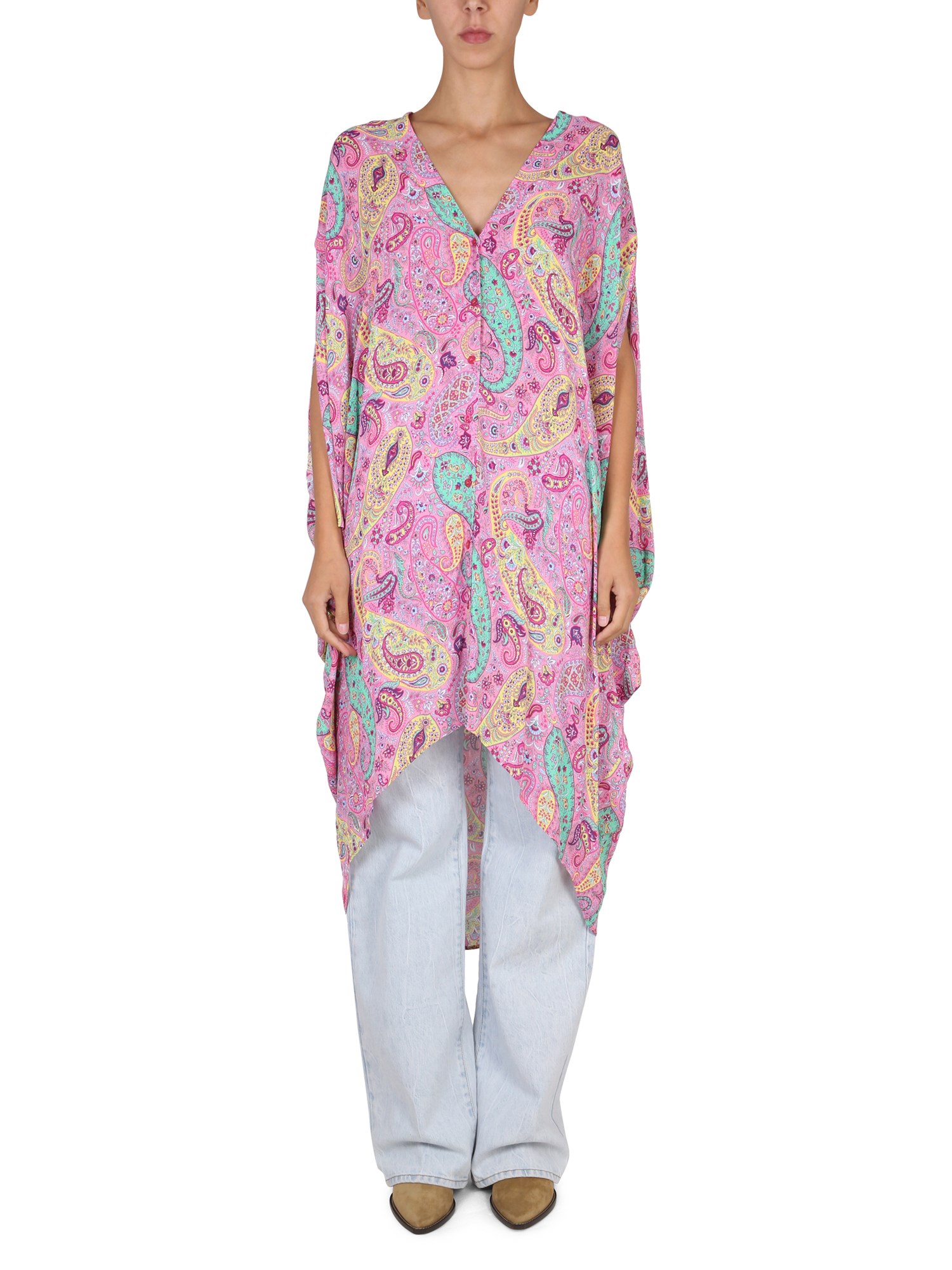 Il caftano in viscosa di Etro è un capo di abbigliamento leggero e arioso, perfetto per la stagione calda. Il caftano è stato progettato per essere un capo d'abbigliamento facile da indossare. È un capo ampio e fluido che vi terrà fresche nelle calde giornate estive.